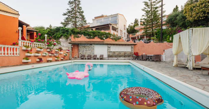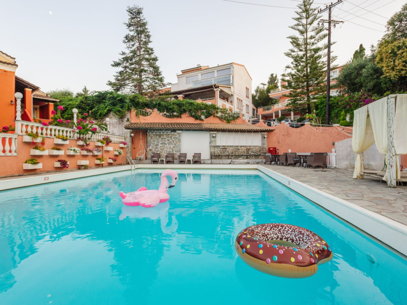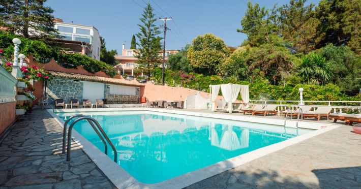 Charmingly located on a verdant hill of 6500 sqm of land, gazing over the beautiful blue waters of the Ionian Sea and the lovely green scenic view of Mount Pantokrator.Victoria Hill Hotel is set in lovely gardens, with various trees and greenery and only a few minutes away from the center of Dassia. The resort of Dassia has been a popular resort for many decades and here you will find a wide variety of taverns, bars, shops and plenty of nightlife.Our intimate family run 3-star hotel consists of four buildings with 42 guest rooms, that are all equipped with standard amenities to ensure you a pleasant and relaxing holiday. Your home away from home. All guest rooms have been refurnished and include individually controlled air condition and heating, direct dial telephone, satellite TV, en-suite bathrooms and balconies.Victoria Hill Hotel CorfuOur aim is to offer our guests the well known “Greek Filoxenia”, meaning hospitality. Looking after our visitors and making them feel welcome and comfortable during their stay is our first priority. We invite you to relax on your private balcony, sip a refreshing drink on our terrace and enjoy the magnificent panoramic view. Dip into the refreshingly cool pool and soak up the sun, laze on a sun-bed. Ether way - just enjoy.Victoria Hill Hotel re-opened in 2013 under the new management by the owner, Gina and family.