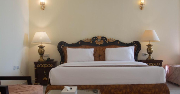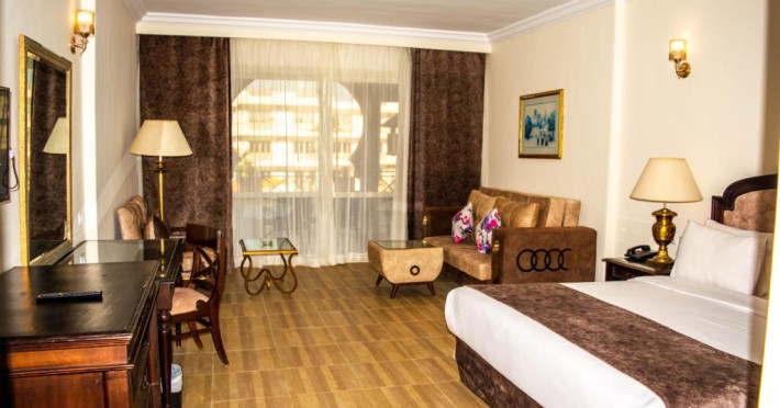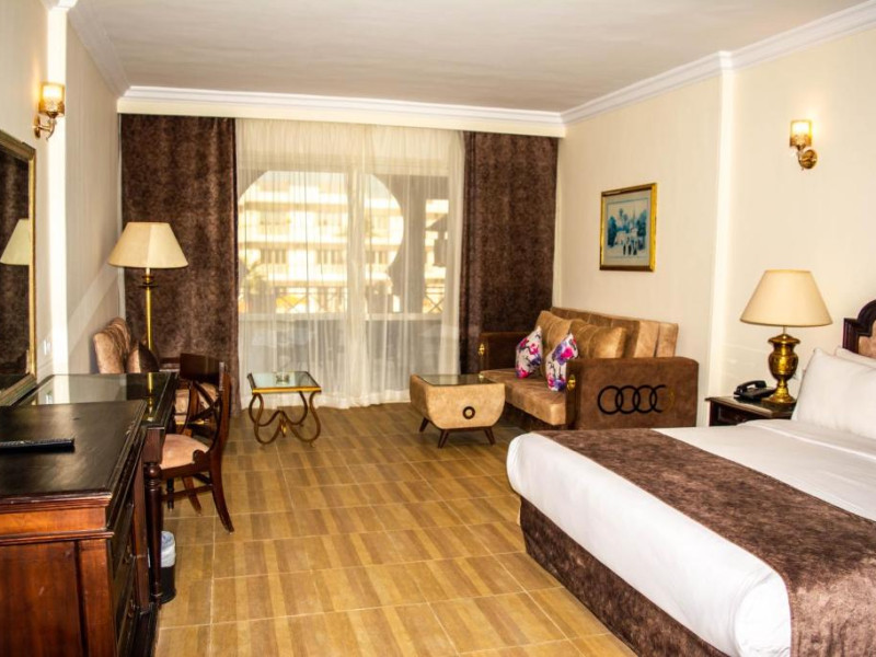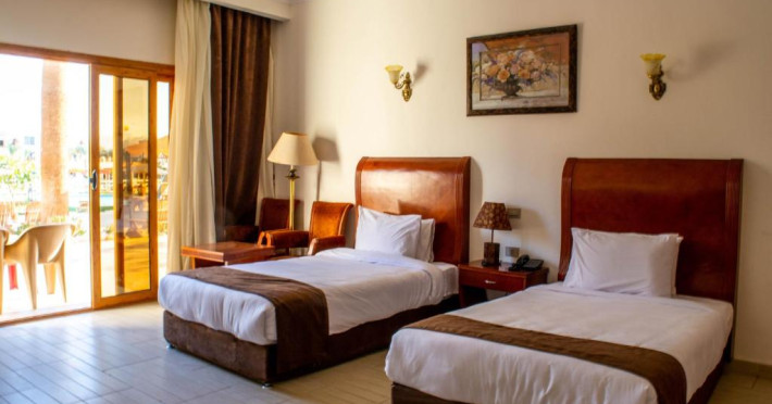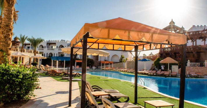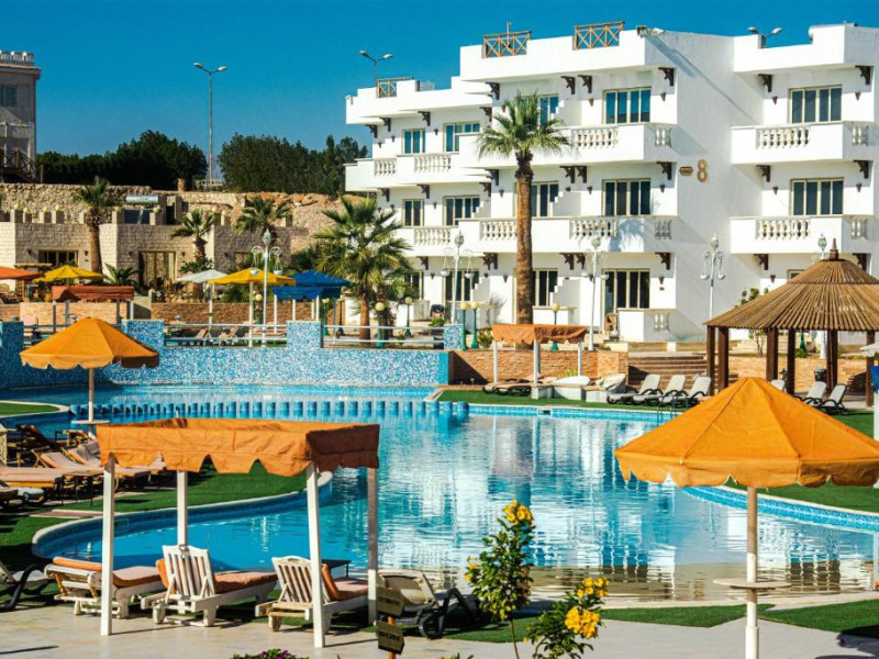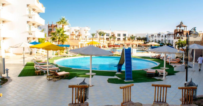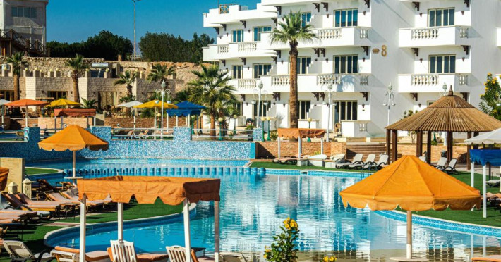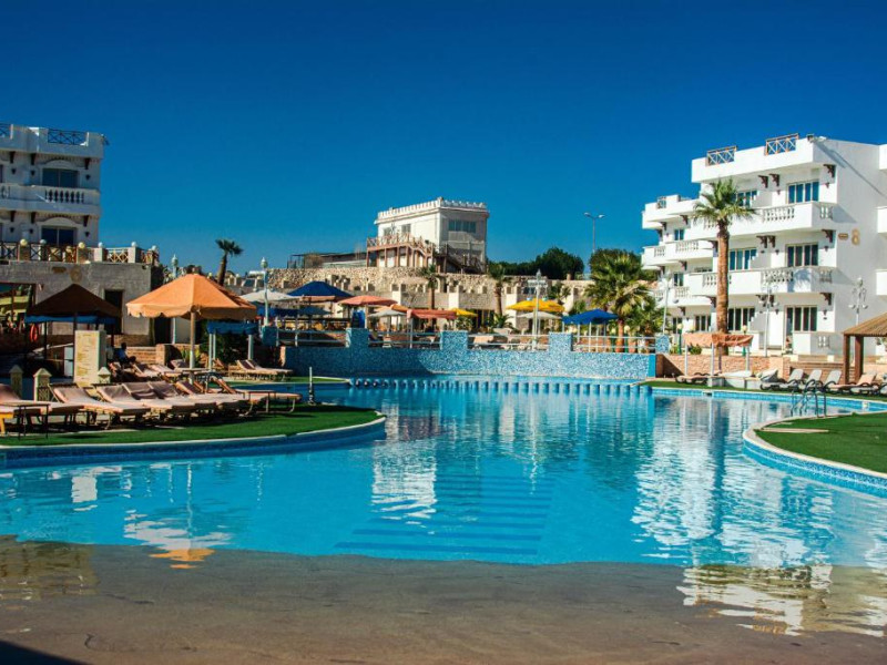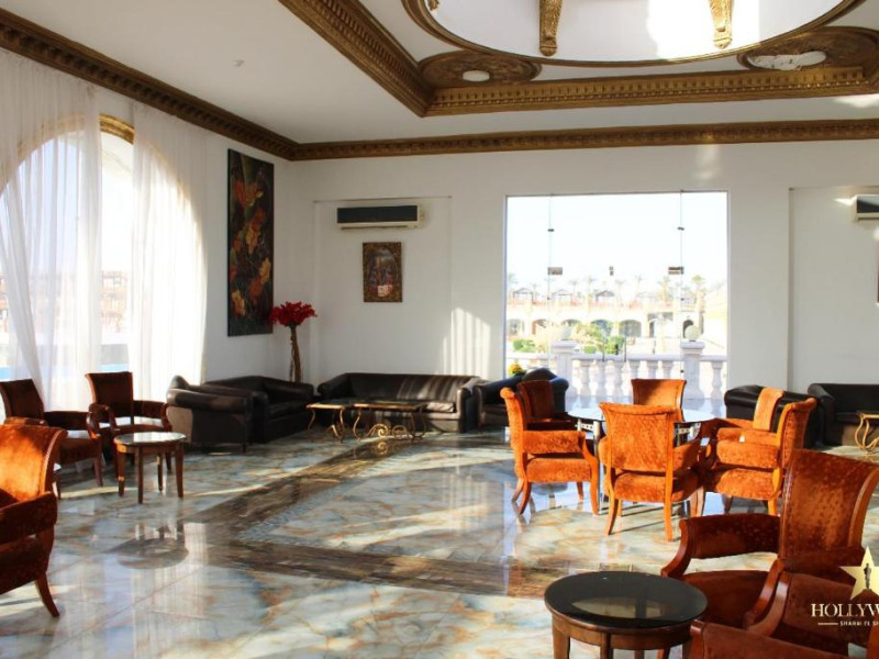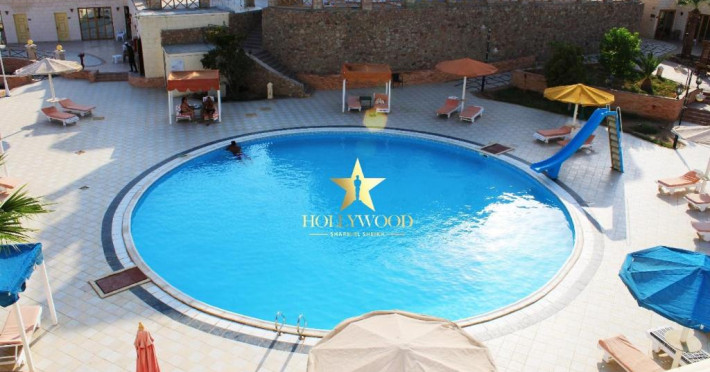 In the vicinity of the hotels own beach is located the hotel Palma Di Sharm Hollywood Resort****. The hotel has a 24h reception (check-in is possible around the clock), a lobby bar, internet access (for a fee), a supermarket, a boutique, cash machinIn the vicinity of the hotels own beach is located the hotel Palma Di Sharm Hollywood Resort****. The hotel has a 24h reception (check-in is possible around the clock), a lobby bar, internet access (for a fee), a supermarket, a boutique, cash machine, a hairdresser, a first aid kit as well as parking spaces. Outside there is a childrens pool. Furthermore, you can relax outdoors in the garden. Your valuables can be stored in the hotel safe. For the young hotel guests there is a playground. For very young guests, cots can also be provided. For the smallest children prams can be rented in the hotel. Ironing equipment can be rented at the hotel for a fee. For your comfort, in addition to the concierge service the hotel page will ensure you are looked after. For conventions and other business meetings, the hotel offers an auditorium. If you want to explore the holiday region, you can use the car rental service close to the hotel (extra fee). For guests on their honeymoon, the hotel has special offers such as special honeymoon packages. The hotel requires that all guests pay a deposit upon arrival. Due to its barrier-free facilities , such as barrier-free entrances and wheelchair accessible rooms, the hotel is also suitable for wheelchair users. Catering As catering services the hotel offers half board and breakfast only. Breakfast is offered American, continental, from the buffet or à la carte. Dinner is also served à la carte. In the gastronomic area Italian and also vegetarian dishes are served. Sports amp; Leisure On the hotel grounds, spinning bikes are available for healthy exercise during your holiday. If you want to stay on the ball during your holidays, youll find the chance to play football. During your holiday you can also take part in aerobics and Zumba courses. There is also the option to play billiards. With darts and volleyball various other sports offer a lot of variety on holiday. Infants can be looked after in the hotels own baby club. For older children the care takes place in the childrens club. There is a babysitting service in the hotel (extra fee) . Junior hotel guests can also let off steam in the mini disco. In terms of adult entertainment, live music is presented on certain days. Additional information The hotel staff speak English, German, French, Italian, Russian and Arabic.