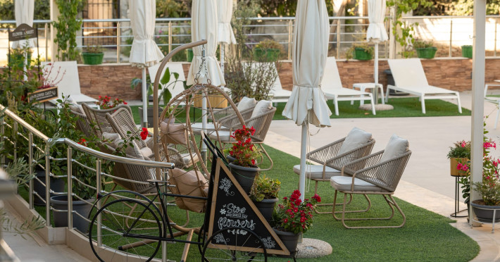 The property shares the swimming pool of Nikiti Comfort, which is the group's second property, as well as the reception and pool bar facilities.