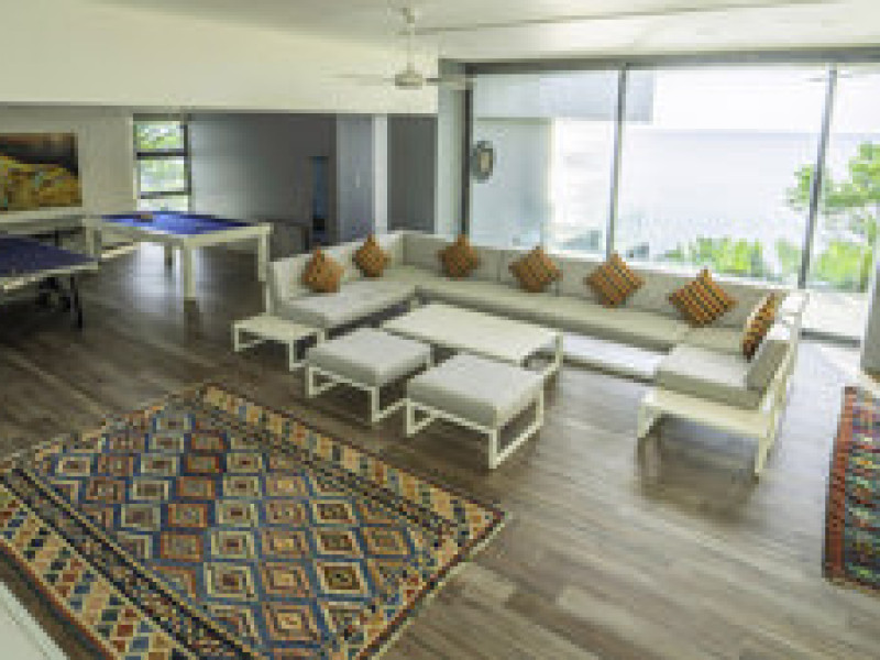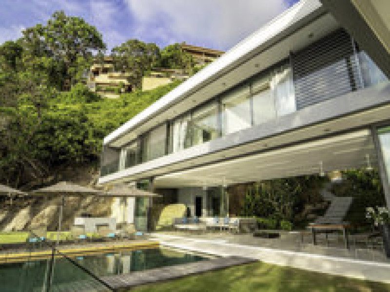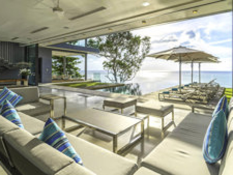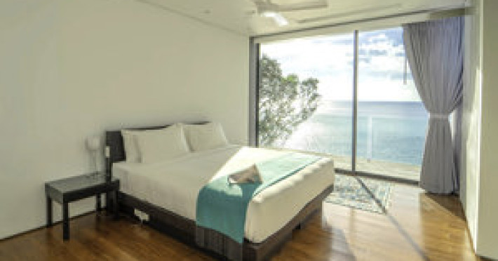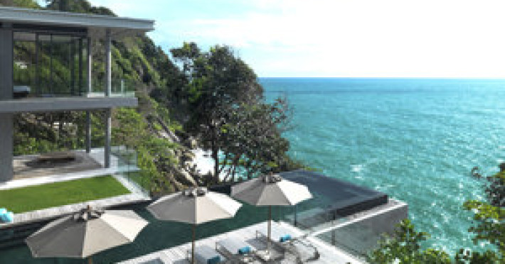 With its cutting-edge design flair and glorious ocean views, Villa Amanzi Kamala is a fantasy holiday escape found in an exclusive estate near Kamala Beach. Characterised by clean lines and bright, minimalist interiors that invite the outside in, Amanzi Kamala forms a glimmering presence on the jungle-clad hillside.This three-storey villa is a true visual masterpiece designed to celebrate – not outshine – its beautiful tropical surrounds. The hill’s steep rock face forms a natural wall on the two lower levels, while the chic living area fully opens to the pool and gardens to let the breezes flow through. The 15-metre pool extending toward the sea is the dazzling focal point of the villa, especially at sunset when sea, sky and pool are all set ablaze with crimson colours.
