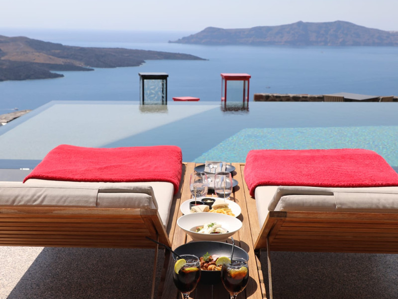 Nestled in the heart of Fira, Villa Bordeaux offers an unparalleled experience with its luxury suites, each reflecting the timeless beauty of Cycladic architecture. The Villa features four unique suites: two with private pools, a maisonette and an open-plan suite. Each suite is thoughtfully designed with premium amenities and luxurious touches.Villa Bordeaux is housed in a beautifully restored neoclassical building that merges historic charm with modern comforts. The spacious, elegantly appointed suites are designed to provide a refined and exceptional stay, with high-quality furnishings and amenities.To further enhance your visit, the Villa includes a renowned fine dining restaurant that offers panoramic sea views and stunning sunsets, ensuring a memorable dining experience.Discover breathtaking views of the Caldera and enjoy a tranquil atmosphere at Villa Bordeaux, creating unforgettable memories in Santorini.
