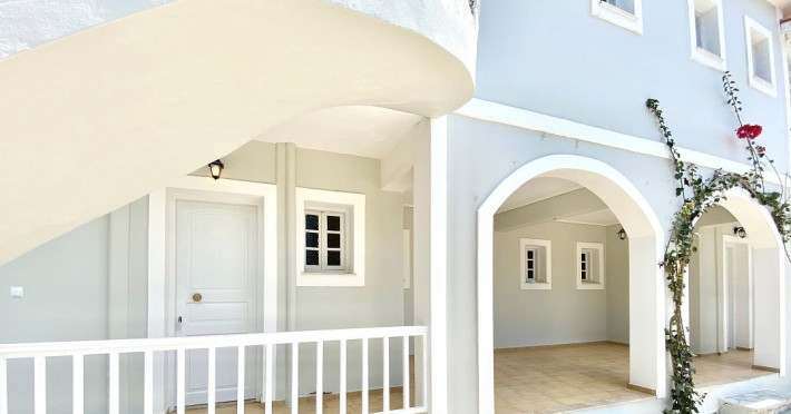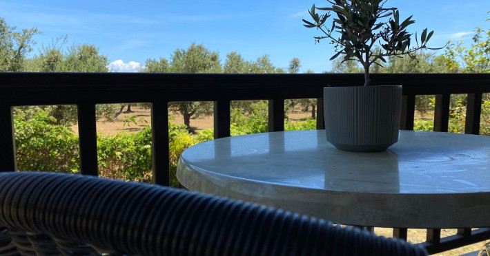 Surrounded by olive groves, in the tranquil location of Vassilikos, Villa Clelia with its 14 rooms, is designed to match the Medditeranean scenery that surrounds it.