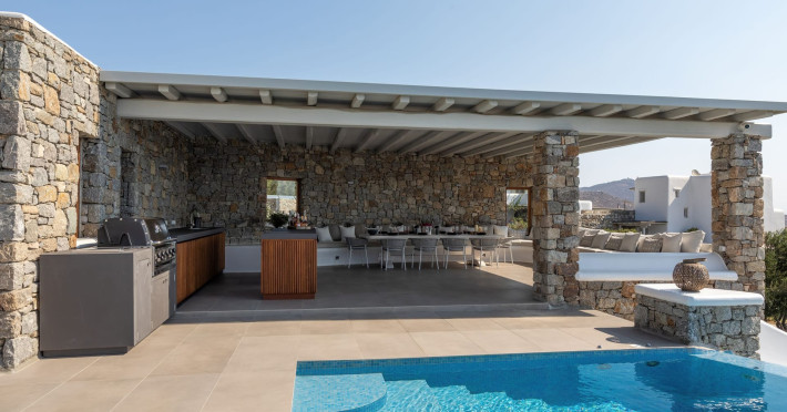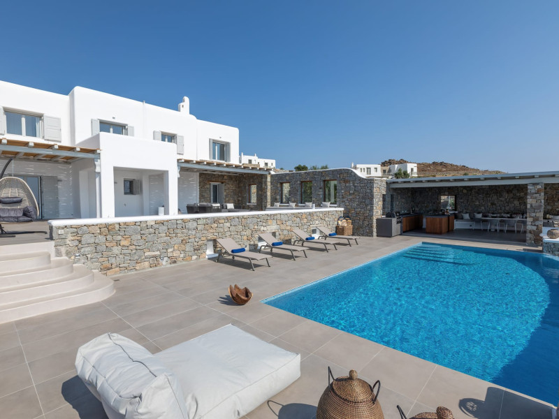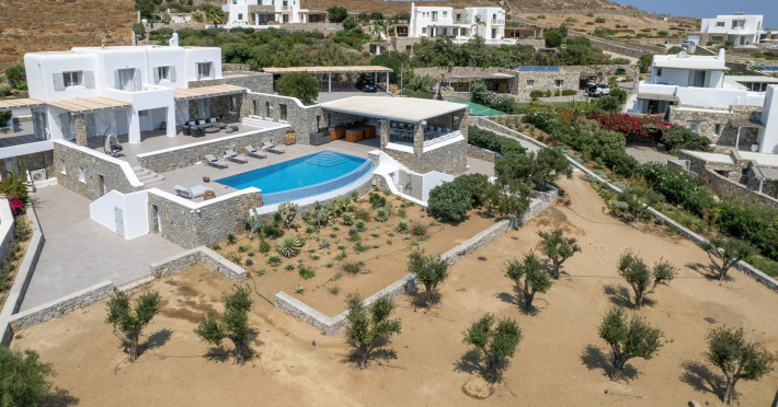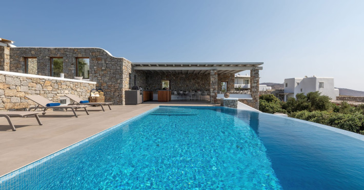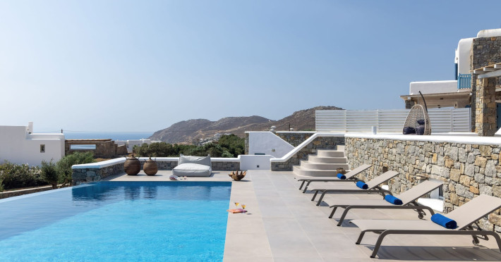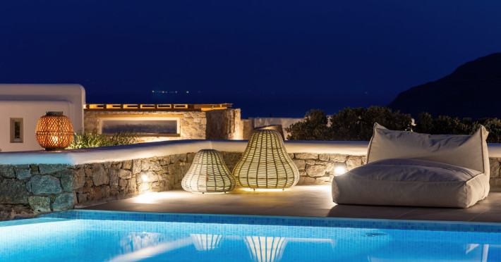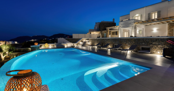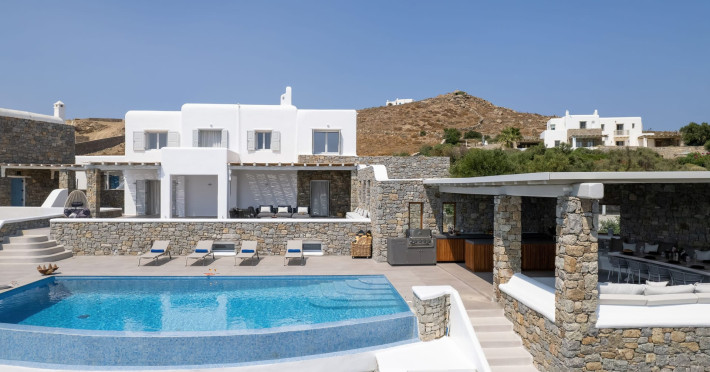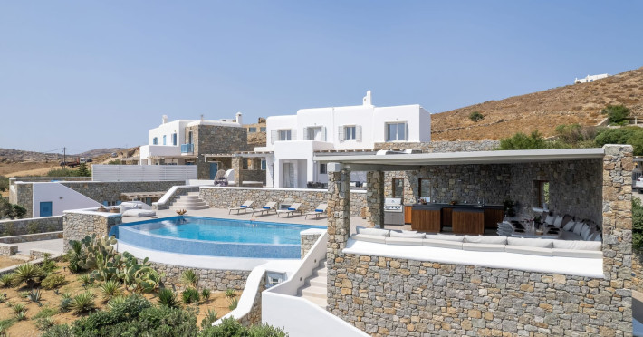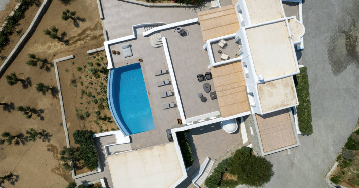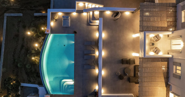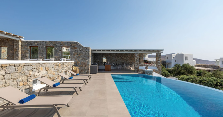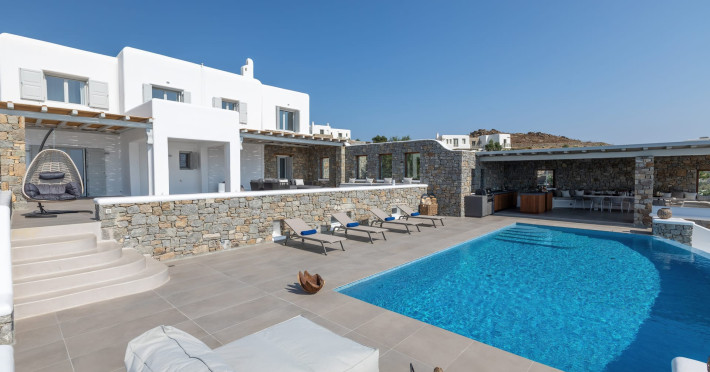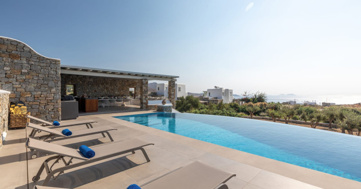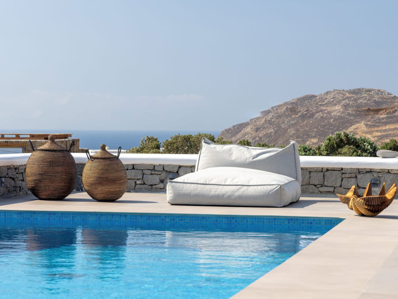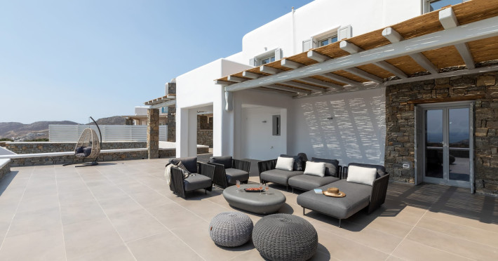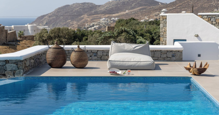The new luxury villa HADI stretches out in between the bay of Kalafatis and the famous beach Kalo Livadi, as a new proposal of modern and luxury accommodation, for families and groups looking for a relaxed, comfortable, and unpretentious experience.