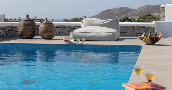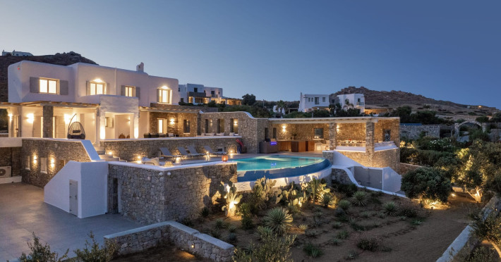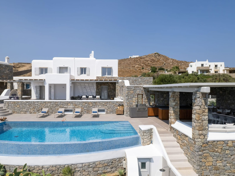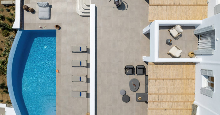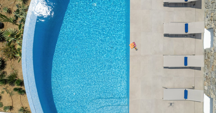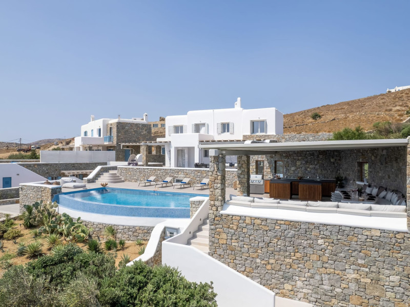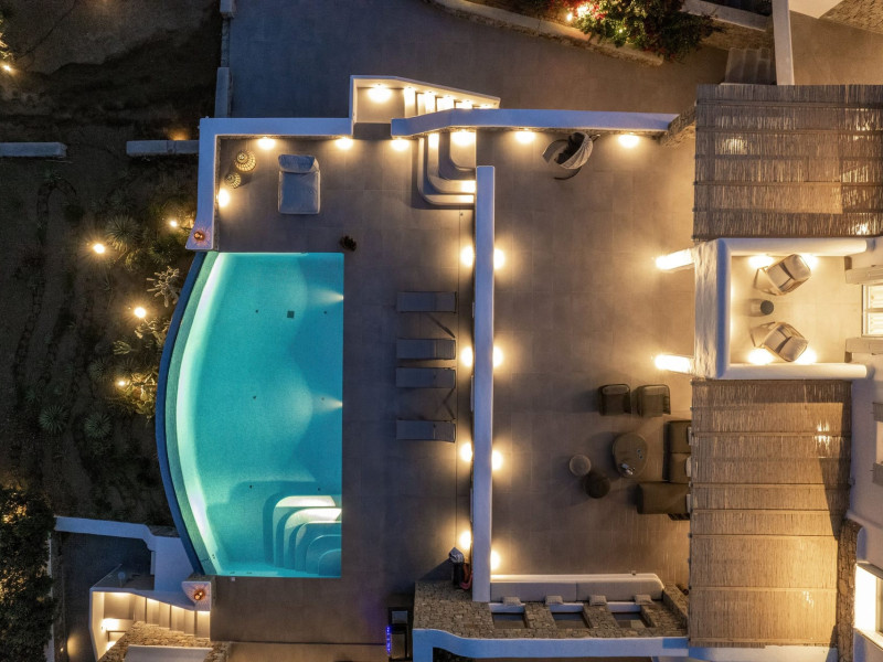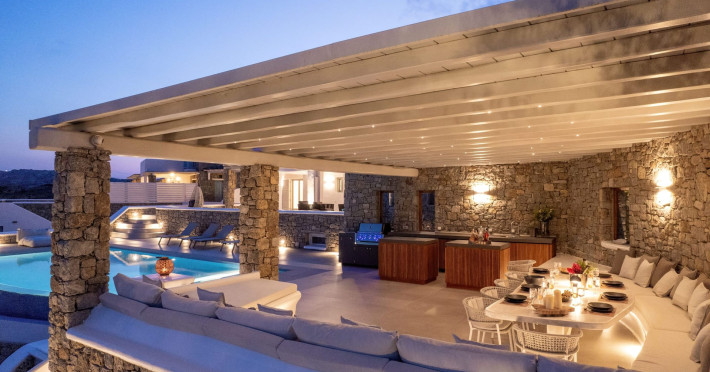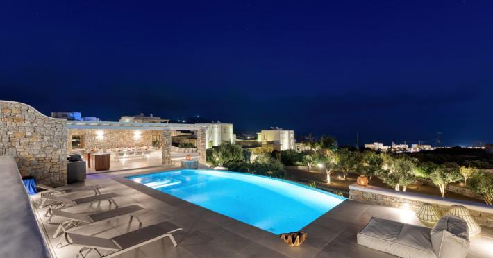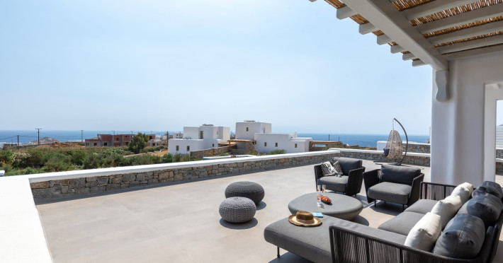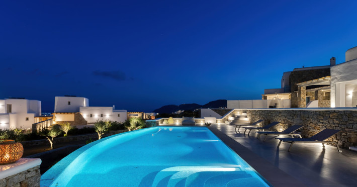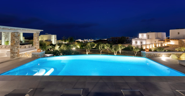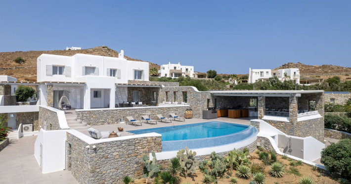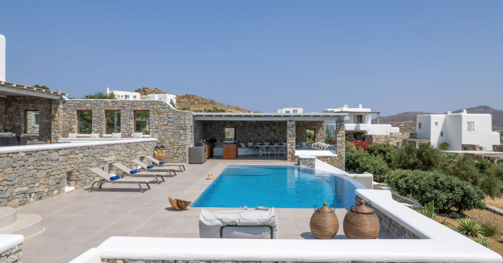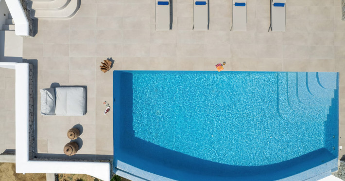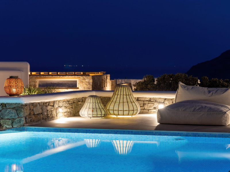 The new luxury villa HADI stretches out in between the bay of Kalafatis and the famous beach Kalo Livadi, as a new proposal of modern and luxury accommodation, for families and groups looking for a relaxed, comfortable, and unpretentious experience.