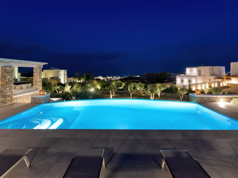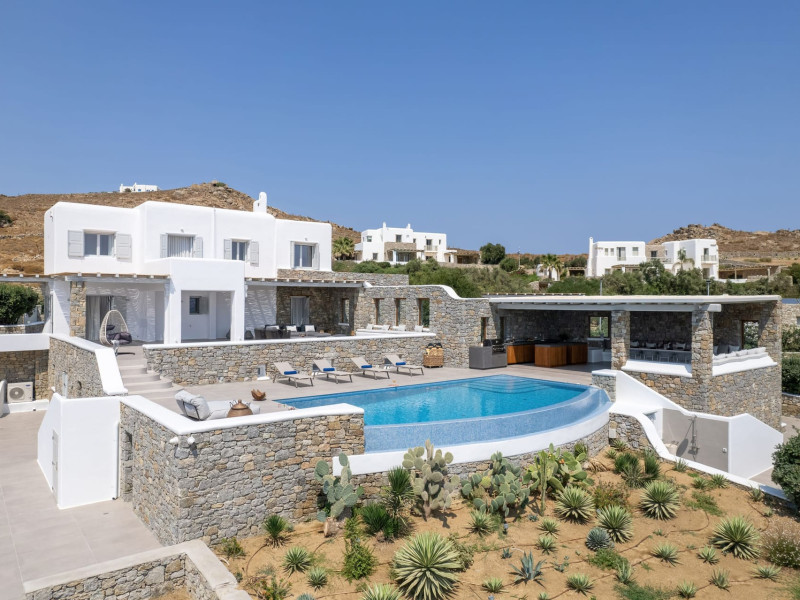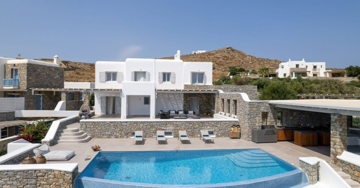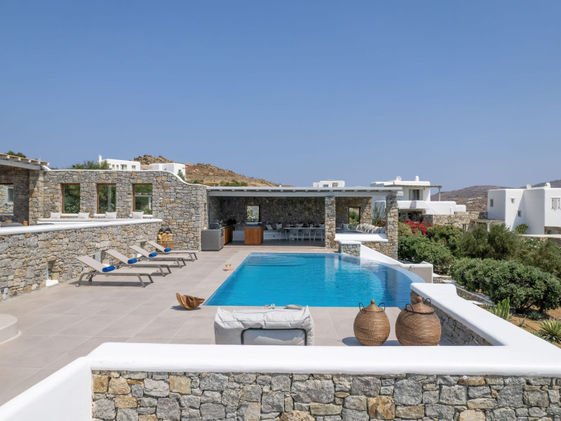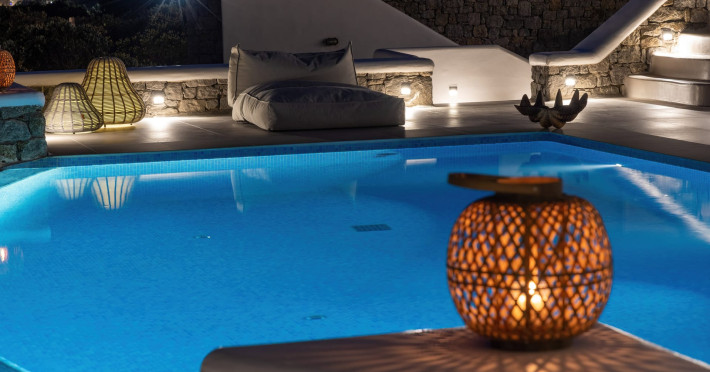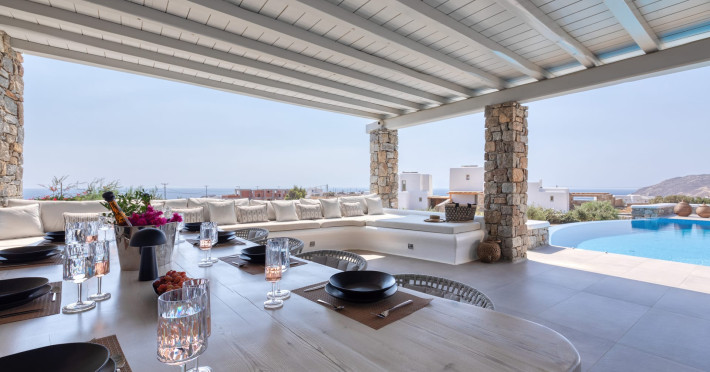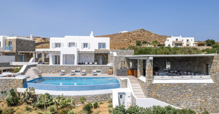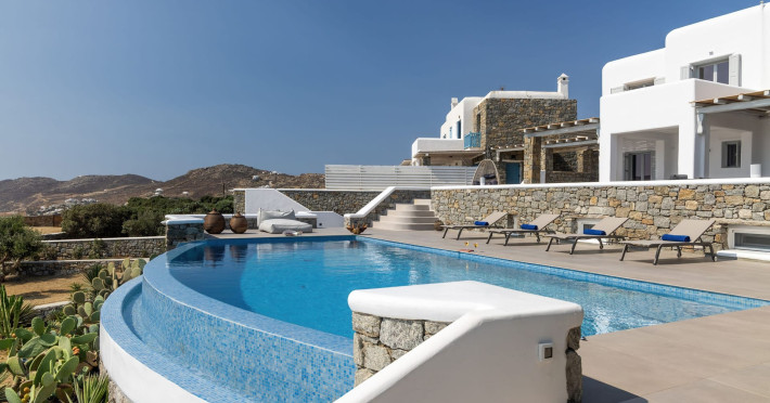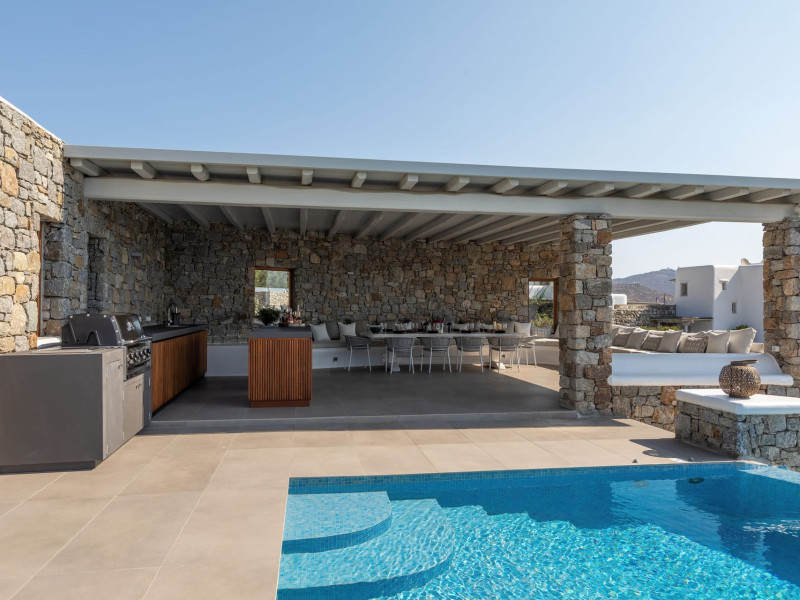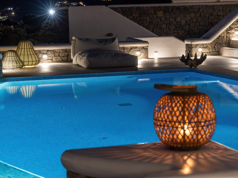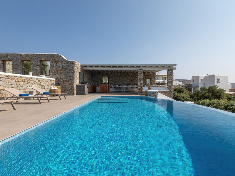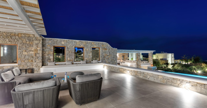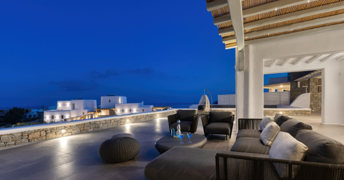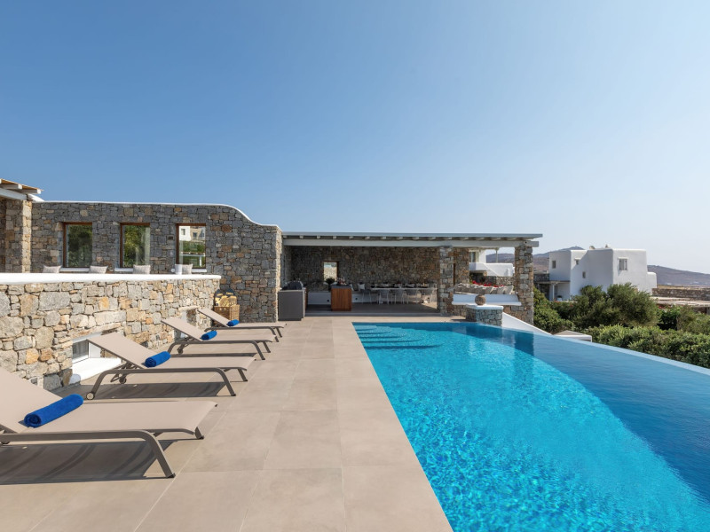 The new luxury villa HADI stretches out in between the bay of Kalafatis and the famous beach Kalo Livadi, as a new proposal of modern and luxury accommodation, for families and groups looking for a relaxed, comfortable, and unpretentious experience.