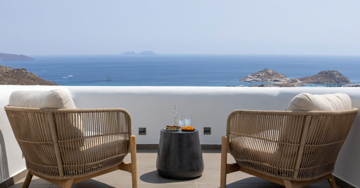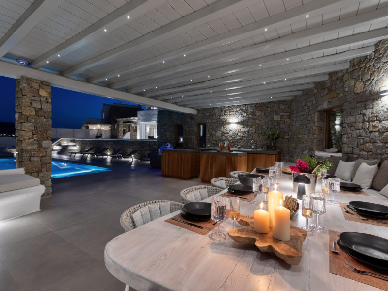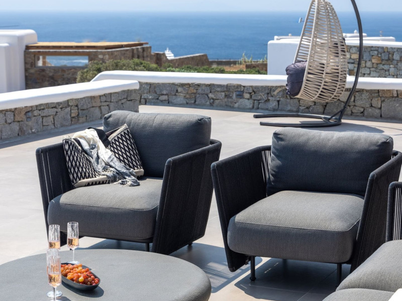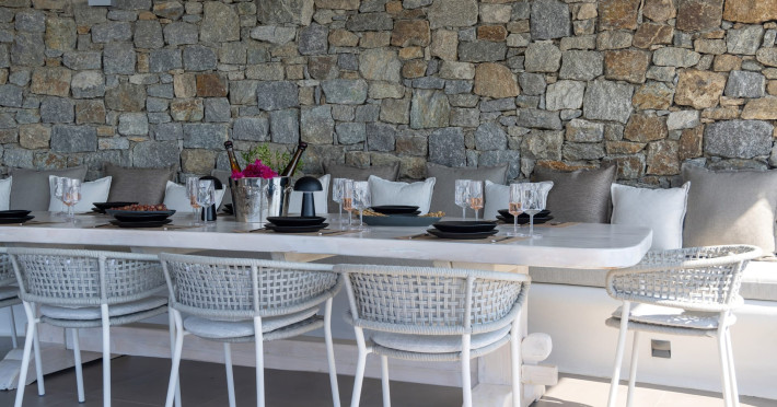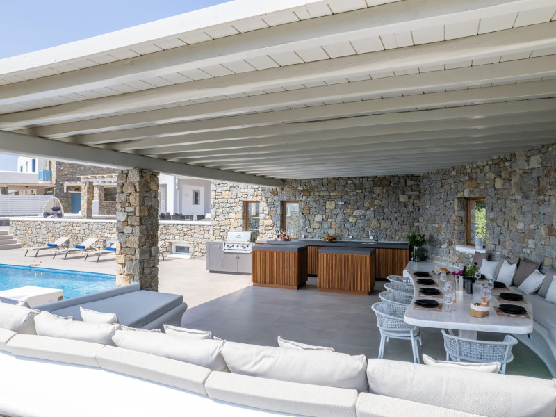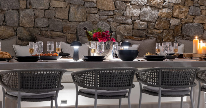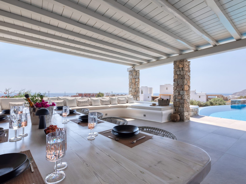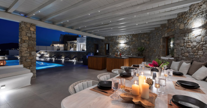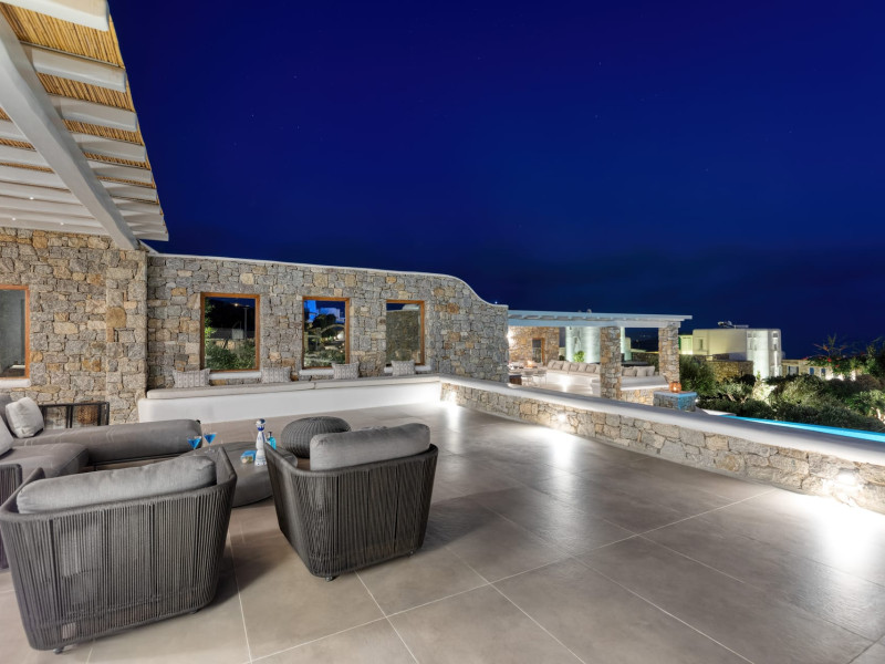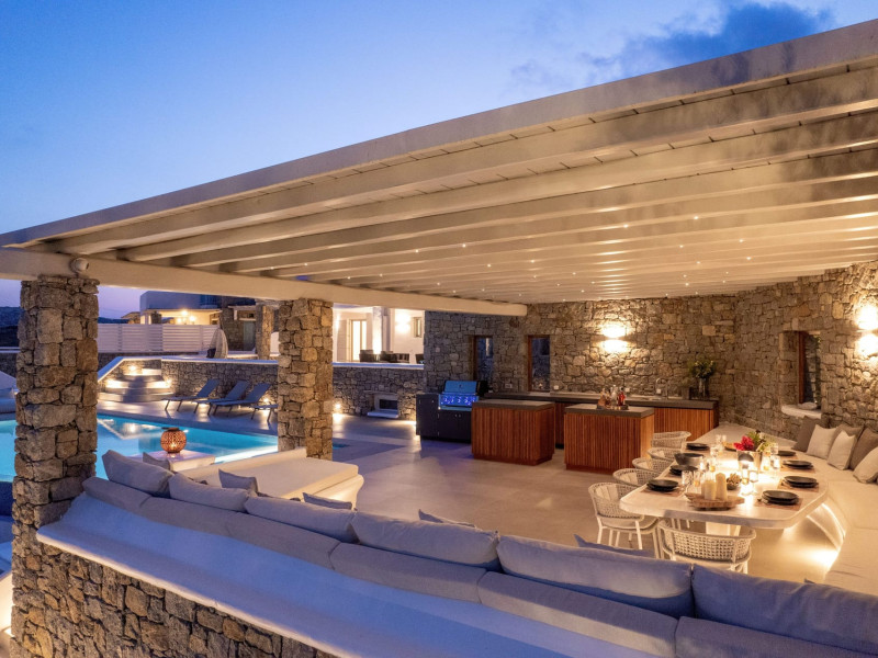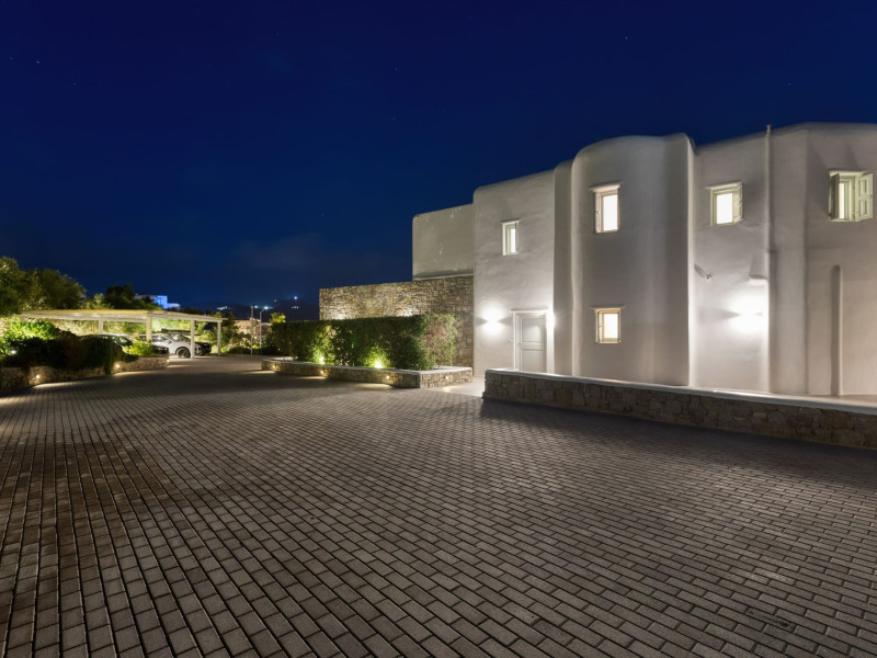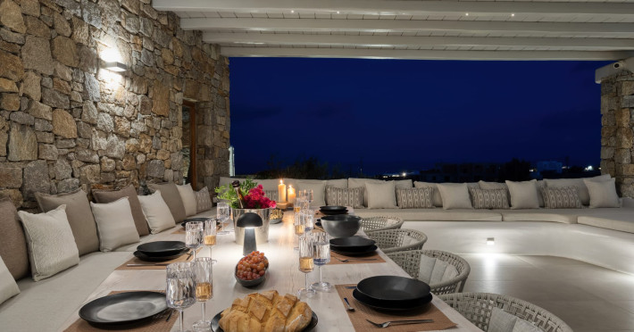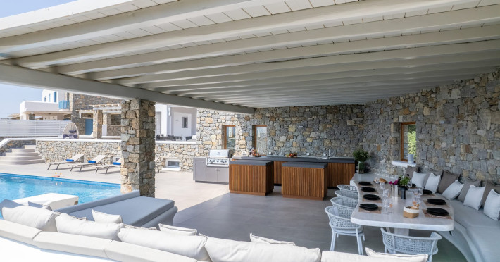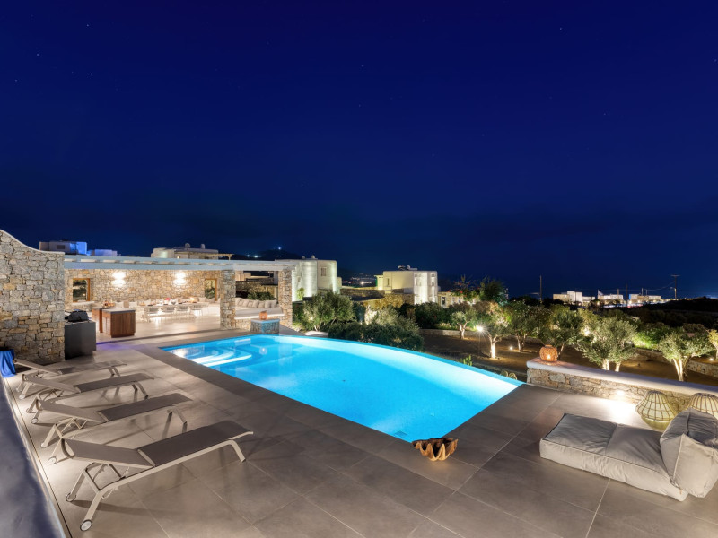 The new luxury villa HADI stretches out in between the bay of Kalafatis and the famous beach Kalo Livadi, as a new proposal of modern and luxury accommodation, for families and groups looking for a relaxed, comfortable, and unpretentious experience.