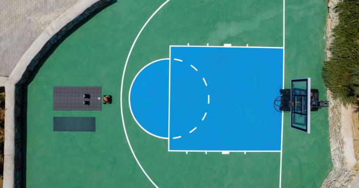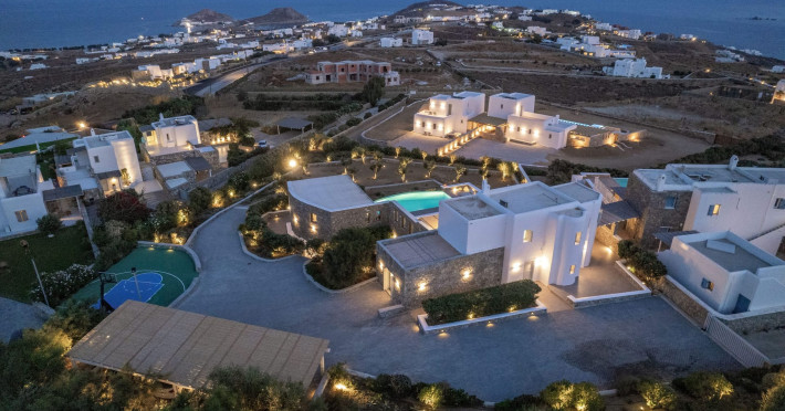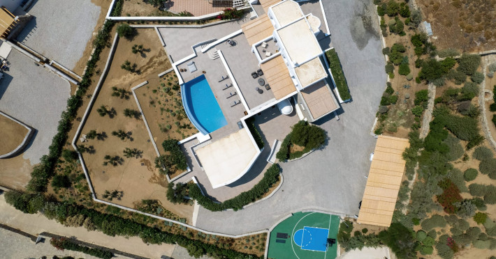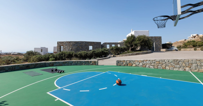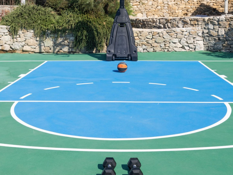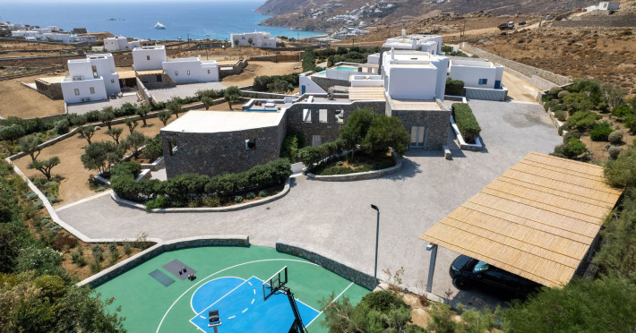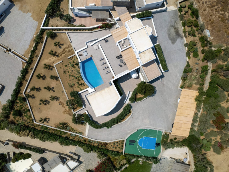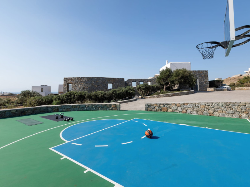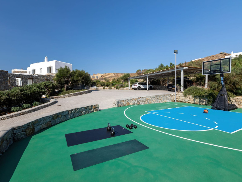 The villa consists of 6 en-suite bedrooms, 6 bathrooms & 2 guest WC, a fully-equipped kitchen, spacious lounge areas with an external dinner table, an infinity pool with a jacuzzi, a single basketball court, and a BBQ area.