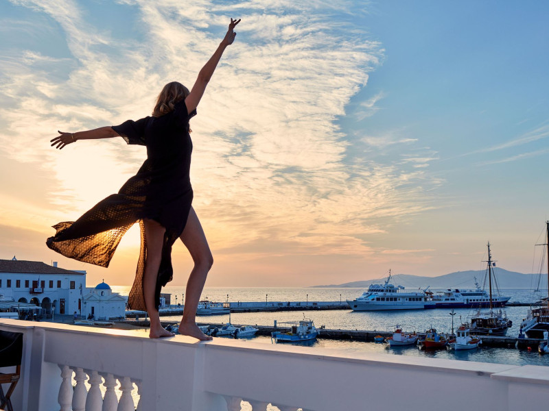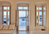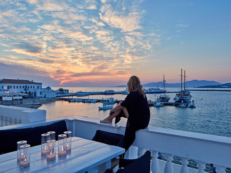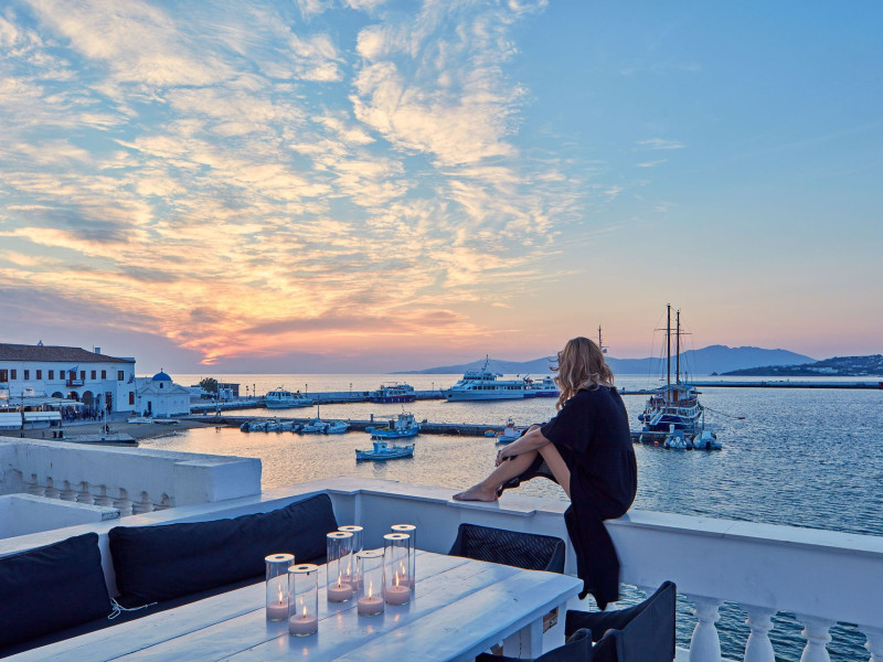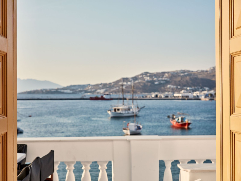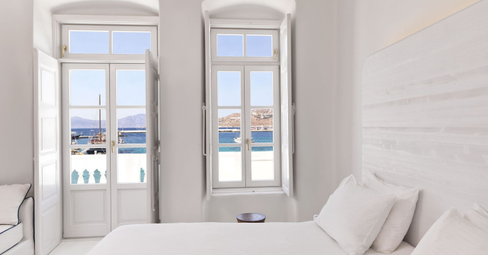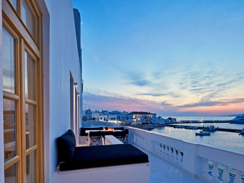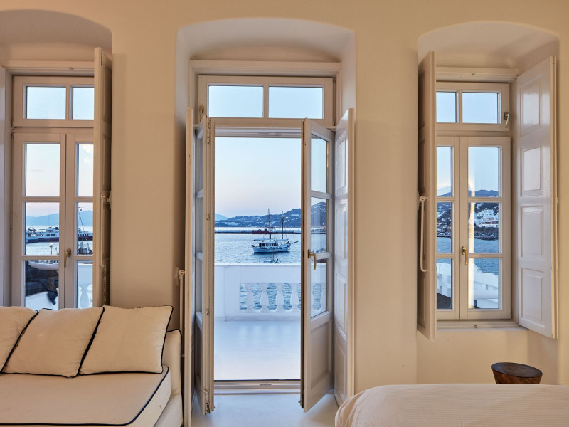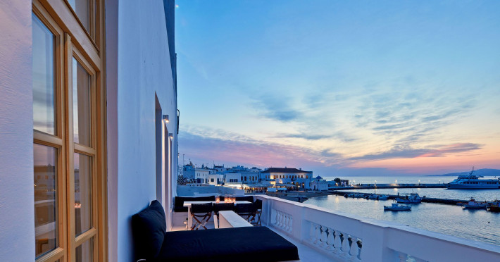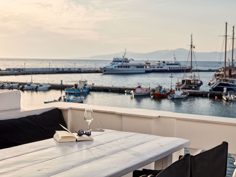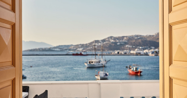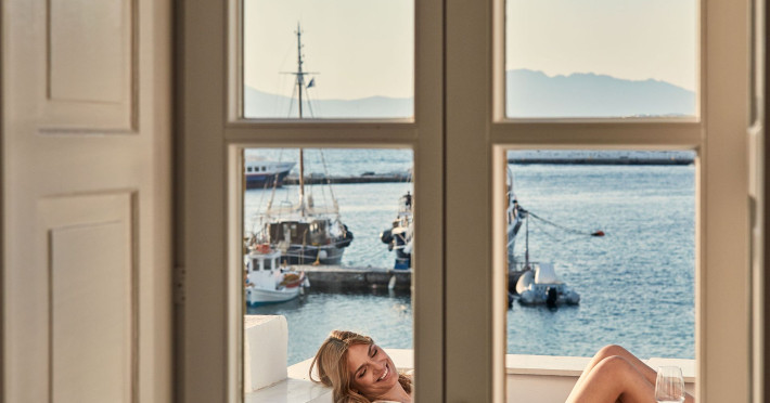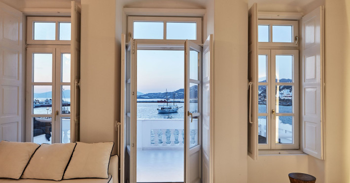 The Villa is exceptionally situated in the Center of Mykonos, in a unique location overlooking the old harbor one of the the town’s most priviliged spot, right on the waterfront. It is ideal for those who want to combine their vacations allowing for peace and quiet, or those who want to enjoy the famous night life of Myconos. The view is breathtaking stretching across the Aegean and Myconos town all the way into the colorful sunsets