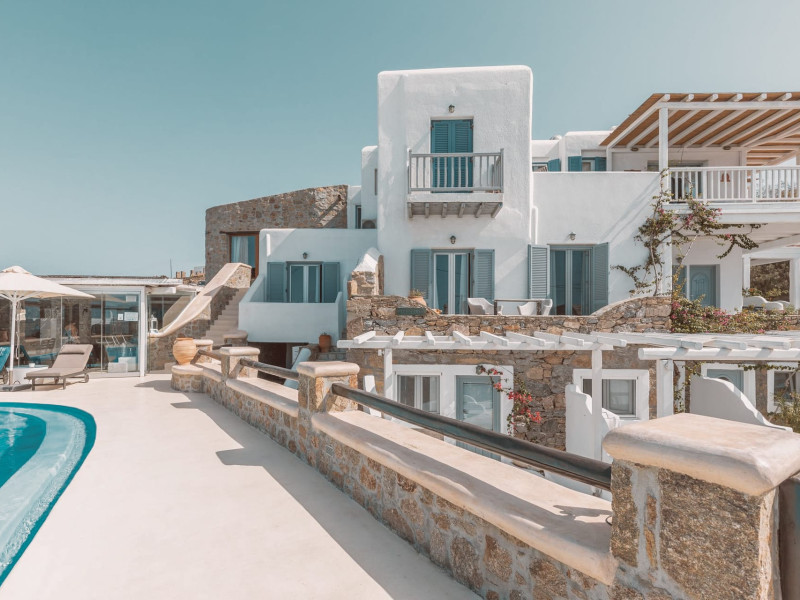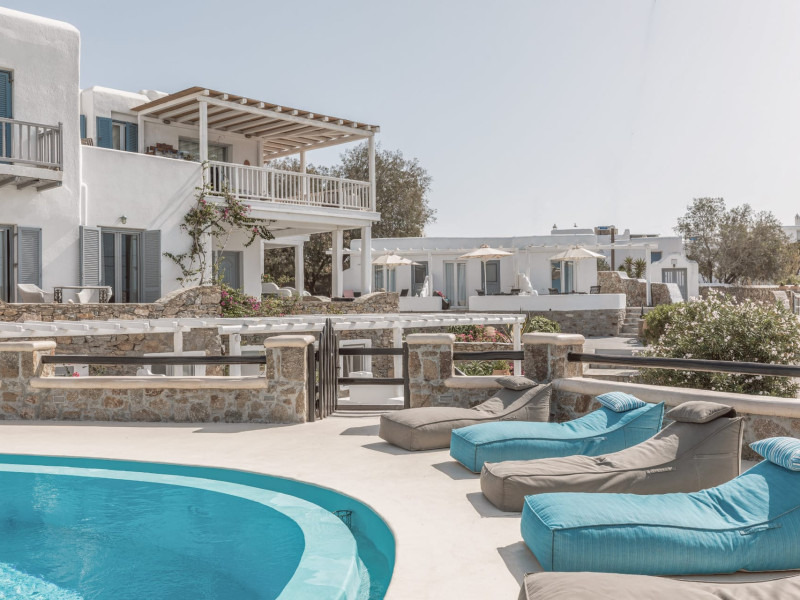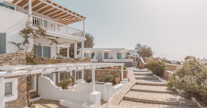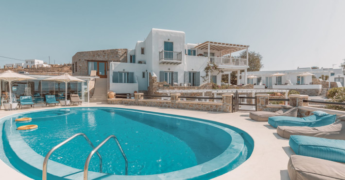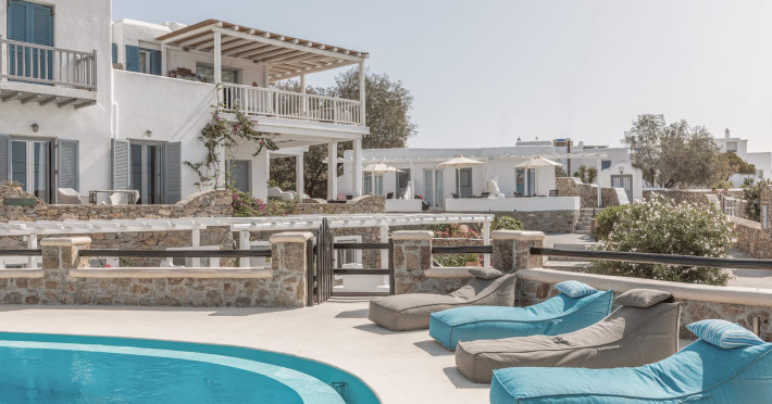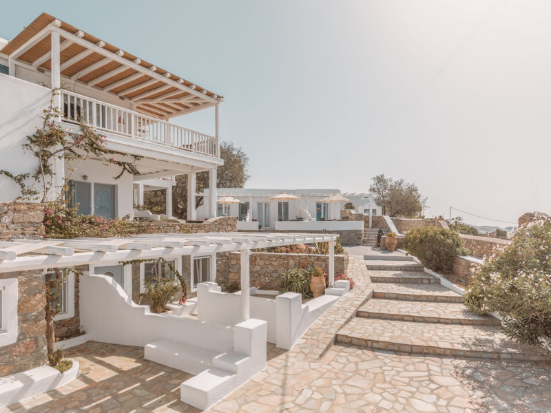 Nestled on the hillside and within strolling distance of Mykonos’ enchanting Old Town, Villa Konstantin Rooms & Suites stands as an intimate and charming haven, proudly owned and operated by a local family. Crafted meticulously over the years, this retreat emanates a distinctive “home away from home” ambiance, seamlessly blending modern hotel conveniences with the genuine warmth and allure of a personal residence. Boasting captivating vistas of the Aegean Sea, the enduring appeal of Villa Konstantin Rooms & Suites is further accentuated by its unparalleled hospitality, a dedicated and welcoming staff, and an ideal location. This delightful combination has consistently propelled Villa Konstantin Rooms & Suites to the pinnacle of TripAdvisor rankings for the past 25 years. Anticipating the pleasure of your arrival, we extend a heartfelt invitation to experience the grace, style, and enduring charm that define Villa Konstantin. Villa Konstantin Rooms & Suites provides a variety of accommodation, such as suites with jacuzzi spa baths for those who are looking for something really speacial, newly designed studios, contemporaries, classics and unique style rooms in Mykonos. Whatever your tastes we can cater to couples, groups of friends, or families, depending on the specific needs of our guests. A wide array of hotel services and facilities are available, including a swimming pool, bar, transfer services, and more. Close to us our guests will find the island’s unparalleled nightlife venues, with dozens of bars, clubs and cafes packed with visitors from all over the world having the time of their lives. Villa Konstantin Rooms & Suites is located close to Mykonos Town, belongs to the 3-key category of Mykonos hotels and is operating from April 19 - September 30 for 2024.