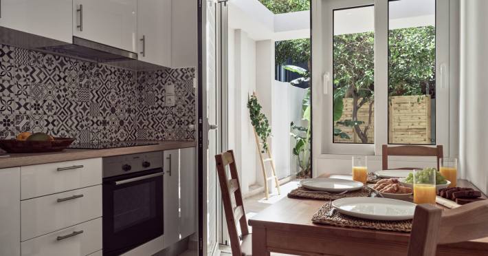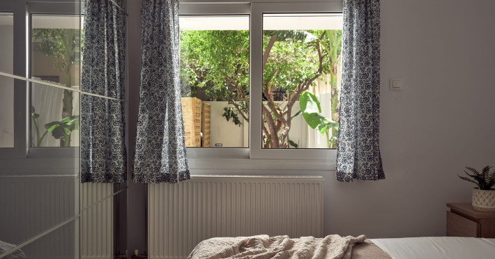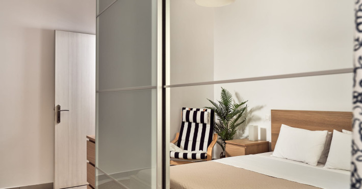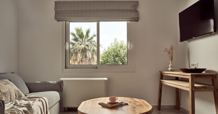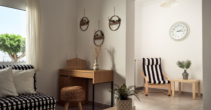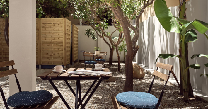Margie City Apartment: One bedroom apartment fully equipped, with garden near the central square of Zakynthos town, in front of the beach with free sunbeds, next to open air cinema, beach volley and tennis court.
