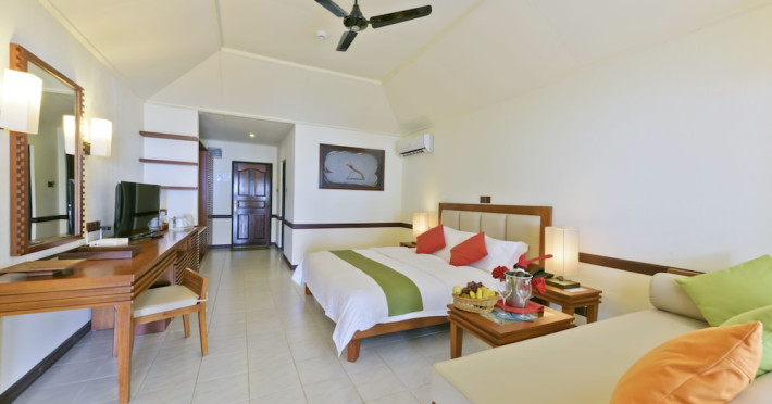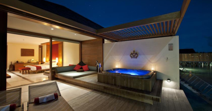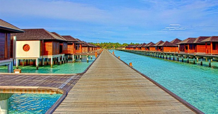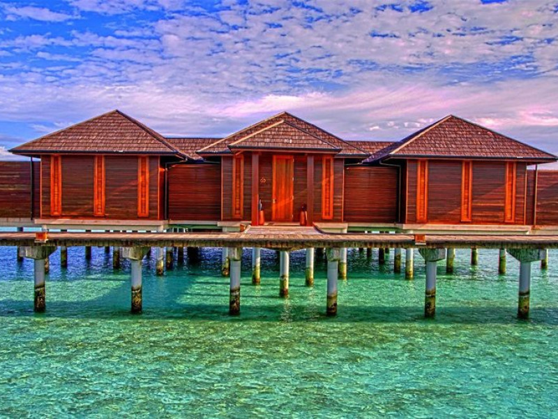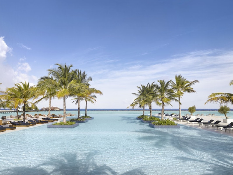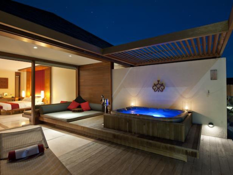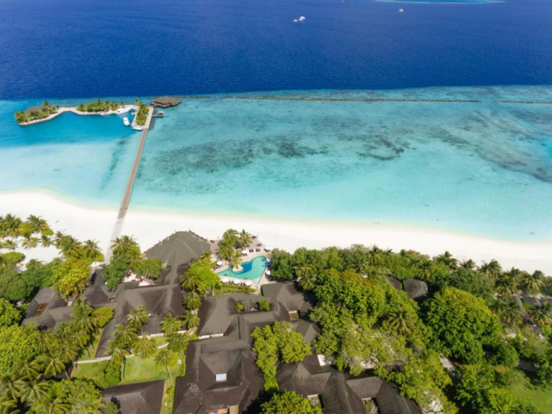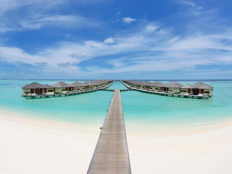 This modern luxury hotel lies on the famous 1 kilometre-long and 200 metre-wide, paradisiacal island of Lankanfinolhu. It is located on the eastern edge of the Northern Malé Atoll. Guests here are able to enjoy the dreamlike landscape consisting of tropical plants, palm trees, a light coral beach and a beautiful lagoon. The local reef lies about 300 m away, whilst the outer reef is 10 minutes away by the dhoni. The airport is just 20 minutes away by speedboat.