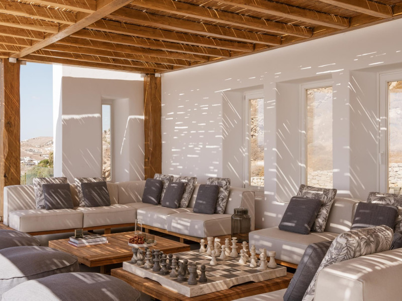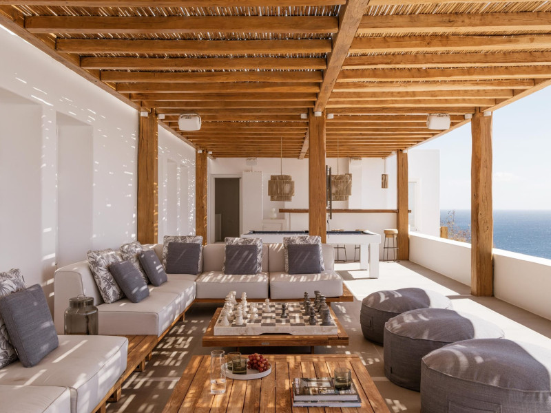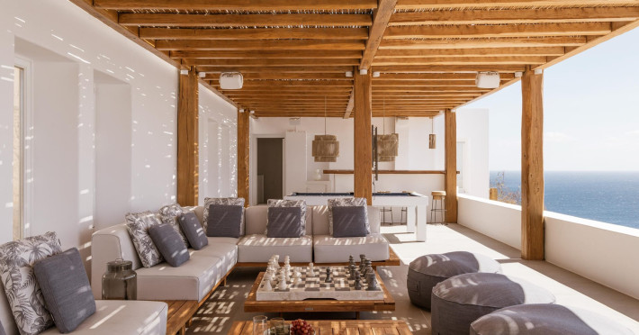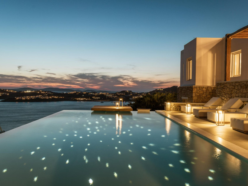 Designed by one of the most well-known and prolific Greek architects, Villa Neféli embodies the essence of elegance and comfort featuring matchless services 24/7 while the villa’s state of the art facilities will fulfill its guests every fantasy. Generously featuring seven lavish bedrooms with en suite designer bathrooms, the villa offers the most modern luxury facilities to match every taste and need. An exuberant living room and dining area with panoramic view to the Aegean, a fully equipped chef's kitchen with supreme amenities, fitness area, outdoor Barbeque, outdoor Jacuzzi and billiards table in the Master’s bedroom