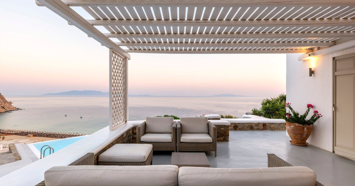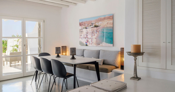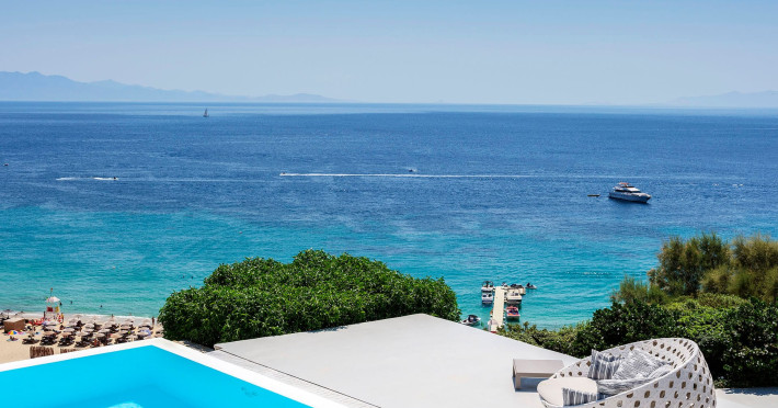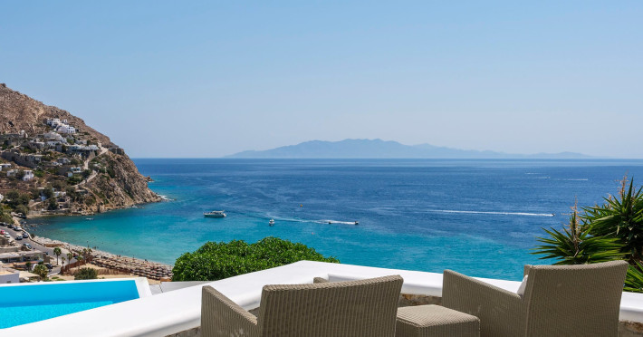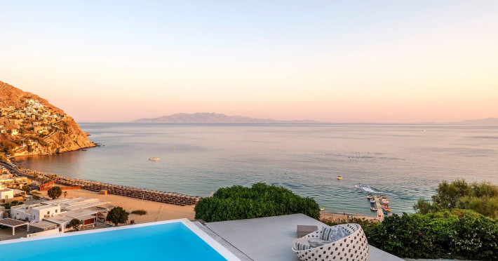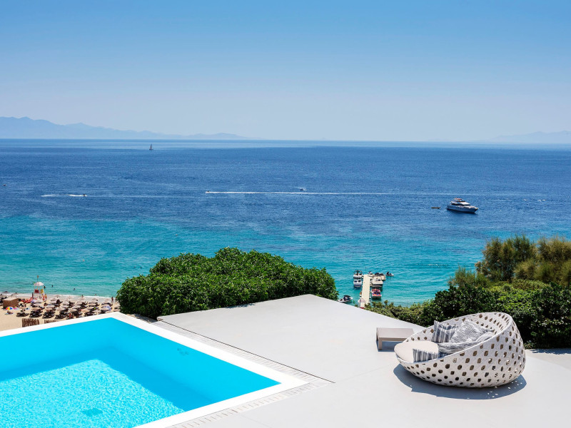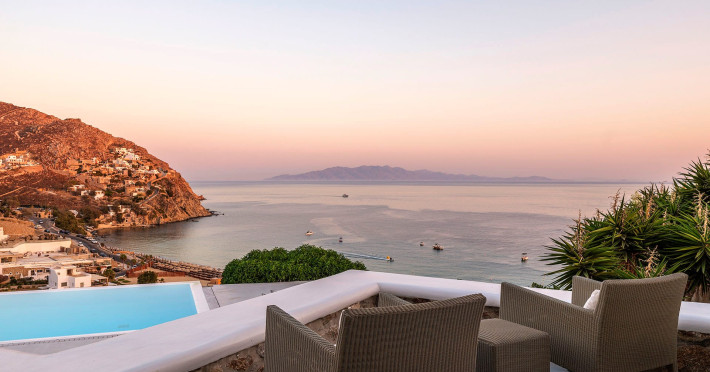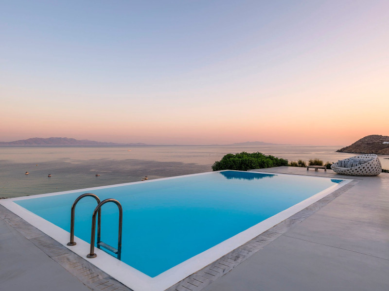 Villa Oleandri is a true private paradise that captivates with its stunning unobstructed views of the glistening Aegean Sea and the picturesque bay below. This unique location is just a short walk or drive from Eliá beach, making it an ideal base for sun-seekers.