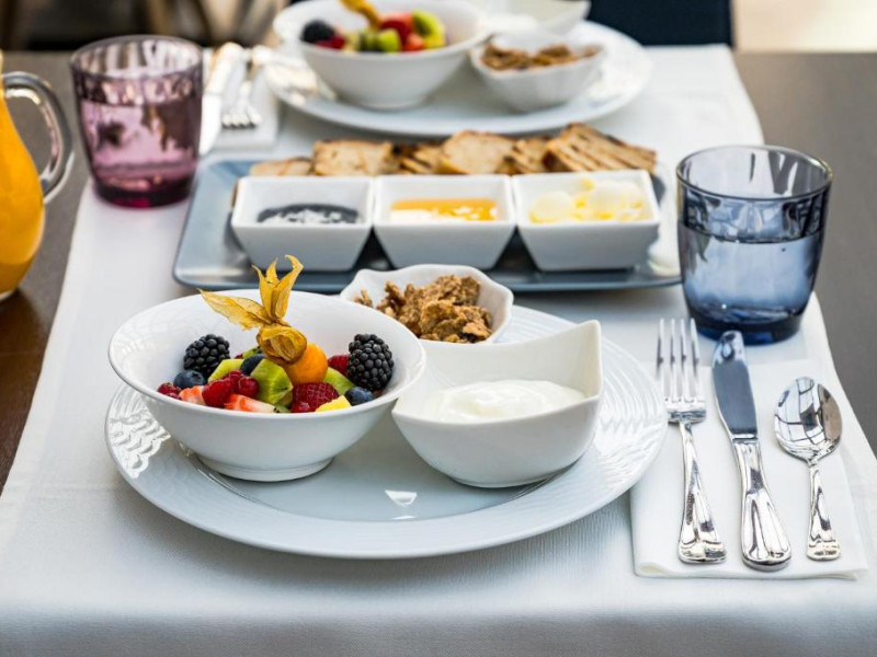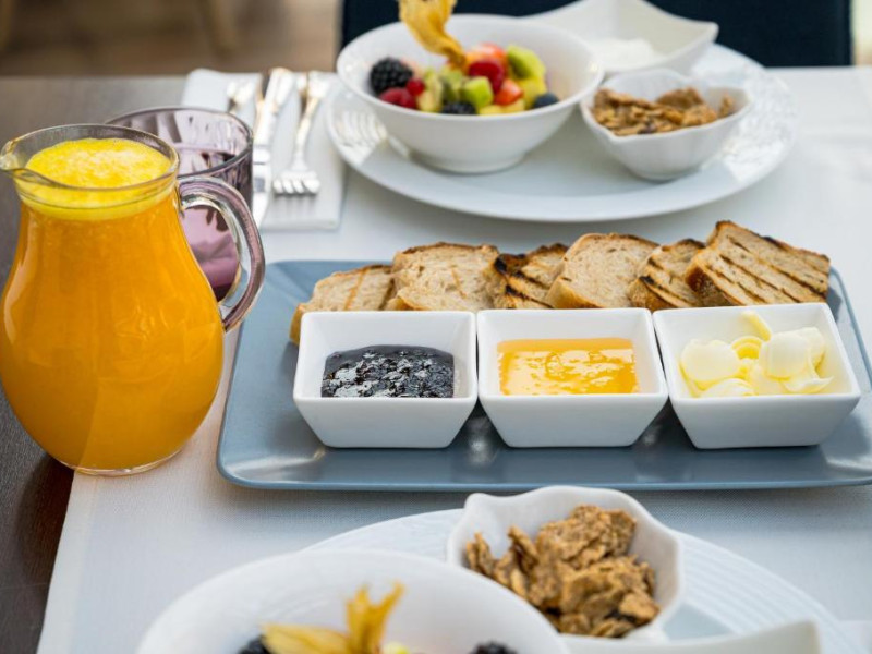 Camerele spațioase sunt decorate cu mobilier de calitate și dispun de băi private luxoase, TV cu ecran plat și zone de relaxare. Restaurantul hotelului servește preparate din bucătăria internațională și specialități locale, intr-o atmosferă elegantă cu elemente decorative tradiționale.