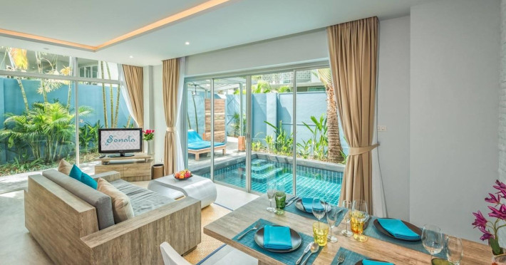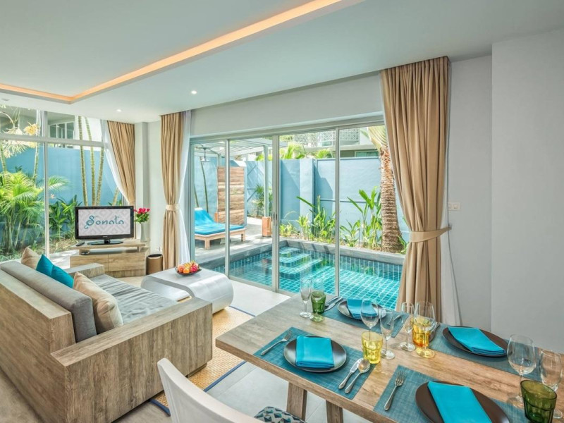 Located in Chalong, Phuket, Villa Sonata Phuket is a resort offering private pool villas with air-conditioned rooms, each featuring a private bathroom and balcony. Guests can enjoy an outdoor pool, fitness center, garden, and terrace. Free WiFi and free private parking are available.