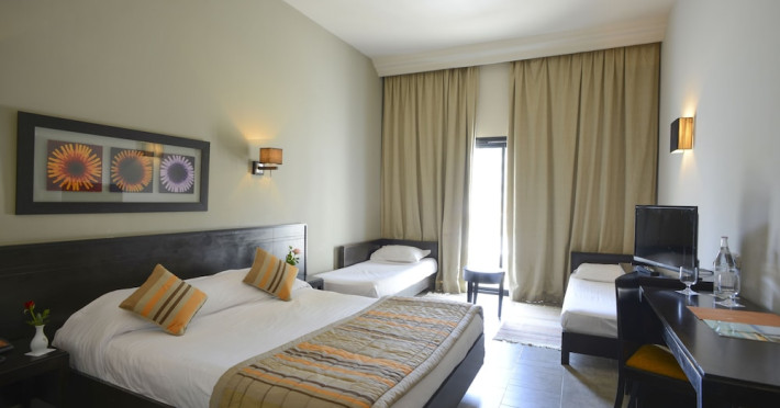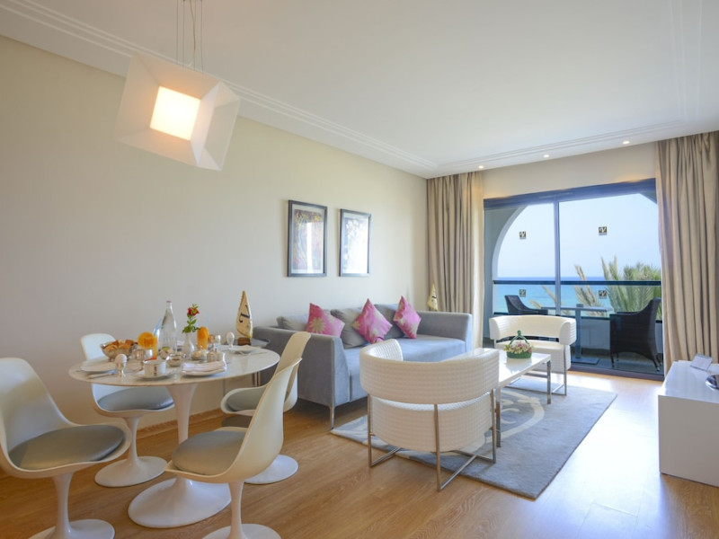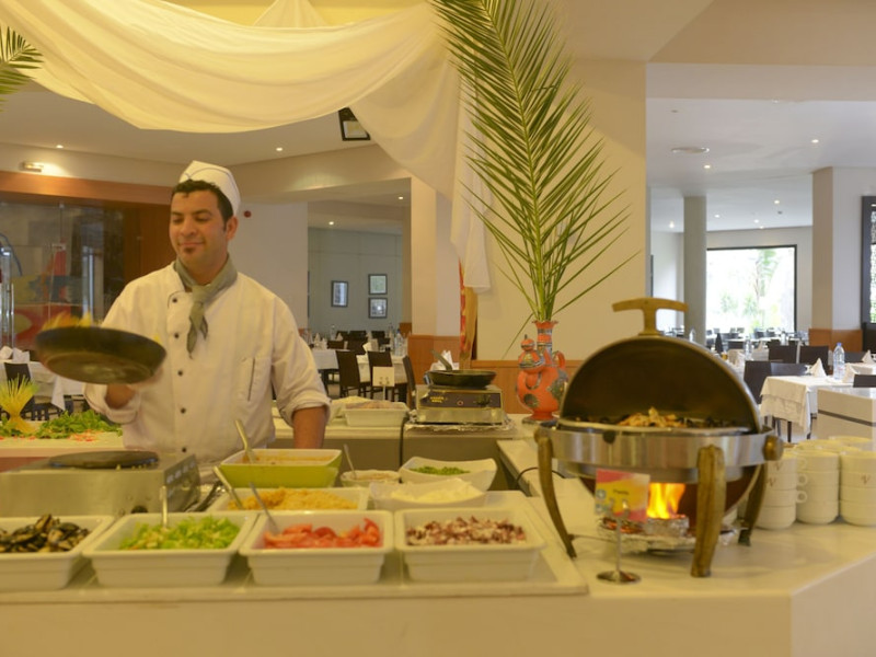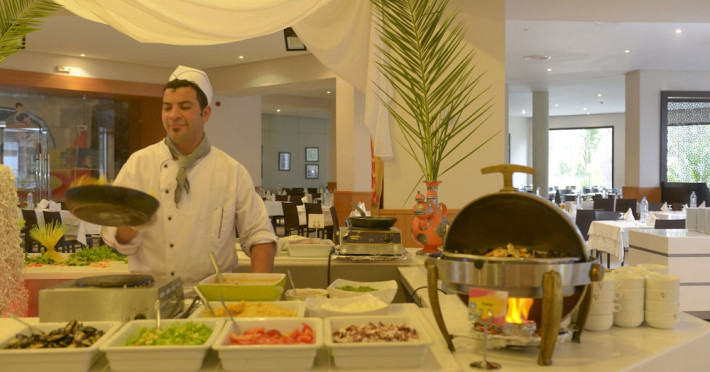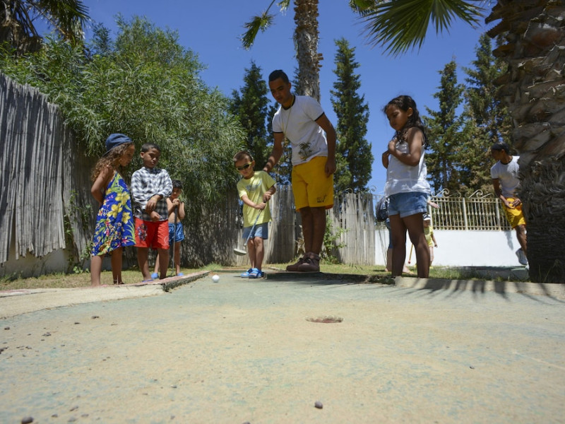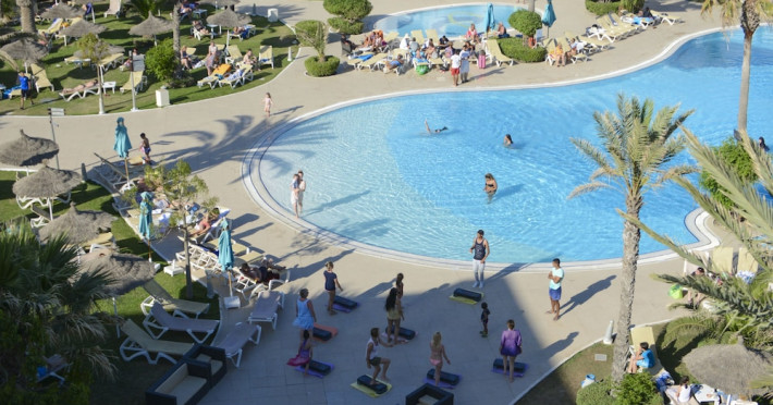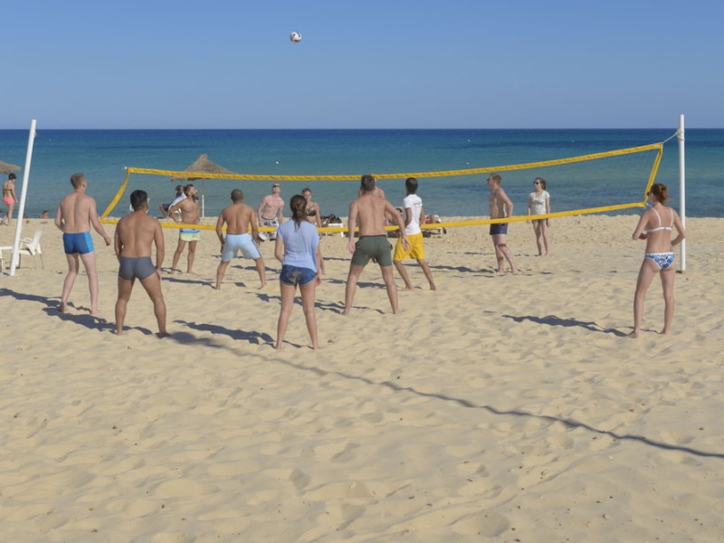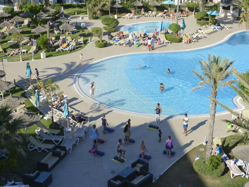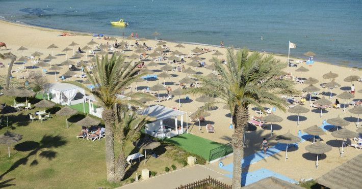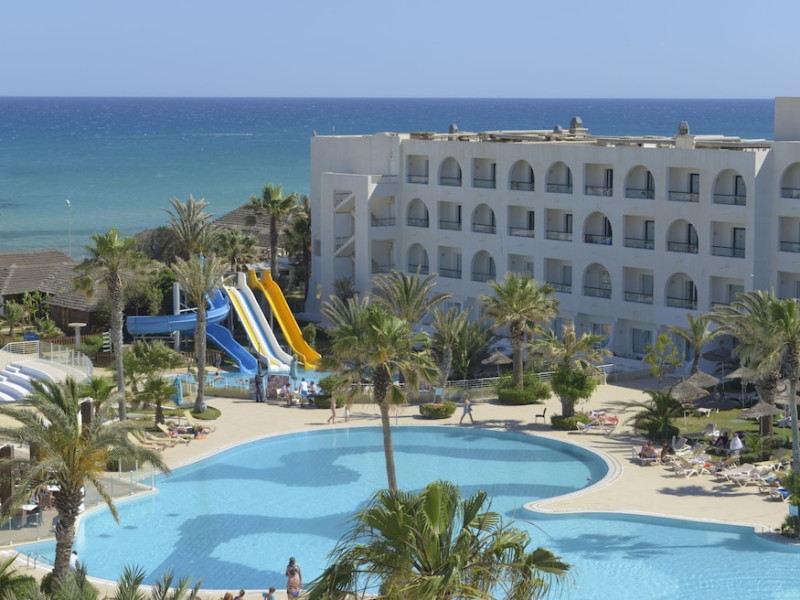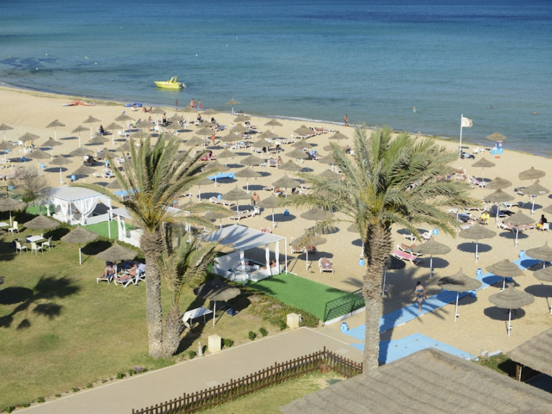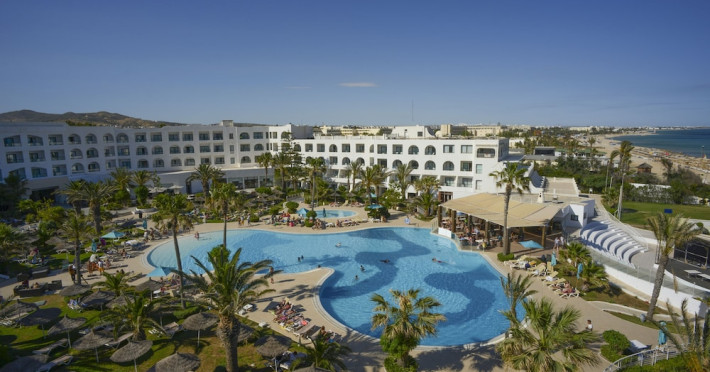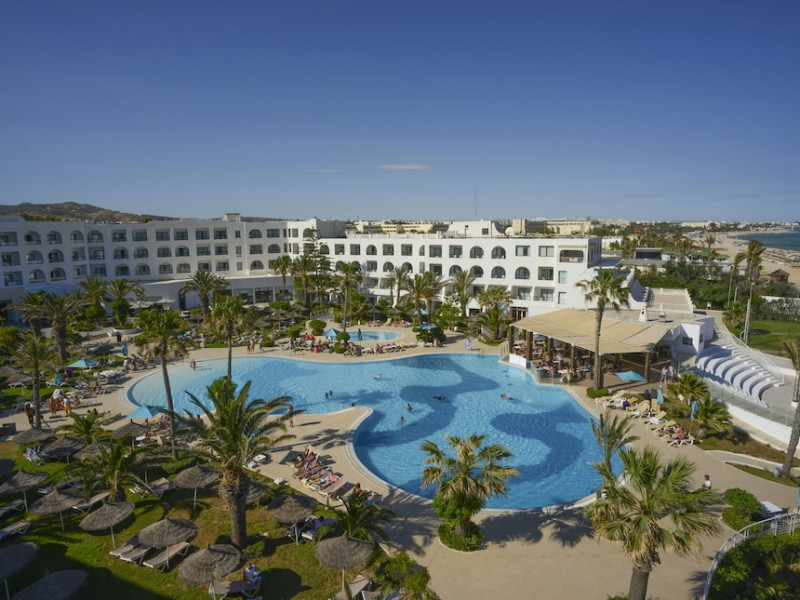 The beach hotel has a splendid location on a sandy beach. Tunis-Carthage International Airport is situated around 70 km away. Renovated in 2009, the hotel is perfect for families or couples because of its environment and infrastructure. The hotel has 447 double, triple and family rooms in 3 buildings with 3 lifts. Guests are welcomed in a lobby with 24-hour reception service and currency exchange facilities. The hotel also features a hairdressing salon, auditorium, games room and kids' club. The café, bar, pub and restaurant provide food and drinks. For additional fees, guests may make use of the WLAN Internet access and laundry service. All rooms have a balcony or terrace with a sea, pool or garden view. Each is en suite and comes equipped with hairdryer, direct dial telephone, satellite/cable TV and a safe. The hotel provides a range of leisure facilities, including outdoor swimming pool, children's swimming area, aqua fit, aerobics, gym and steam room. Parasols have been laid out ready for use, and for additional fees, guests may relax in the sauna or with a massage. Water sports available for additional fees include banana boating, catamaran boating and canoeing. Windsurfing and pedal boating are further options. Facilities are also available for tennis, pool/snooker (fees apply), beach volleyball, minigolf and archery. Entertainment programmes for adults round off the services on offer. Sun loungers and parasols are provided on the nearby beach. The golf courses, Citrus and Yasmine, are located some 20 km from the hotel. This hotel offers all-inclusive packages.