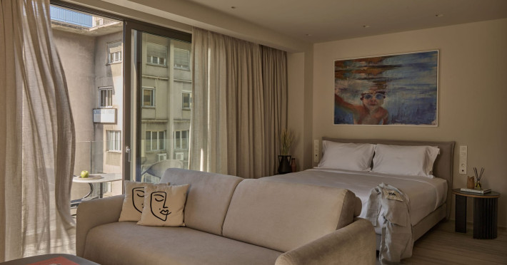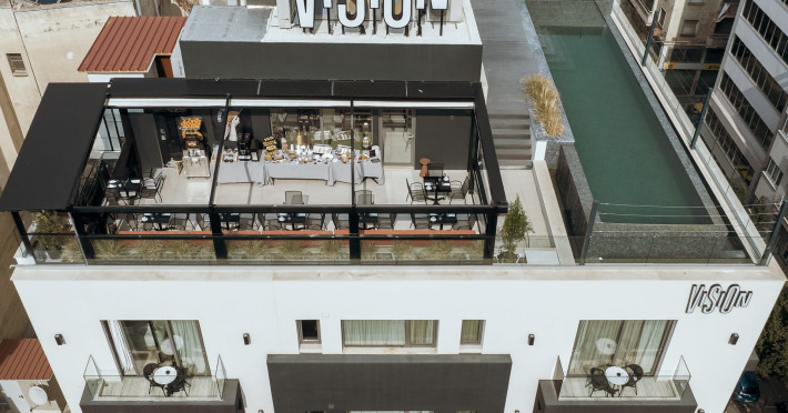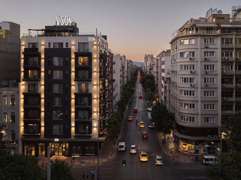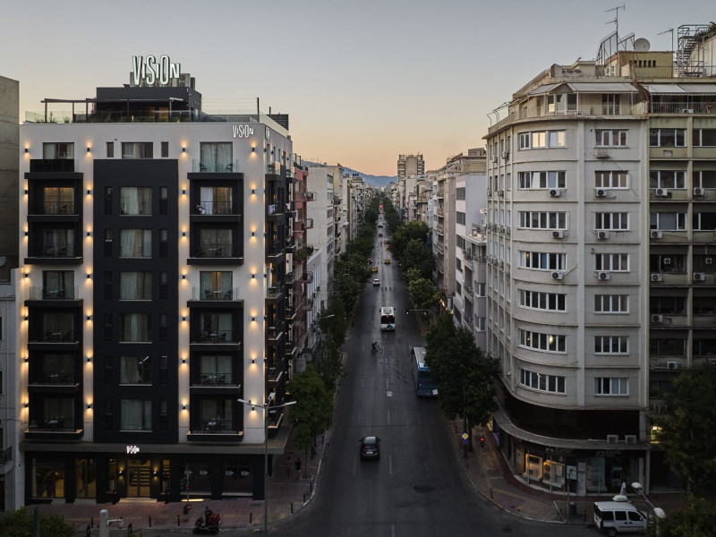 Vision Omonia is the first project of what is to become a family of accommodation in the heart of the Hellenic capital. Vision aspires to fill the gap between hotels and short-stay rentals, with the aim of reaching out to its guests with the famous Hellenic hospitality, top-notch services and a humane, relaxing approach within the vibrant urban environment. The Vision is spreading to the districts of Omonia and Athens, celebrating Hellenic Hospitality through a new model of tourism, more personalized, yet affordable to all, so that guests can experience the authentic Athens.In a 7th floor renovated building you will find 42 rooms in total, and whatever your choice is,you will enjoy every moment of your stay with us!A 24 hour reception, concierge services,Vision mobile app, gym,and an extraordinary roof top with an infinity pool comes to complete an unforgettable stay at the heart of Athens. A 4-star hotel situated smack dab in the center of the Greek capital, it captures the city’s dynamic spirit. Located a few steps from the famous Omonia square it's the beginning of exploring all the shopping, art galleries, restaurants and close to the timeless wonders of the Acropolis and Ancient Agora.