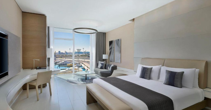 W Abu Dhabi - Yas Island beneficiază de un design unic, fiind amplasat pe jumătate pe uscat și jumătate pe apă. Acesta cuprinde mai multe localuri de luat masa și lounge, camere moderne, cu iluminat ambiental și internet gratuit. Acesta oferă vedere directă la circuitul de Formula 1.
