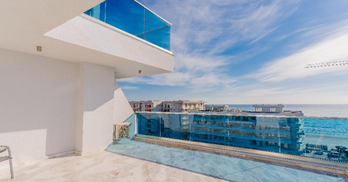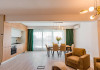 Spatii de cazare disponibile: 2 apartamente cu 2 camere, de tip studio (sunt mai mici decat cele cu 2 camere standard) cu vedere laterala la mare 10 apartamente cu 2 camere, cu vedere laterala la mare 2 apartamente cu 2 camere, fara vedere la mare 3 apartamente cu 3 camere, cu terase cu vedere la mare (de tip penthouse)