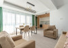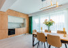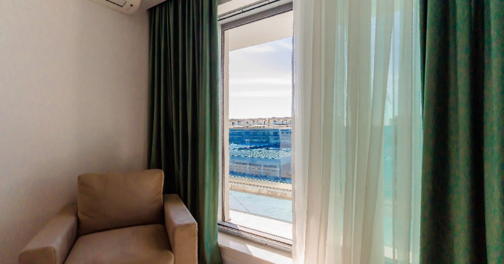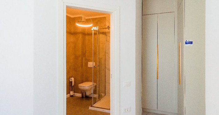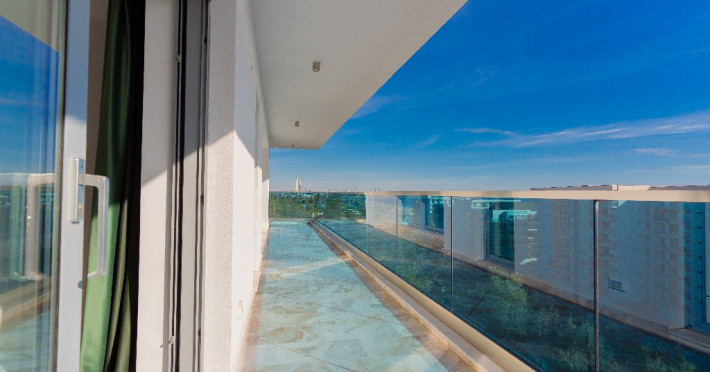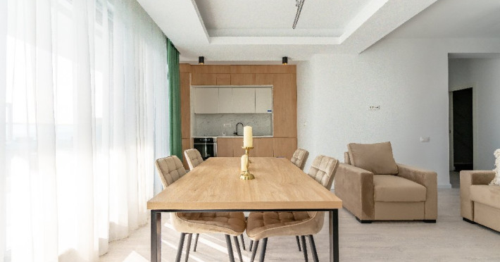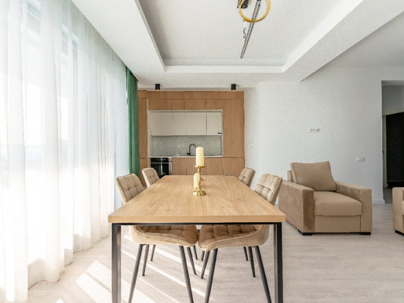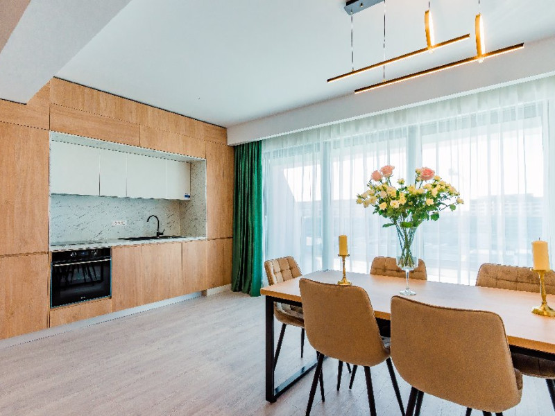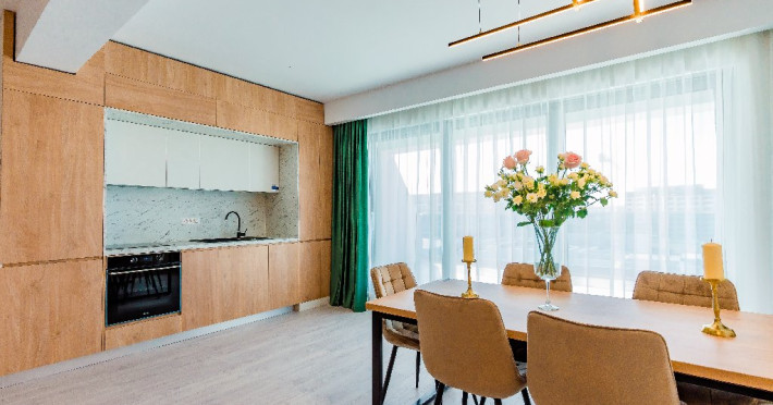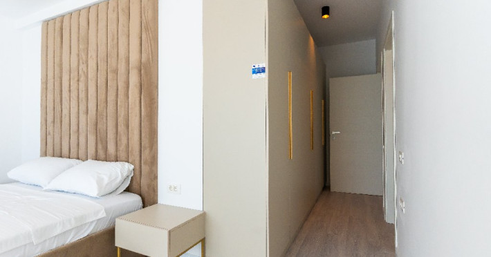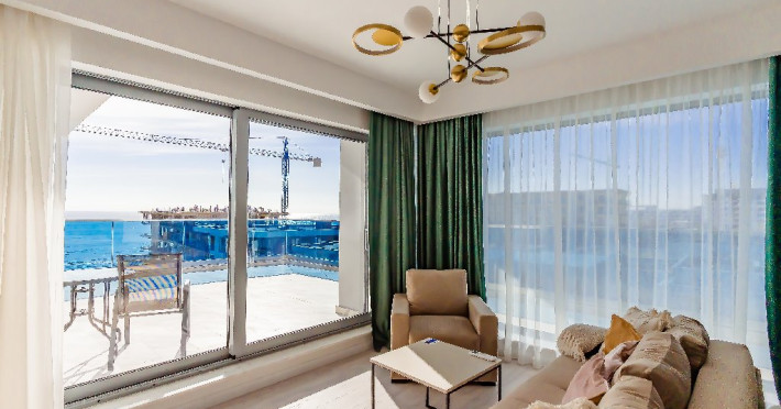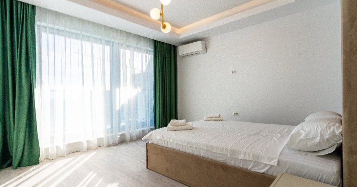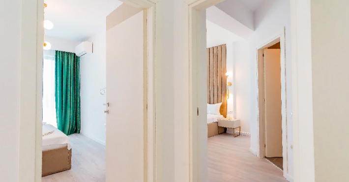 4. - numele apartamentului: Wave 4 penthouse (801, 802, 803) - vedere laterala la mare - adresa concreta a apartamentului (localitate, strada, numar): str. Promenada Navodari, nr. 95D, etaj 8, ap. 801, 802 si 803, etaj 9, ap. 901 si 902, Navodari, jud. Constanta Apartamentul are 3 camere (2 dormitoare cu pat matrimonial si living cu canapea extensibila). Capacitate maxima: 6 persoane. Dotari si facilitati: bucatarie de tip open space, complet mobilata si utilata (frigider, plita cu inductie, cuptor cu microunde, cuptor electric, masina de spalat rufe, masina de spalat vase, espressor de cafea cu cafea boabe, vesela, tacamuri). Toate apartamentele au aer conditionat, TV LED cu conexiune cablu TV, acces Internet Wi-Fi gratuit, suport uscator de rufe, masa de calcat si fier de calcat, uscator de par, mobilier pe balcoane/ terase.