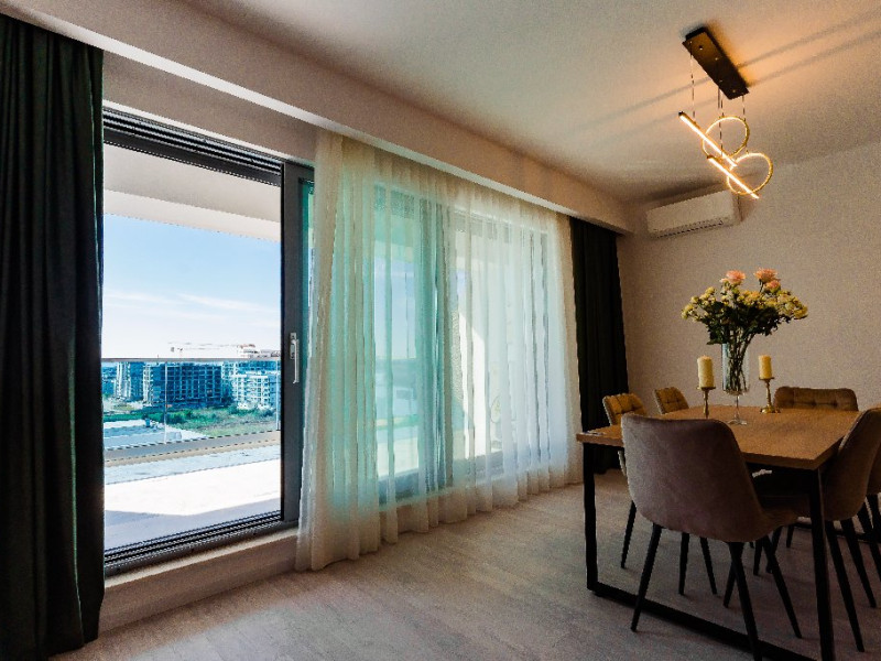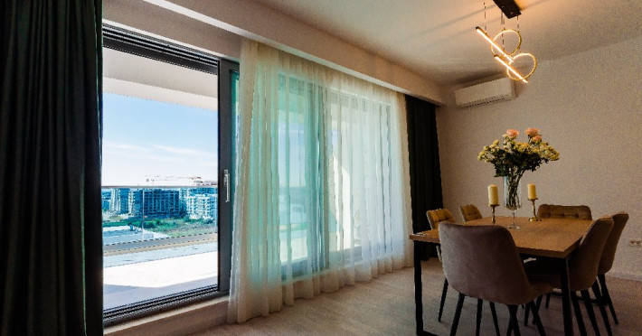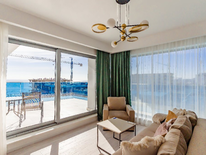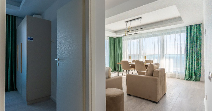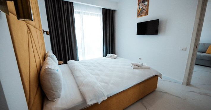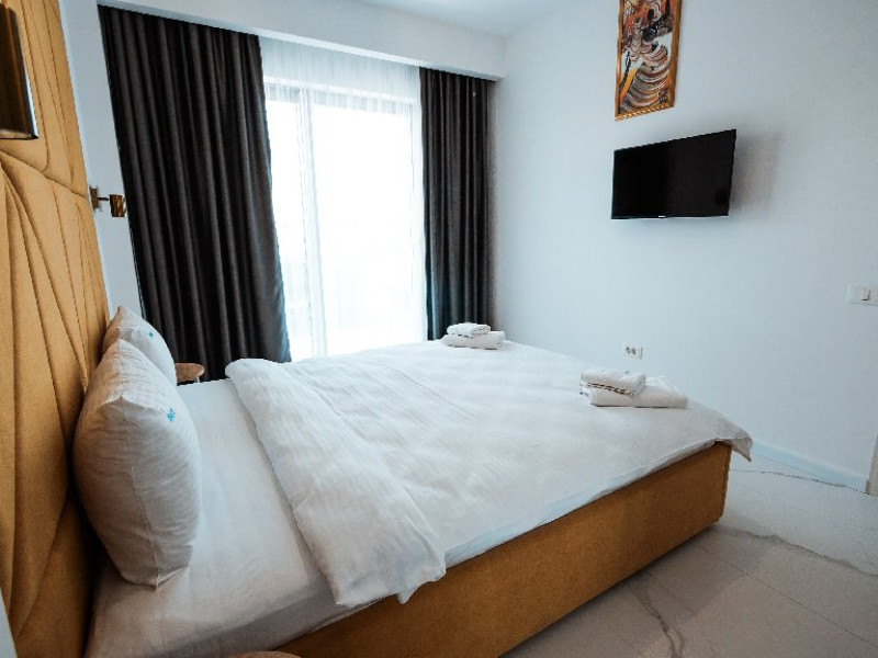 3. - numele apartamentului: Wave 4 lateral (204, 302, 305, 306, 502, 602, 101, 103, 703, S35) - vedere laterala la mare - adresa concreta a apartamentului (localitate, strada, numar): str. Promenada Navodari, nr. 95D, etaj 1, ap. 101 si 103, etaj 2, ap. 204, etaj 3, ap. 302, 305, 306, etaj 5, ap. 502, etaj 6, ap. 602, Navodari, jud. Constanta Apartamentul are 2 camere (dormitor cu pat matrimonial si living cu canapea extensibila). Capacitate maxima: 4 persoane. Dotari si facilitati: bucatarie de tip open space, complet mobilata si utilata (frigider, plita cu inductie, cuptor cu microunde, espressor de cafea cu cafea boabe/ capsule, vesela, tacamuri). Toate apartamentele au aer conditionat, TV LED cu conexiune cablu TV, acces Internet Wi-Fi gratuit, suport uscator de rufe, masa de calcat si fier de calcat, uscator de par, mobilier pe balcoane/ terase.