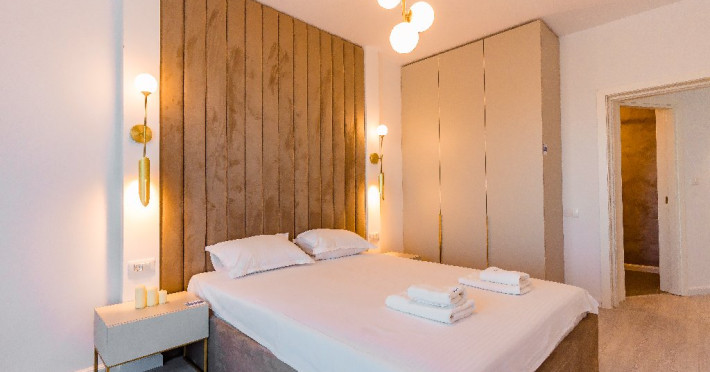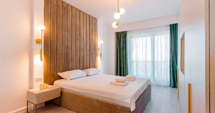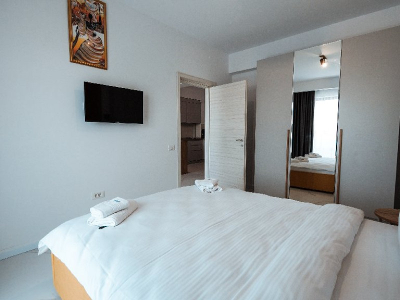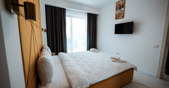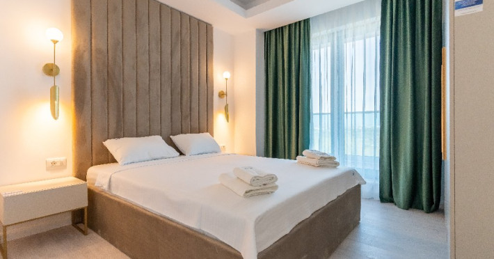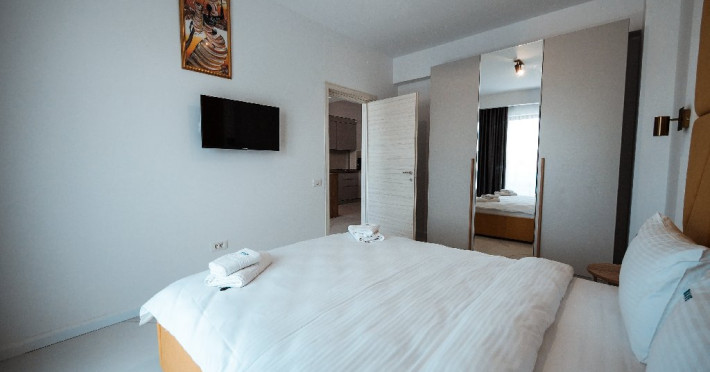1. - numele apartamentului: Wave 4 spate (301, 804) - fara vedere la mare - adresa concreta a apartamentului (localitate, strada, numar): str. Promenada Navodari, nr. 95D, etaj 3, ap. 301, Navodari, jud. Constanta Apartamentul are 2 camere (dormitor cu pat matrimonial si living cu canapea extensibila). Capacitate maxima: 4 persoane. Dotari si facilitati: bucatarie de tip open space, complet mobilata si utilata (frigider, plita cu inductie, cuptor cu microunde, espressor de cafea cu cafea boabe/ capsule, vesela, tacamuri). Toate apartamentele au aer conditionat, TV LED cu conexiune cablu TV, acces Internet Wi-Fi gratuit, suport uscator de rufe, masa de calcat si fier de calcat, uscator de par, mobilier pe balcoane/ terase.