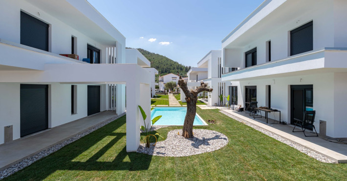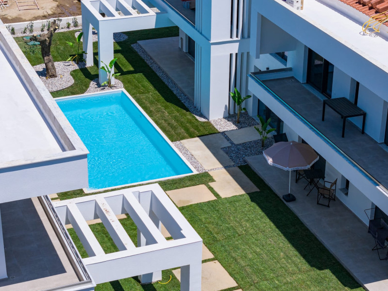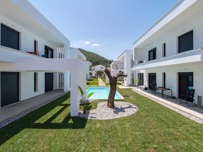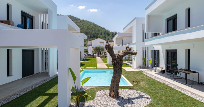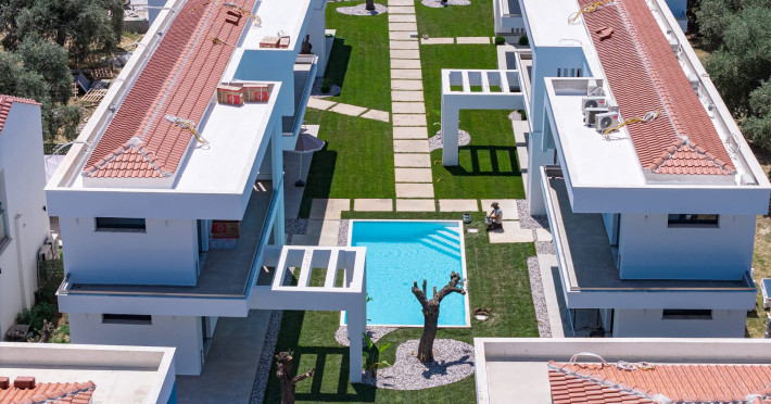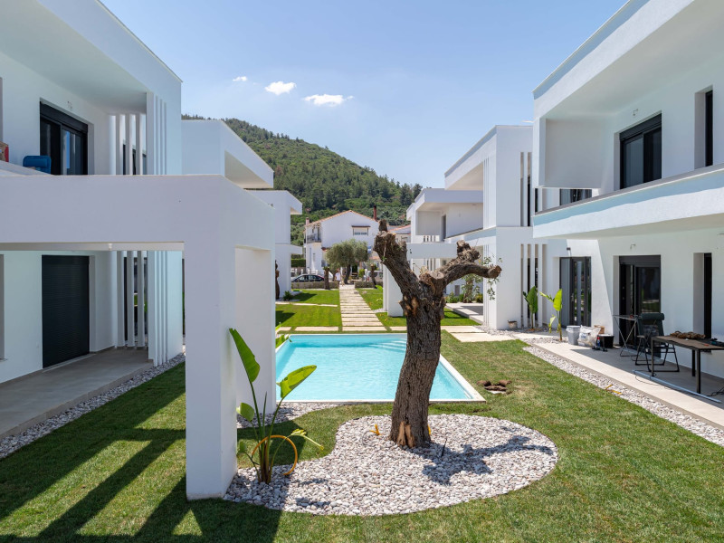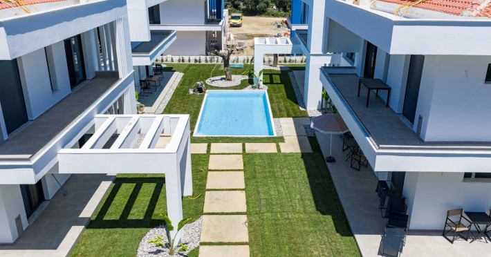 White Deam Residential Complex – Thassos IslandNestled just 150 meters from the shimmering turquoise waters of Thassos, White Dream offers a stylish and tranquil escape in the heart of Skala Rachoniou. This modern residential complex is perfectly situated for those seeking both beachside relaxation and easy access to the area’s shops, traditional tavernas, and vibrant local life.Set across three beautifully landscaped plots, White Dream features a collection of thoughtfully designed one-bedroom apartments, ideal for couples, small families, or solo travelers looking for a peaceful island retreat. The interiors are bright and comfortable, with clean architectural lines that reflect the modern elegance of the complex. Surrounded by lush greenery, the complex centers around a welcoming shared swimming pool, perfect for cooling off, socializing, or simply unwinding in the sun. Whether you're enjoying a morning coffee on your private balcony or heading out to explore the island, White Dream is your base for carefree island living.White Dream – your stylish getaway just steps from the sea.
