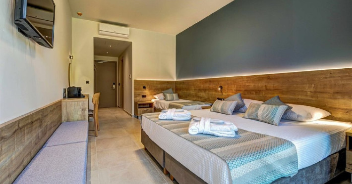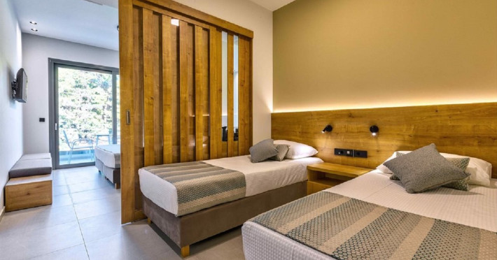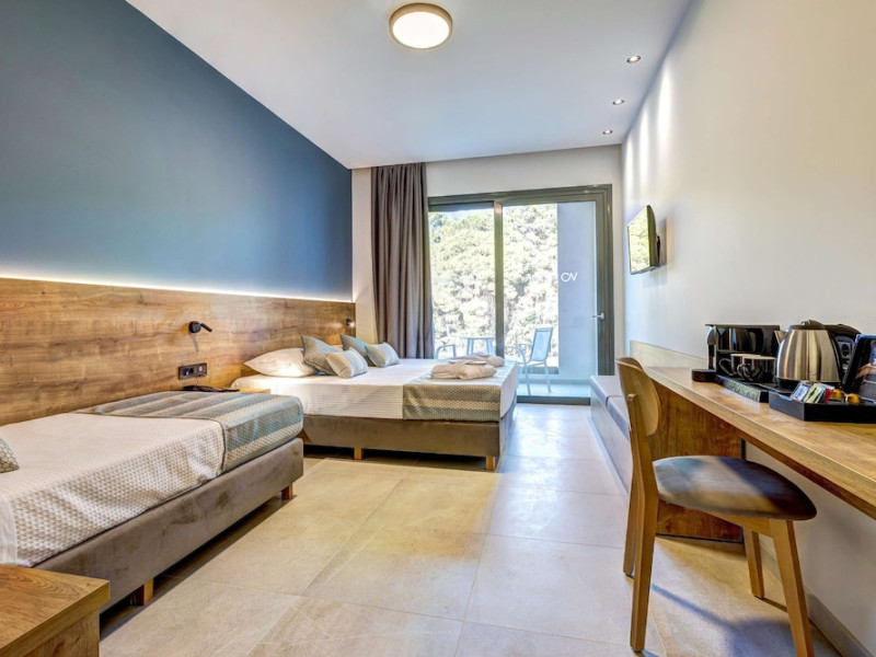 Facilities and services include a 24 hours reception, restaurant, bar, swimming pool, parking, Wi-Fi Internet access and room service (extra charge).Rooms feature air conditioning, Wi-fi Internet access, safe box, TV, fridge, coffee/tea maker, hairdryer, balcony and terrace. Please note that some of the above facilities may be closed due to weather/seasonal conditions.Address: 29100, Lagnas, Zakynthos, Greece.