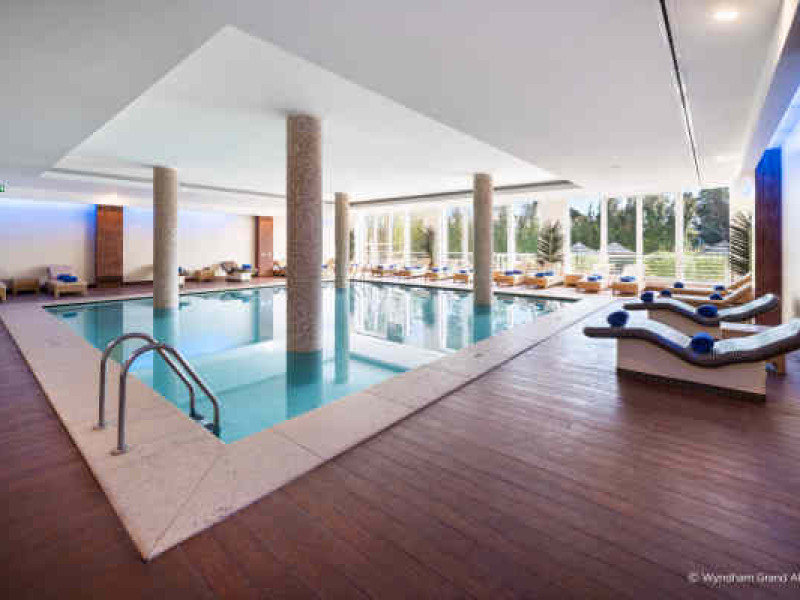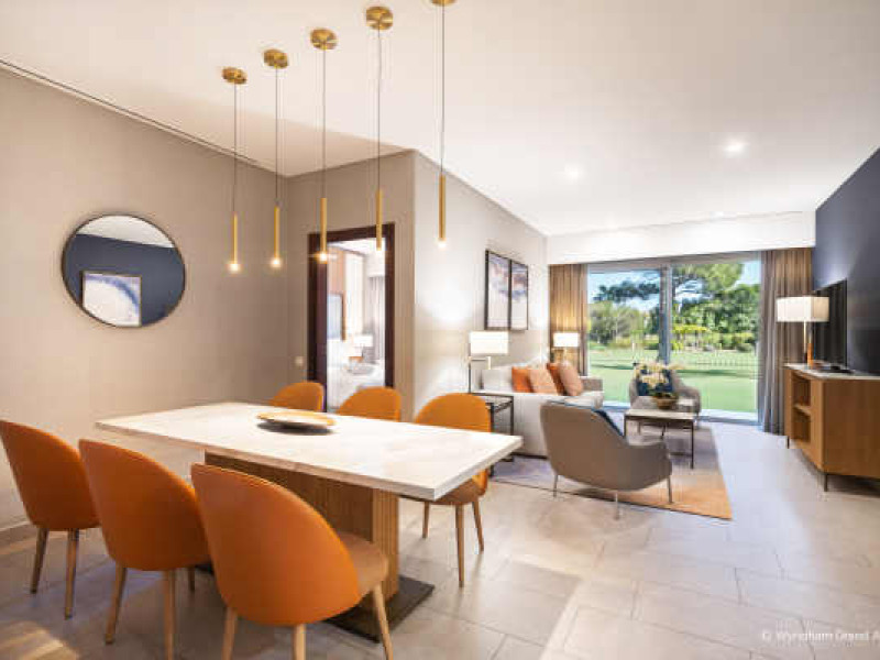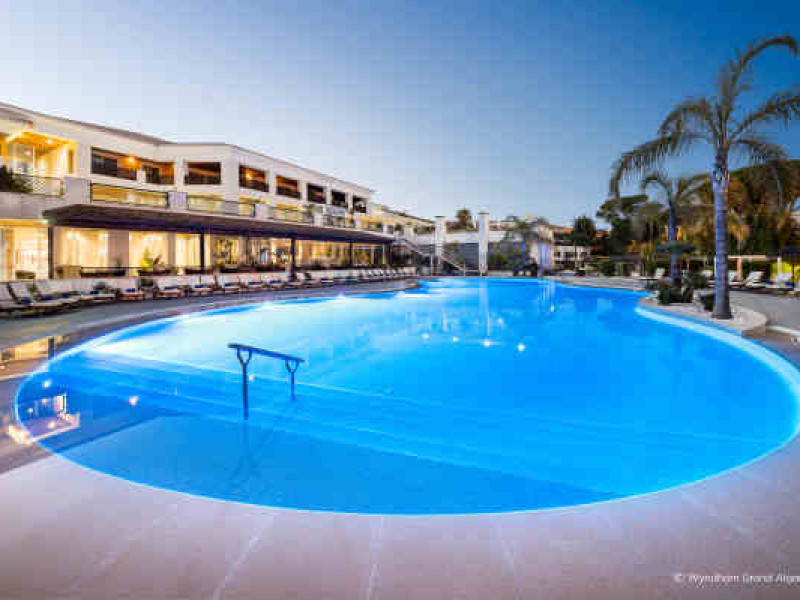An Exceptional Stay in Quinta do LagoAll-suite resort within walking distance of the beach—featuring a spa, dining, event space, and golf course accessEnjoy the ultimate getaway in idyllic southern Portugal at Wyndham Grand Algarve. Nestled within the 2,000 acresof picturesque Ria Formosa Natural Park, and within walking distance of Quinta do Lago Beach, our sophisticatedresort offers incredible amenities and world-class service for a one-of-a-kind stay. Get pampered at our tranquilfull-service spa, stay active in our state-of-the-art gym, and enjoy a relaxing swim in our indoor or outdoor pool.You’ll have easy access to the six celebrated golf courses at Quinta do Lago and Vale do Lobo, The Campus sportscomplex, and Quinta do Lago Lake. Plus, you can indulge in gourmet cuisine and sip refreshing cocktails at our onsiterestaurants and bars.Exquisite event space—including five indoor venues and breathtaking outdoor space—are ideal for businessgatherings, board meetings, weddings, and celebrations of any kind. Retreat to one of our 132 sprawling suites,thoughtfully appointed with free high-speed WiFi and a balcony for savoring spectacular garden or pool views. Afree Kids’ Club and VIP limousine service are just a few of the many extras you’ll find at our contemporary, nonsmokingresort, just 17 kilometers from Faro International Airport (FAO).