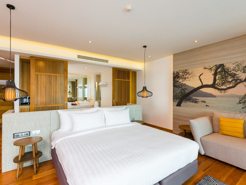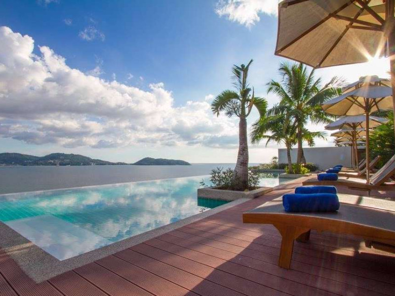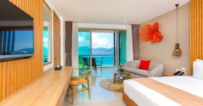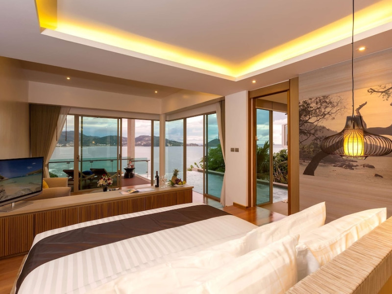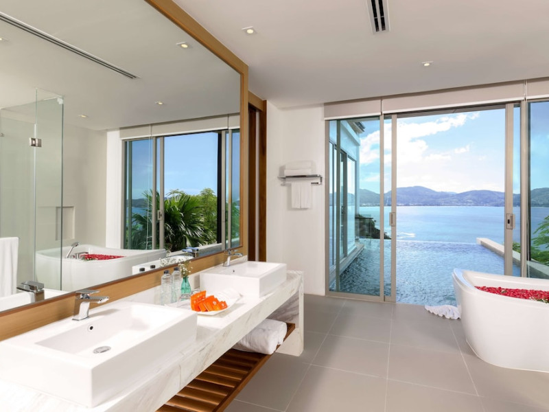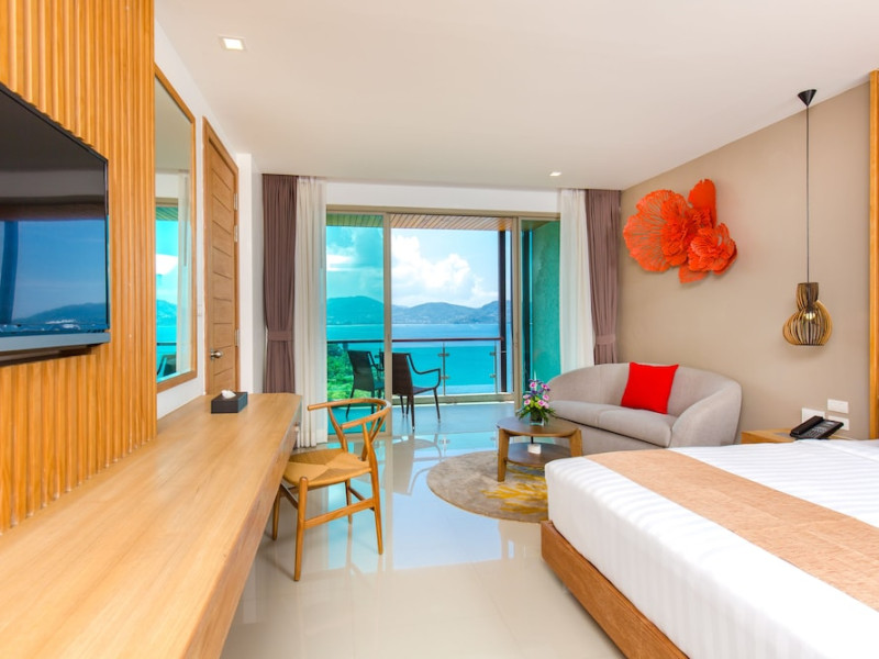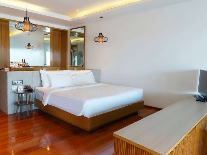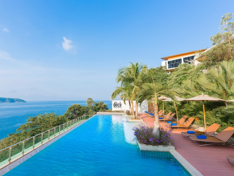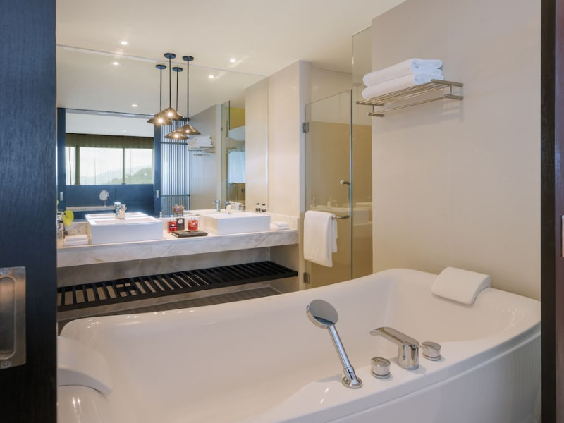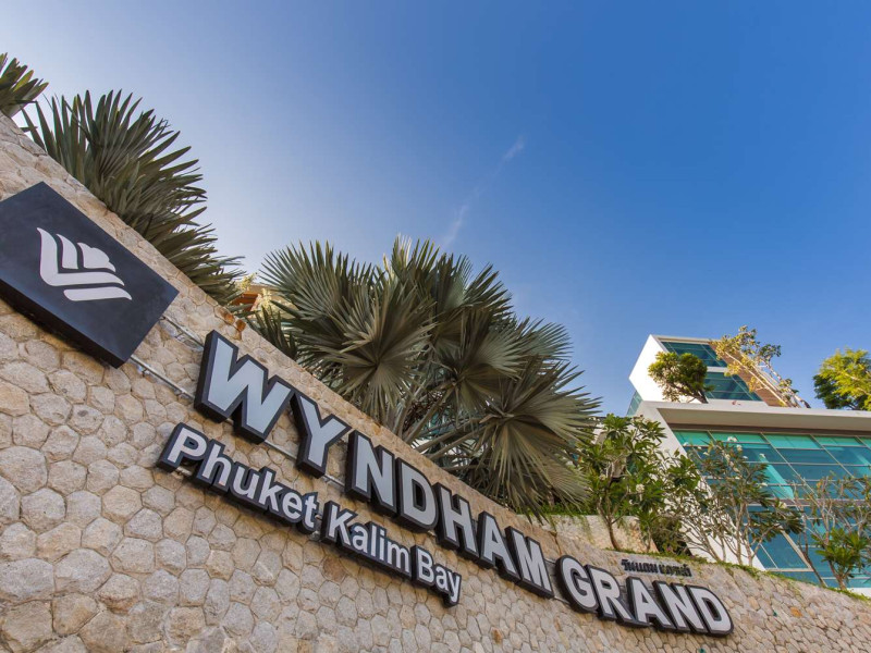 Wyndham Grand Phuket Kalim Bay is a 5-star resort near the bay in Kamala, offering views of the Andaman Sea. It features 194 air-conditioned rooms with minibars, LED TVs, complimentary wireless internet access, and private balconies. Bathrooms include showers, complimentary toiletries, and hair dryers. Guests can relax at the full-service spa with massages and facials, enjoy 2 outdoor swimming pools, a sauna, and a fitness center. Dining options include Latitude 98 restaurant with international cuisine and ocean views, 24-hour room service, 2 bars/lounges, and 2 poolside bars. Buffet breakfasts are available daily for a fee. Additional amenities include concierge services, wedding services, dry cleaning/laundry services, a 24-hour front desk, and multilingual staff. Conference space and a meeting room are available. A shuttle to the nearby beach or shopping center is available for a surcharge, and airport transfers can be arranged for an additional fee. Free self-parking is available onsite. Nearby attractions include Kalim Beach, Patong Beach, and Kamala Beach. Phuket International Airport is approximately 27.5 km away. The Wyndham Grand Phuket Kalim Bay is a hotel.