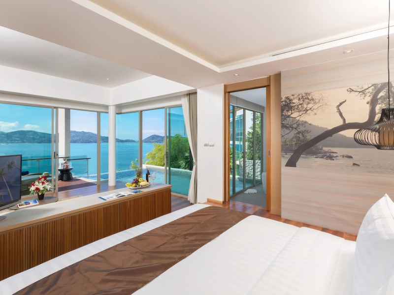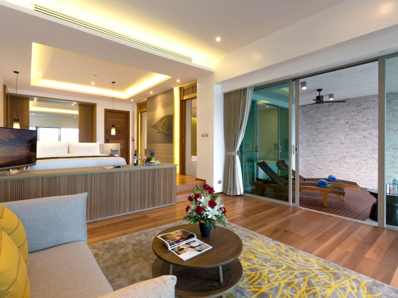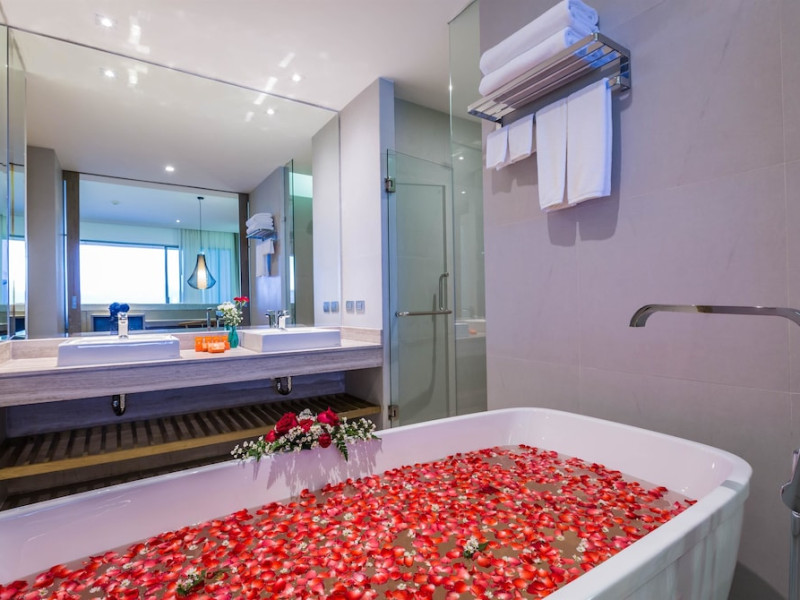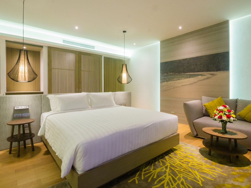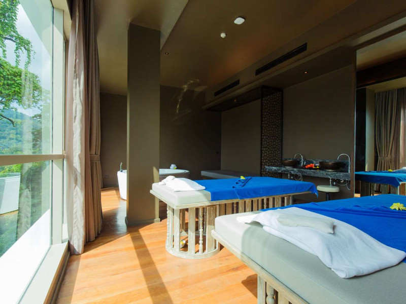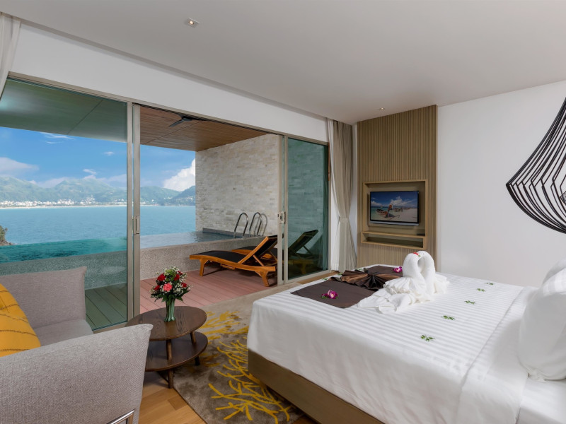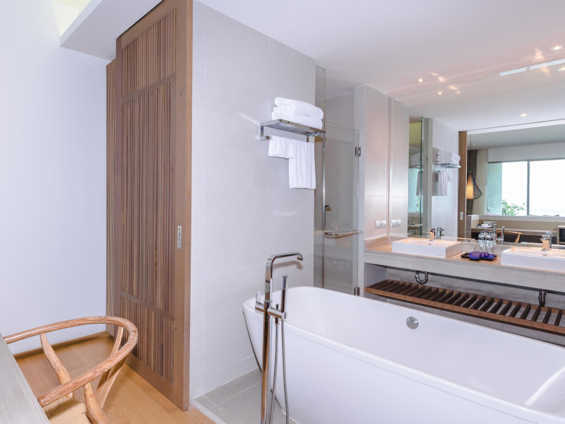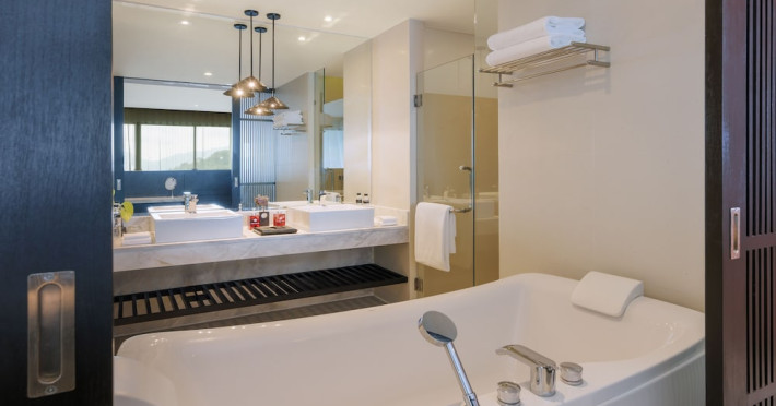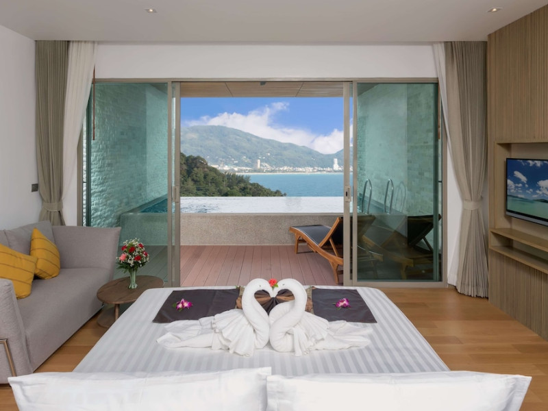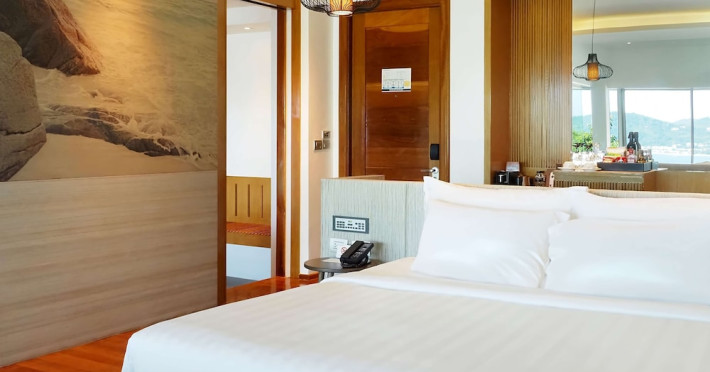 Wyndham Grand Phuket Kalim Bay is a 5-star resort near the bay in Kamala, offering views of the Andaman Sea. It features 194 air-conditioned rooms with minibars, LED TVs, complimentary wireless internet access, and private balconies. Bathrooms include showers, complimentary toiletries, and hair dryers. Guests can relax at the full-service spa with massages and facials, enjoy 2 outdoor swimming pools, a sauna, and a fitness center. Dining options include Latitude 98 restaurant with international cuisine and ocean views, 24-hour room service, 2 bars/lounges, and 2 poolside bars. Buffet breakfasts are available daily for a fee. Additional amenities include concierge services, wedding services, dry cleaning/laundry services, a 24-hour front desk, and multilingual staff. Conference space and a meeting room are available. A shuttle to the nearby beach or shopping center is available for a surcharge, and airport transfers can be arranged for an additional fee. Free self-parking is available onsite. Nearby attractions include Kalim Beach, Patong Beach, and Kamala Beach. Phuket International Airport is approximately 27.5 km away. The Wyndham Grand Phuket Kalim Bay is a hotel.