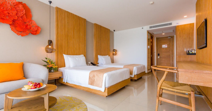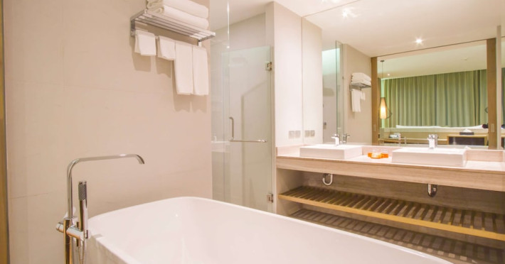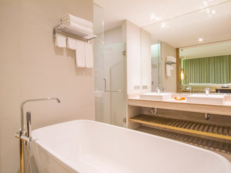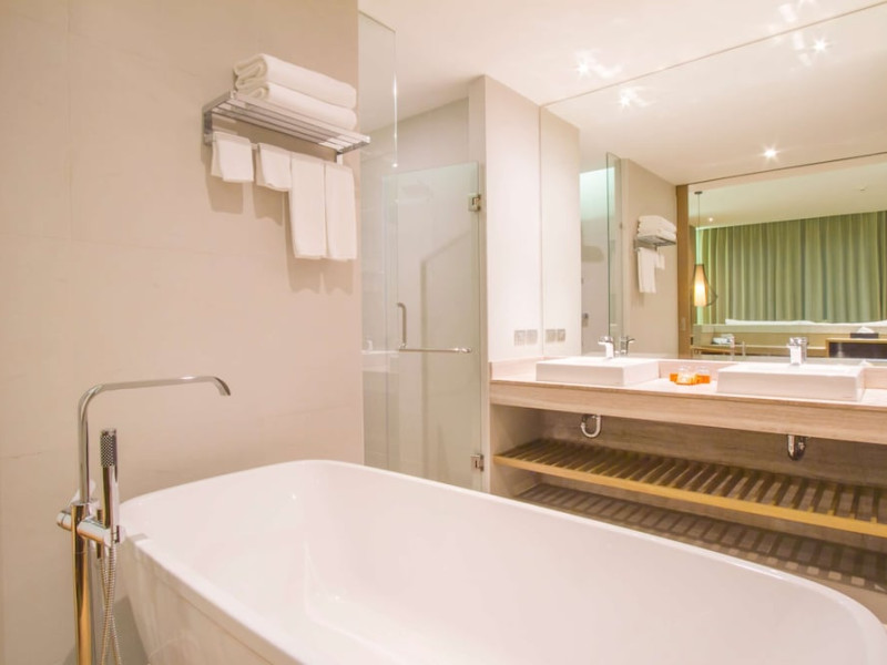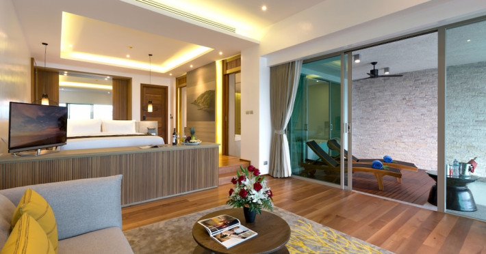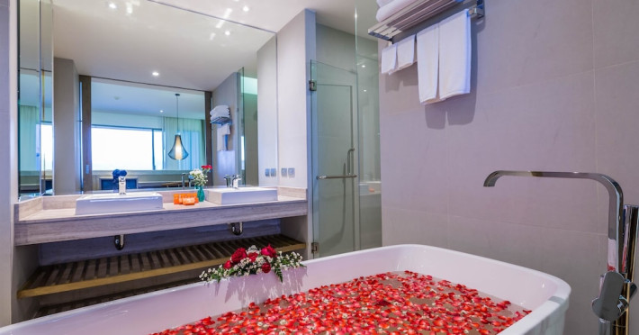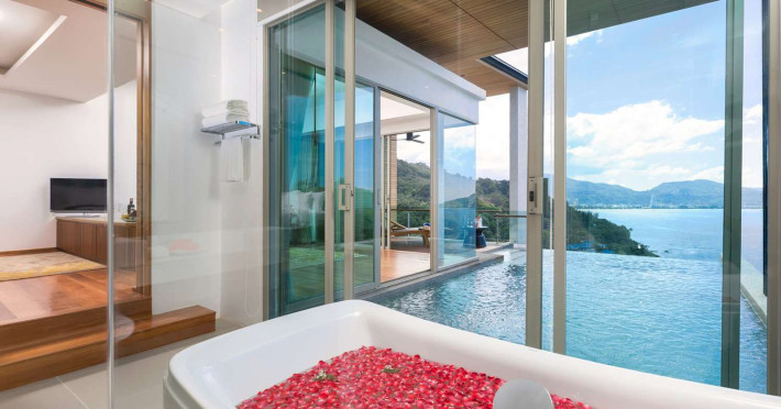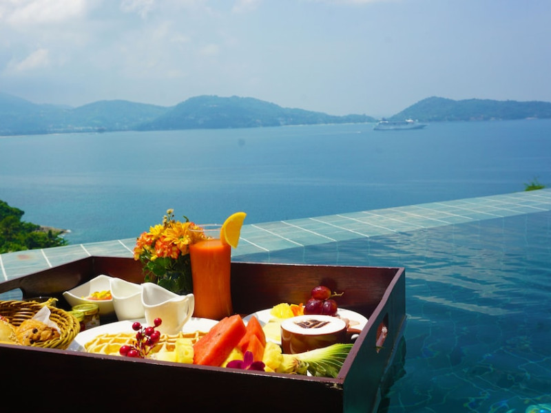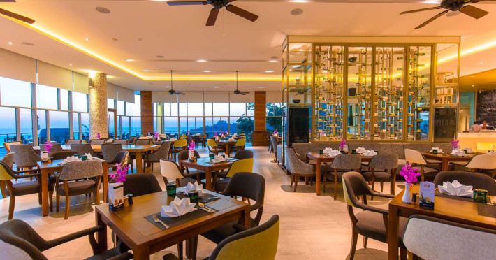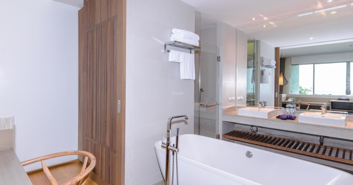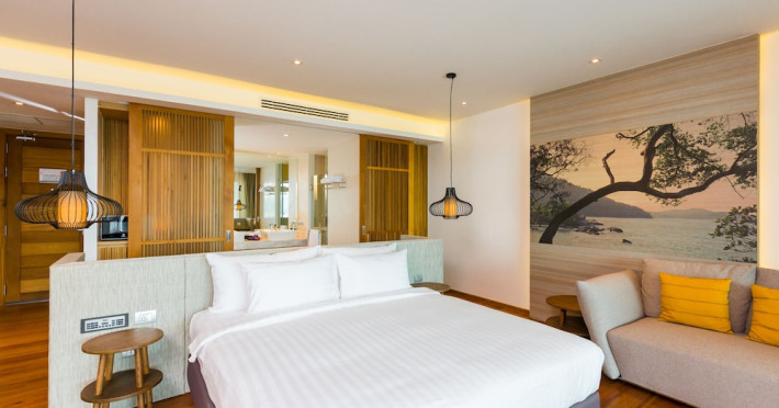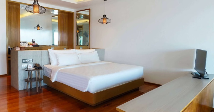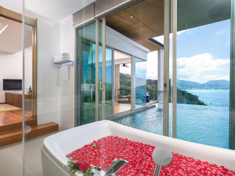 Wyndham Grand Phuket Kalim Bay is a 5-star resort near the bay in Kamala, offering views of the Andaman Sea. It features 194 air-conditioned rooms with minibars, LED TVs, complimentary wireless internet access, and private balconies. Bathrooms include showers, complimentary toiletries, and hair dryers. Guests can relax at the full-service spa with massages and facials, enjoy 2 outdoor swimming pools, a sauna, and a fitness center. Dining options include Latitude 98 restaurant with international cuisine and ocean views, 24-hour room service, 2 bars/lounges, and 2 poolside bars. Buffet breakfasts are available daily for a fee. Additional amenities include concierge services, wedding services, dry cleaning/laundry services, a 24-hour front desk, and multilingual staff. Conference space and a meeting room are available. A shuttle to the nearby beach or shopping center is available for a surcharge, and airport transfers can be arranged for an additional fee. Free self-parking is available onsite. Nearby attractions include Kalim Beach, Patong Beach, and Kamala Beach. Phuket International Airport is approximately 27.5 km away. The Wyndham Grand Phuket Kalim Bay is a hotel.