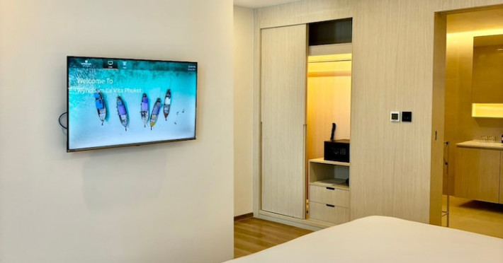 Located in Rawai, Wyndham La Vita Rawai Phuket is a family-friendly hotel offering comfortable accommodations and a range of amenities. Guests can enjoy international cuisine at one of the 2 restaurants, relax with drinks at the poolside bar or 3 bars/lounges, and take advantage of 24-hour room service. The hotel features an outdoor pool, a fitness center, a garden, a shared lounge, a sun terrace, and a spa offering massages, body treatments, and facials. Complimentary wireless internet access, concierge services, a kids' club, and a complimentary beach shuttle are available. The hotel also offers a business center, dry cleaning/laundry services, and a 24-hour front desk. Free self-parking is available onsite. The air-conditioned rooms feature minibars, Smart TVs, pillowtop beds with premium bedding, and private bathrooms with complimentary toiletries and bidets. Buffet breakfasts are available daily for a fee.