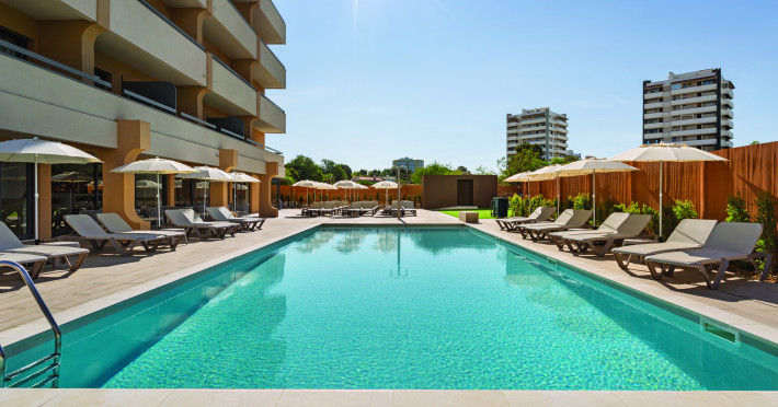 About 200 m from a public sandy beach lies the hotel Wyndham Residences Alvor Beach. The nearest restaurants and bars can be found within 1 km. The nearest shops you can reach within around 2 km, a supermarket is around 1 km away. There is a 24h shuttle service between the hotel and the airport (for a fee) 24h a day. The beach is awarded a blue flag. Here, there are cushions for a fee as well as beach towels available. Near the beach there is a promenade where you can go for a stroll. The air-conditioned, GPS-verified hotel has a 24h reception (check-in is possible around the clock), a lobby bar, Wi-Fi, internet access, a lift, showers and changing rooms, a first aid kit, parking spaces (limited) as well as a TV lounge with satellite TV. In the outdoor area of the property you will find a seasonally heated pool (open all year), where sun loungers, sun umbrellas and pool towels are available for free. For children there is also a children's pool with a non-swimming area. You can store your valuables in the safe, and your luggage in the hotel`s storage room. In addition, the hotel Wyndham Residences Alvor Beach is video-monitored 24h a day. For very young guests, kid`s chairs can be provided. There is also a laundry service available at an additional cost to customers as well as an ironing service. For your comfort there is a concierge service. The energy supply is 220, 230 and 240 Volts. If you want to explore the holiday region, you can use the car and motorbike rental service close to the hotel (extra fee). At the hotel reception, tickets are offered for excursions in the area. For guests on their honeymoon, the hotel has special offers such as champagne, sparkling wine, a basket of fruit or flowers in the room. In your hotel, a lot of focus is placed on sustainability. This includes the hotel`s own recycling bins and the provision of soap, shampoo and lotion dispensers. For a club card may incur extra charges at the hotel. Due to its barrier-free facilities , such as an automatic hotel door, a hotel door that can be opened manually, barrier-free entrances, wheelchair accessible rooms, a wheelchair accessible lift, a handrail in the elevator and wheelchair-accessible bathrooms, the hotel is also suitable for wheelchair users. Catering Breakfast is offered continental or from the buffet (extras on request). Dinner is served as a set meal. For the meals, there are a restaurant (gluten-free dishes) and a bar as well as the pool bar. The drinks menu of the hotel includes water, soft drinks, coffee and tea, beer and wine. Distances