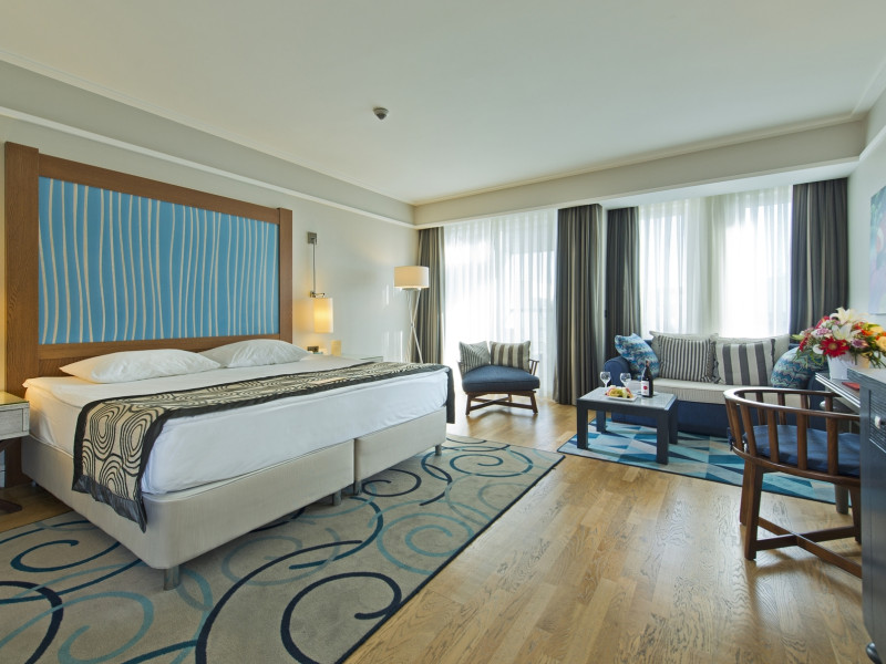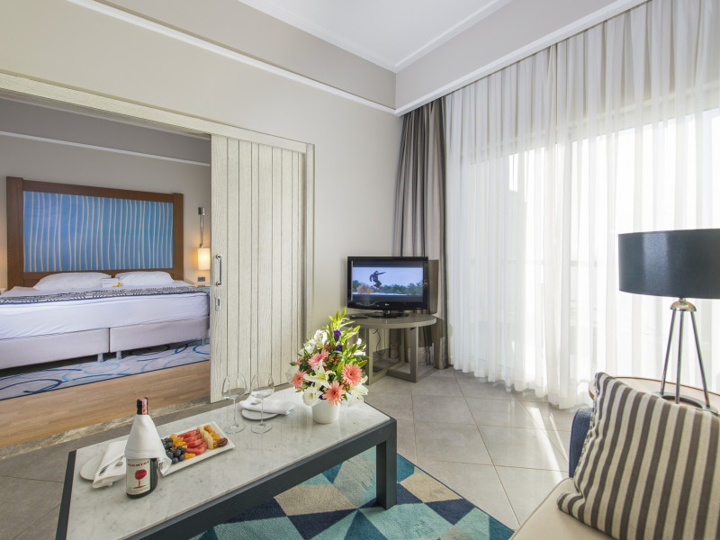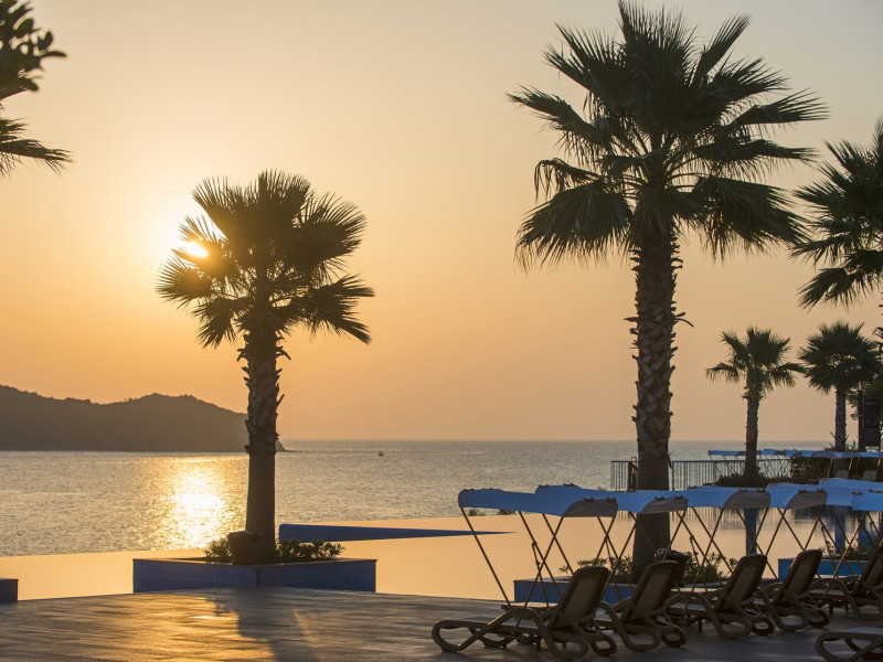 The aparthotel Xanadu Island is located in the vicinity of a private sandy/pebble/stone beach. The nearest bars and restaurants can be found at a distance of around 7 km. The city centre is around 26 km away. The beach is patrolled by a lifeguard andThe aparthotel Xanadu Island is located in the vicinity of a private sandy/pebble/stone beach. The nearest bars and restaurants can be found at a distance of around 7 km. The city centre is around 26 km away. The beach is patrolled by a lifeguard and awarded a blue flag. Here, there are sun loungers, cushions, sun umbrellas and beach towels available. Cold drinks are served at the bar on the beach. There is also a promenade here where you can go for a stroll. The seasonally air-conditioned, GPS-verified halal hotel is equipped with a 24h reception (check-in is possible around the clock), a lobby bar, Wi-Fi, internet access, 8 lifts, a supermarket and other shops, a boutique, a hairdresser, a jacuzzi, showers and changing rooms, parking spaces (limited) as well as a TV lounge. In the outdoor area you will find a garden as well as a seasonally heated and supervised pool that is open seasonally (open all year), where sun loungers, sun umbrellas and pool towels are available for free. For children there is also an integrated childrens pool. Furthermore, outside you can find a terrace. Inside the hotel you can use a heated indoor pool. You can store your valuables in the safe, and your luggage in the hotels storage room. For the young hotel guests there is a playground. For very young guests, kids chairs, highchairs and cots can also be provided. For the smallest children prams can be rented in the hotel. There is also a laundry and ironing service. Ironing equipment can also be borrowed at the hotel. For your comfort, in addition to the concierge service the hotel page will ensure you are looked after. If necessary, you can contact the medical centre at any time (for a fee). Guests at the accommodation can get a wake-up call from the hotel personnel. The energy supply is 220, 110, 120 and 230 Volts. For conventions and other business meetings, the hotel offers a business centre as well as a (auditorium-style) conference area with a reception, lectern, tables, a video projector, printer, scanner, overhead projector as well as internet access. A photographer can also be ordered from the hotel for business events. If you want to explore the holiday region, you can use the car rental service close to the hotel (extra fee). For guests on their honeymoon, the hotel has special offers such as a romantically-decorated room, personalised rooms/articles, rooms with a particularly romantic location and view, romantic dishes in the restaurant, champagne, sparkling wine, a basket of fruit or flowers in the room. In your hotel, a lot of focus is placed on sustainability. This includes waste segregation in the rooms, the hotels own recycling bins, the provision of soap and shampoo dispensers, organic food and ecological meals and environmentally-friendly cleaning. That is why the hotel Xanadu Island was also awarded a sustainability certificate. The hotel requires that all guests pay a deposit upon arrival. American Express, Euro/Master Card and Visa are accepted as means of payment. Due to its barrier-free facilities , such as an automatic hotel door, separate, barrier-free entrances, wheelchair accessible rooms, a wheelchair accessible lift, a handrail in the elevator and wheelchair-accessible bathrooms, the hotel is also suitable for wheelchair users. Catering As catering services the hotel offers all-inclusive, full board and full board plus. Breakfast is offered continental, from the buffet or as brunch (extras on request). Lunch and dinner are also served as a set meal, à la carte or from the buffet with starters, salads and desserts (extras on request and at extra cost). All Inclusive Light includes coffee amp; tea, cake amp; pastries, beer, wine as well as local alcoholic beverages. When booking all-inclusive, one welcome drink and one meal in the à la carte restaurant are included. As part of the all-inclusive service, water (24h), softdrinks (24h), coffee and tea (24h), beer (24h), wine (24h) as well as local and international alcoholic beverages (24h) are available at no extra charge. For the meals, there are a buffet restaurant with terrace (Italian, Mediterranean, calorie-reduced, gluten-free and vegetarian dishes) and several bars, the cafeteria, a 24h snackbar as well as the pool bar. The drinks menu of the hotel includes water, soft drinks, coffee and tea, beer and wine. A picnic bench can be used by guests for self-catering. Appropriate clothing is required for lunch and dinner. You can take part in the cooking classes offered by the hotel during your stay. Distances Airport: approximately at 60 km Cinema: approximately at 7 km Nearest bank: approximately at 7 km Business center: approximately at 7 km Sports amp; Leisure To keep your fitness up on holiday, there is a gym for guests to use. In the surrounding you can also take advantage of a range of water sports, including bananaboat riding and jet skiing. During your holiday you can also take part in aerobics courses, in Zumba courses and in yoga courses. Furthermore, various water sports such as windsurfing are offered in the area. A sauna and a wellness shower await you in the spa. The hotel also offers massages (extra fee) and beauty treatments. Let yourself be pampered in the Hamam and find peace and quiet in the relaxation room. Spend some healthy and relaxing hours with hot stone therapy, hydrotherapy as well as oxygen therapy. Infants can be looked after in the hotels own baby club. For older children the care takes place in the childrens club. There is a babysitting service in the hotel (extra fee) . The mini disco also offers age-appropriate entertainment for young hotel guests. Furthermore there is a youth club. In terms of adult entertainment, evening shows and live music are pres