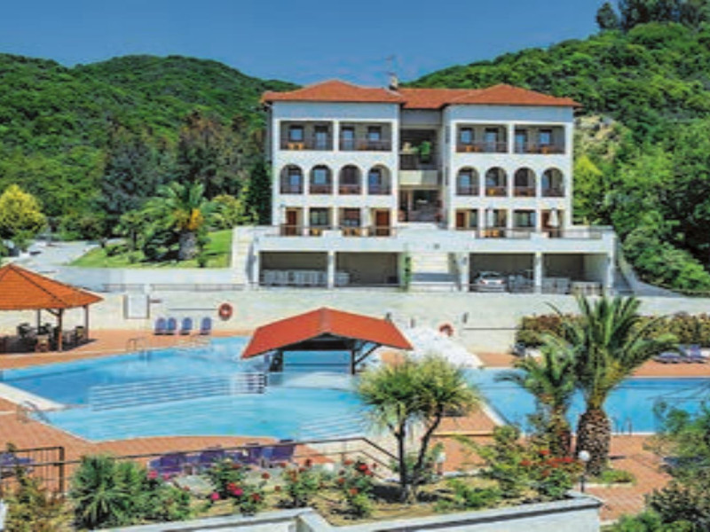 Xenios Theoxenia Hotel 4 Stars is located in one of the most beautiful places of an important cultural hub of Orthodoxy . The hotel respects the monastic architecture, was built like a sister hotel of the Metropolitan Hotel in Thessaloniki. The hotel complex Xenios Theoxenia is situated in three kilometres from Ouranoupoli, Halkidiki the peninsula of Mount Athos, near the Holy Mountain in front of the blue Aegean.