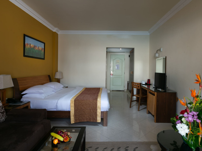 The accommodation Xperience St. George Homestay**** is located in the vicinity of a private beach. There is a shuttle between the hotel and the airport (for a fee). The beach is patrolled by a lifeguard. Here, there are sun loungers, sun umbrellas anThe accommodation Xperience St. George Homestay**** is located in the vicinity of a private beach. There is a shuttle between the hotel and the airport (for a fee). The beach is patrolled by a lifeguard. Here, there are sun loungers, sun umbrellas and beach towels available. Cold drinks are served at the bar on the beach. To reach the beach a shuttle is provided. The air-conditioned hotel is equipped with a 24h reception (check-in is possible around the clock), a lobby bar, Wi-Fi, internet access, a supermarket, a boutique, cash machine, a hairdresser, a jacuzzi, a first aid kit as well as parking spaces. In the outdoor area you will find a garden as well as a seasonally heated pool (open all year), where pool towels are available for free. There is also a separate childrens pool. Furthermore, you can relax outdoors on the sun terrace. You can store your valuables in the safe, and your luggage in the hotels storage room. For your entertainment, the hotel offers a library/reading room and a theatre. For very young guests, kids chairs can be provided. There is also a laundry service available at an additional cost to customers. Ironing equipment can be borrowed at the hotel. For your comfort the hotel page will ensure you are looked after. If necessary, you can contact the medical centre at any time (for a fee). The energy supply is 220 Volts. The hotel requires that all guests pay a deposit upon arrival. Due to its barrier-free facilities , such as barrier-free entrances and wheelchair accessible rooms, the hotel is also suitable for wheelchair users. Catering As catering services the hotel offers all-inclusive. Breakfast is offered from the buffet. Dinner is also served as a buffet. For the meals, there are a restaurant (Italian dishes) and several bars as well as the pool bar. Distances Airport: approximately at 18 km Sports amp; Leisure To keep your fitness up on holiday, there is a gym for guests to use. In the surrounding you can also take advantage of a range of water sports, including banana and speedboat riding and water aerobics. During your holiday you can also take part in aerobics and Zumba courses (extra fees). There is also the option to play billiards. With beach volleyball (extra fee), volleyball (extra fee) and darts various other sports offer a lot of variety on holiday. For cyclists there is a bicycle rental (extra fee). Furthermore, various water sports such as diving are offered in the area. A sauna (extra fee) awaits you for relaxation. The hotel also offers massages (extra fee) and beauty treatments (extra fee). Infants can be looked after in the hotels own baby club. Junior hotel guests can also let off steam in the mini disco. In terms of adult entertainment, evening shows and live music are presented. Additional information The accommodation has a total of 262 rooms. Of these, 3 rooms have disabled access.