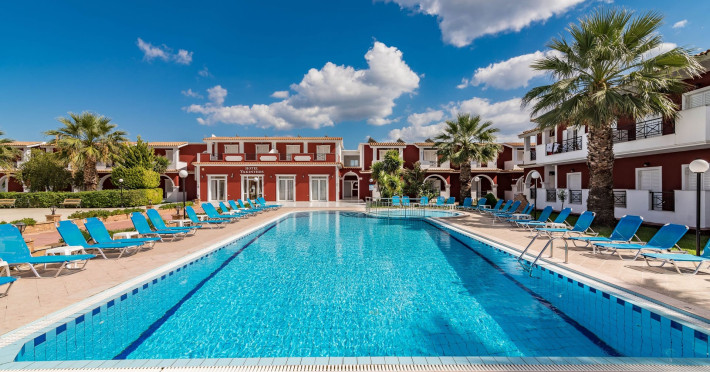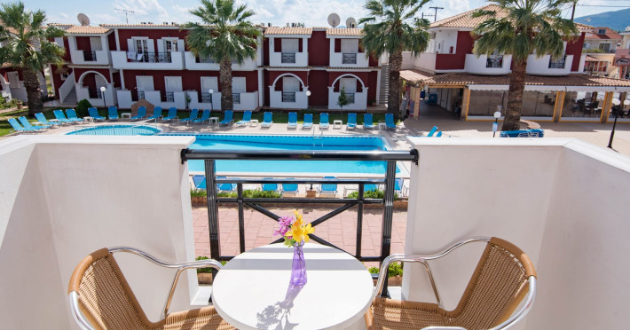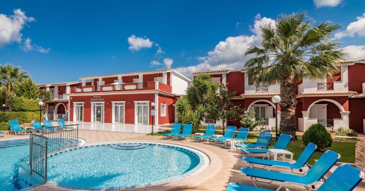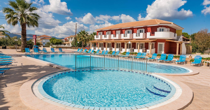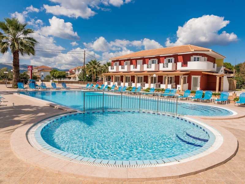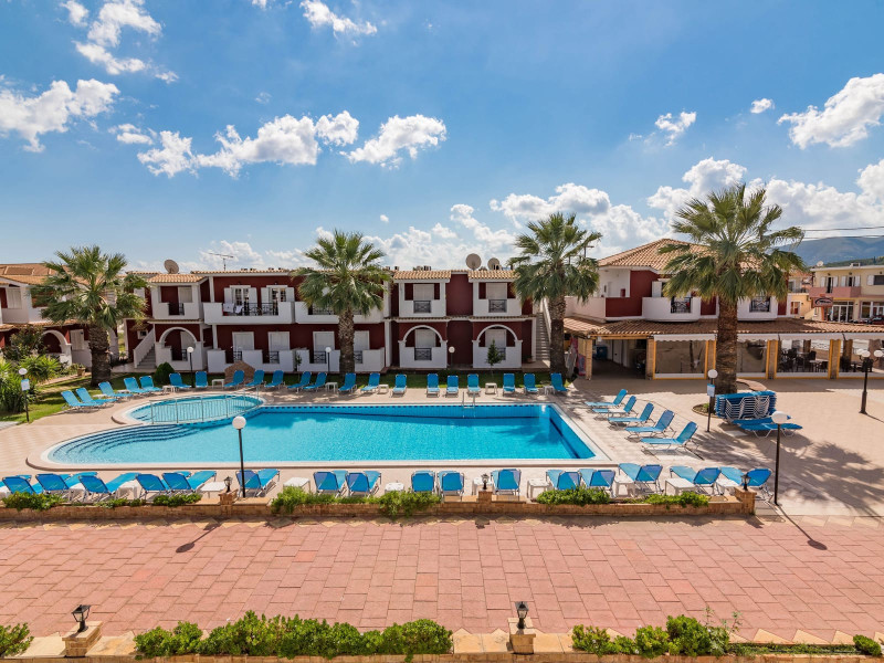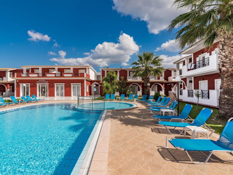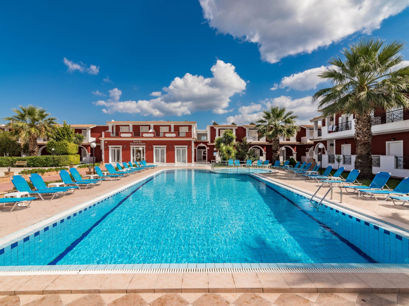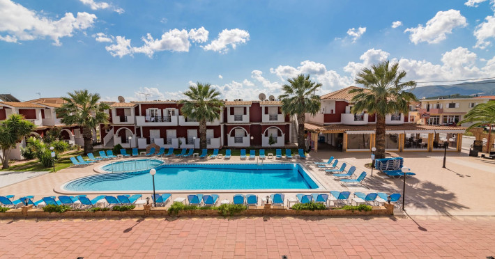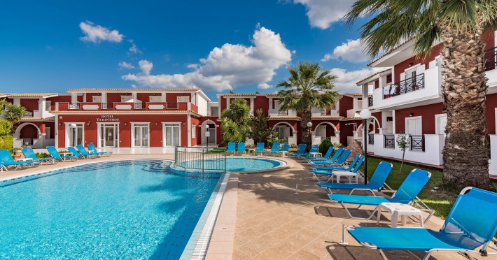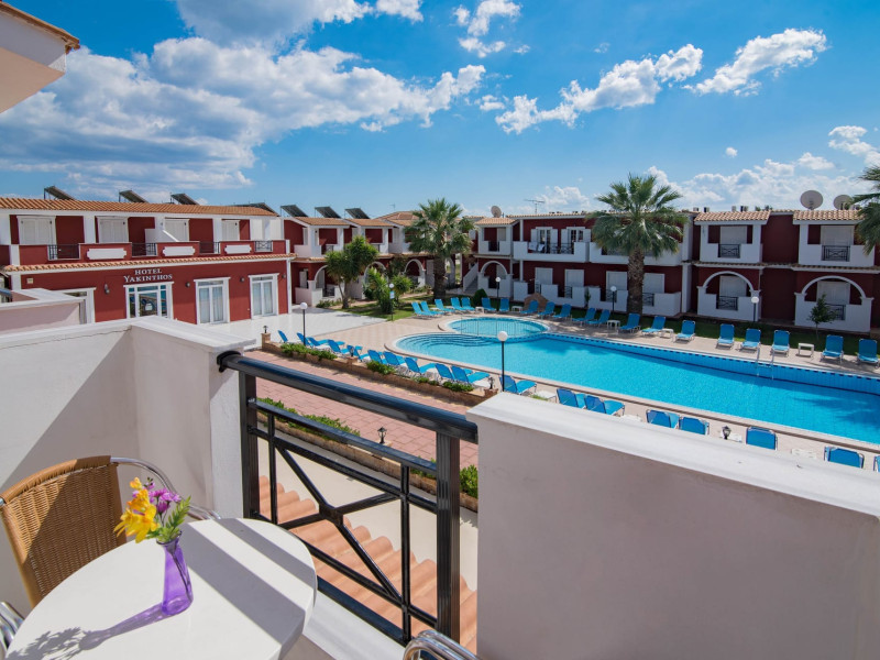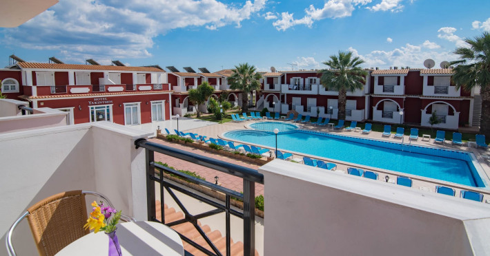 If you are looking for a beautiful destination with main features the comfortable and pleasant stay, then Yakinthos Hotel is the ideal choice for you. Located on the outskirts of the popular resort of Laganas in a beautiful and quiet environment. The pool bar is very close, thus serving its customers during the day serving refreshing refreshments, drinks, snacks and food. Its unique decoration with the large size swimming pool in a bright, open space, surrounded by gardens and many sunbeds as well as the facilities it offers to its guests make it the sure choice for your summer holidays.