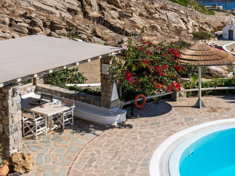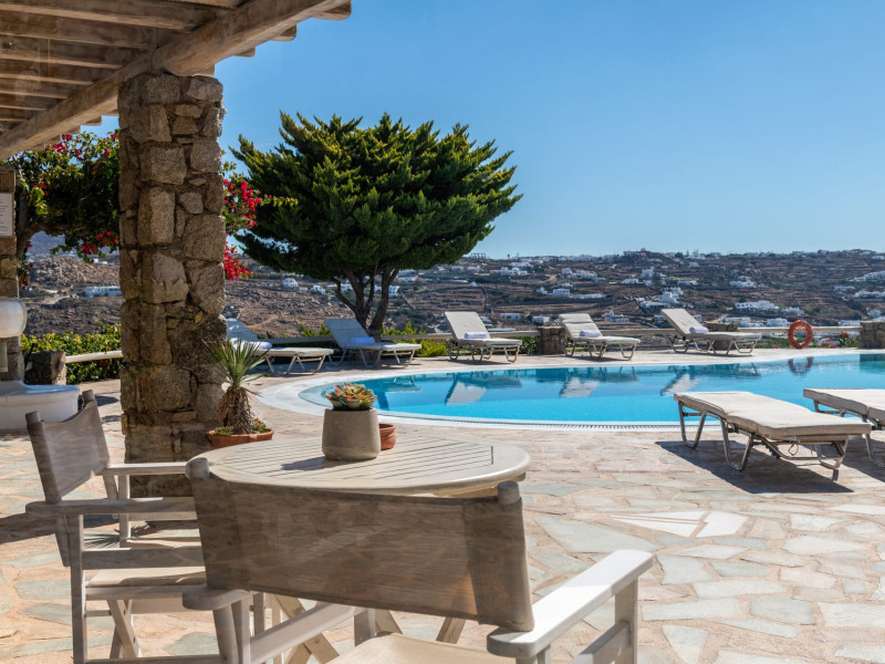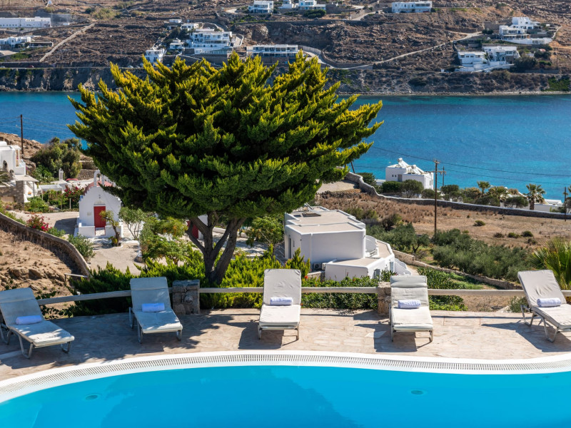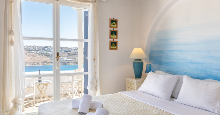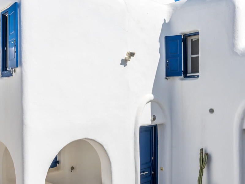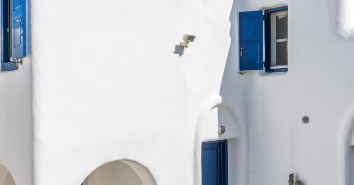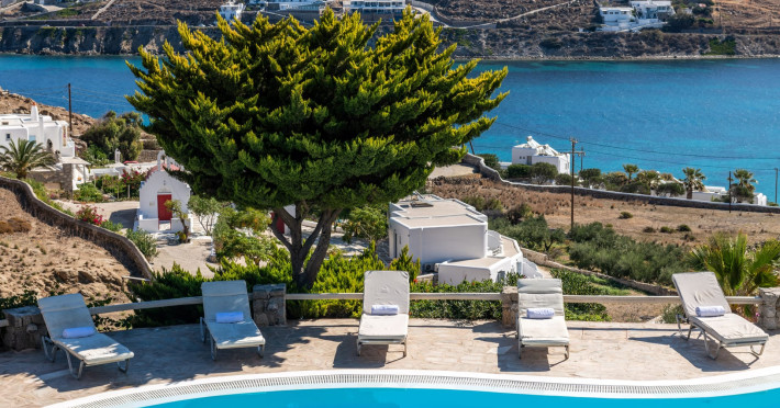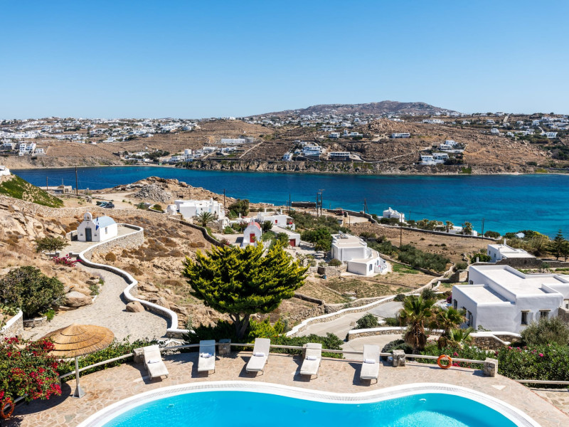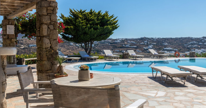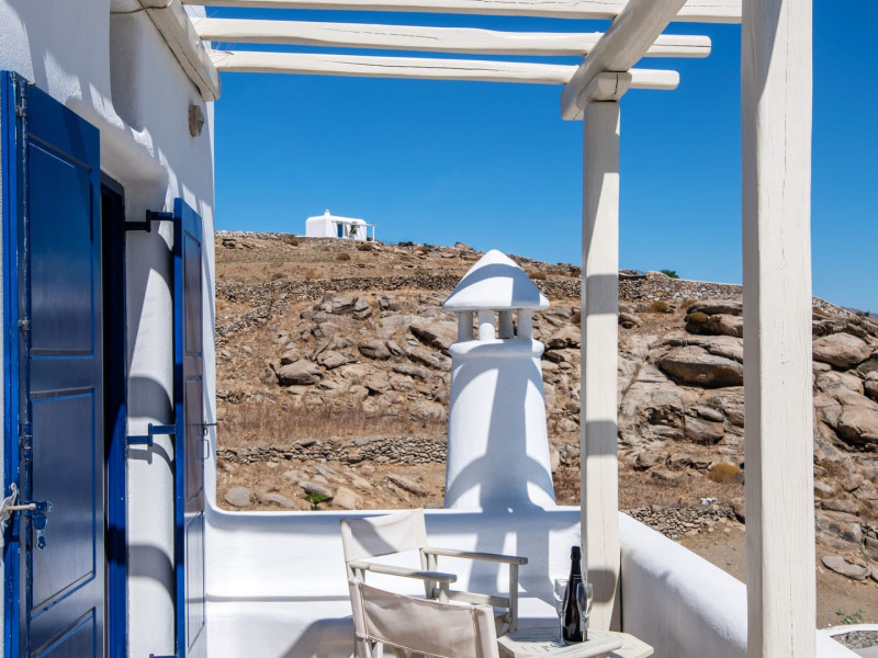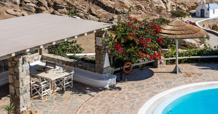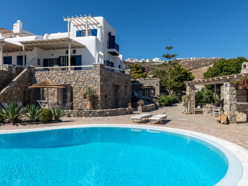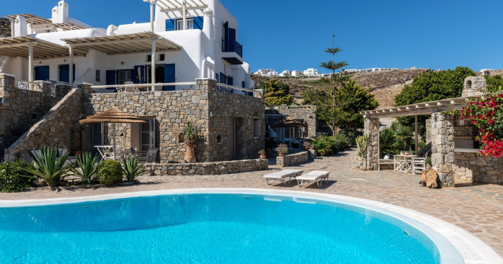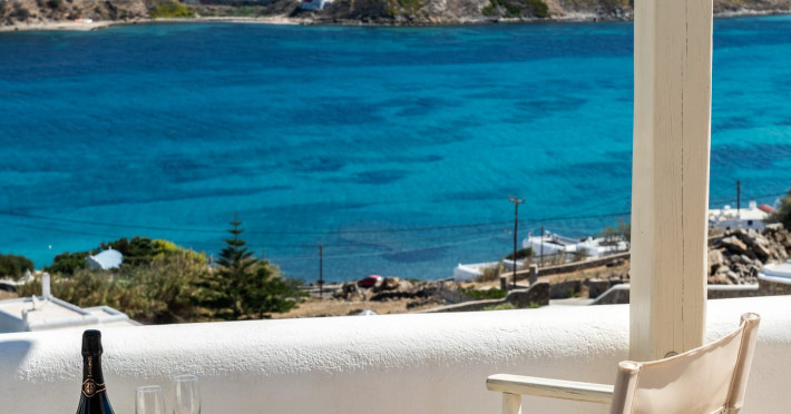 Yalos Mykonos private apartements is a complex of traditional Myconian furnished apartements including sea views and a shared swiming pool Located on Pouli hill next to the famous beach of Ornos