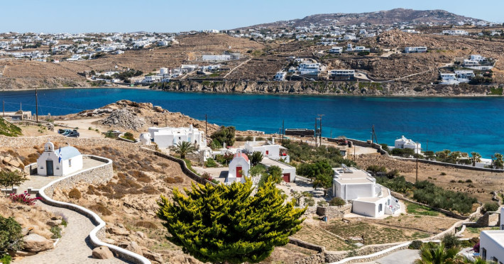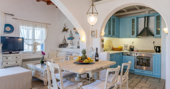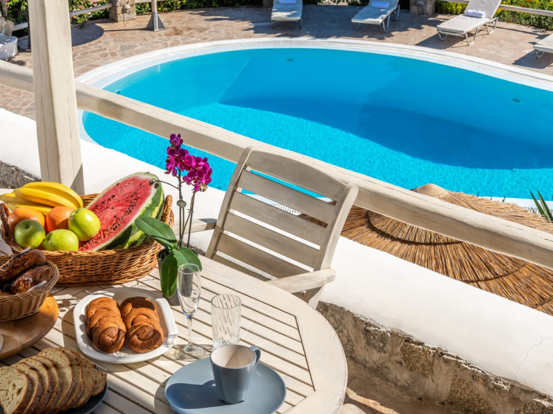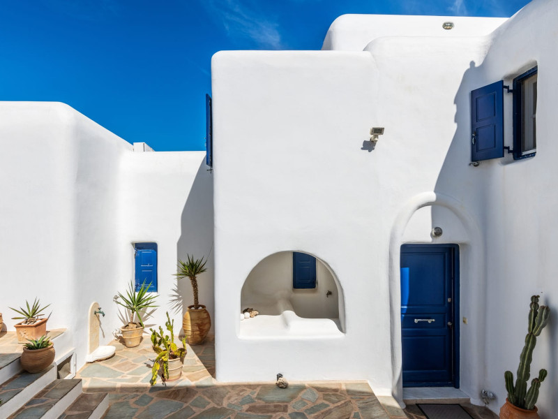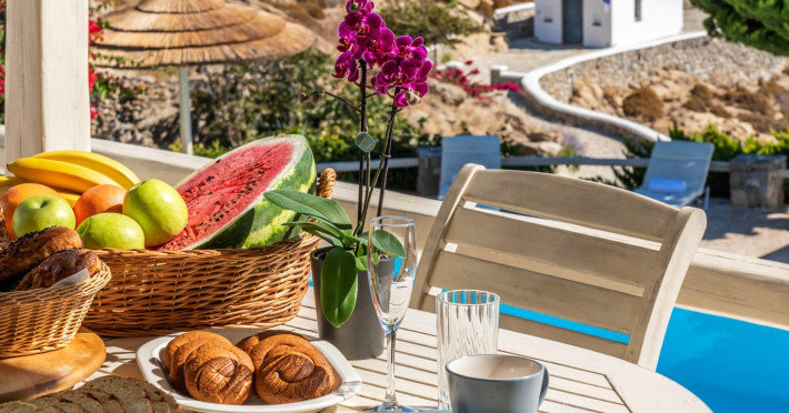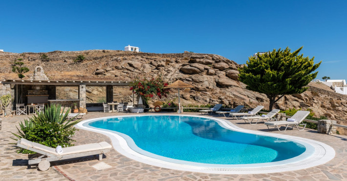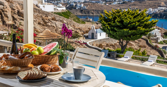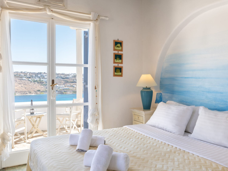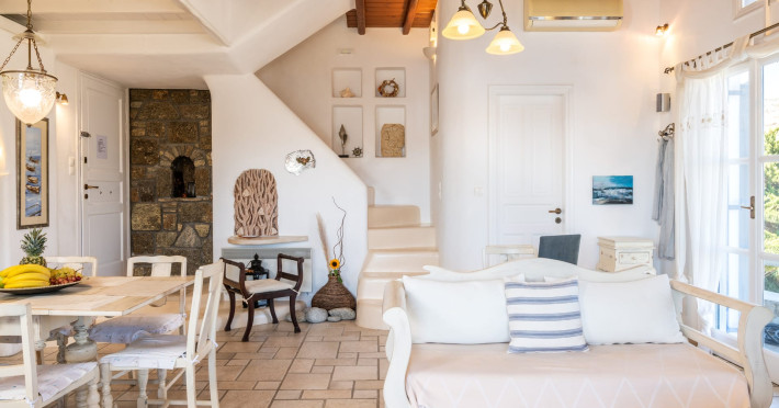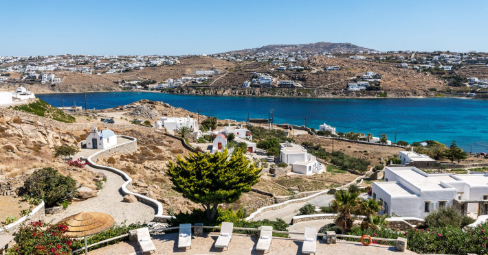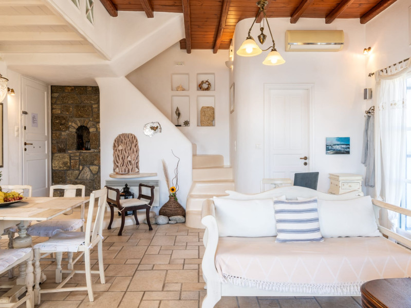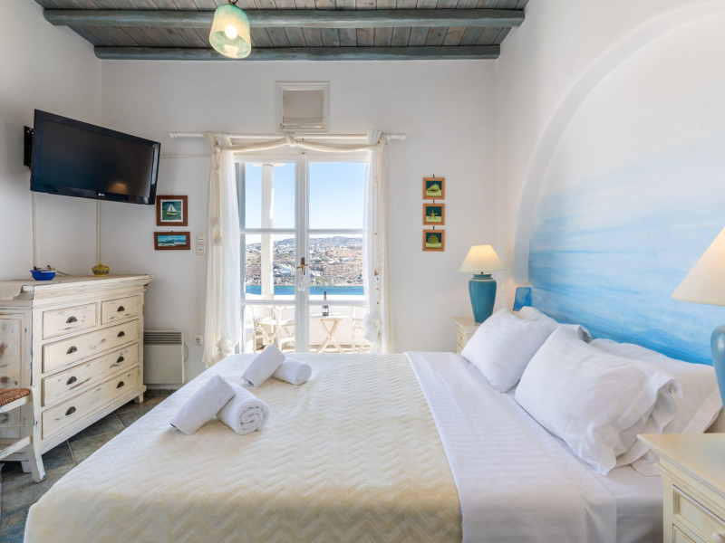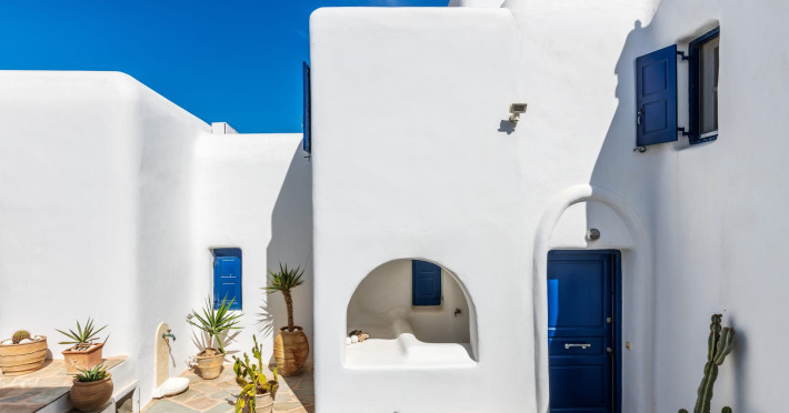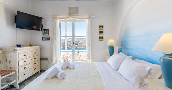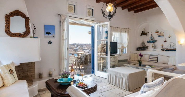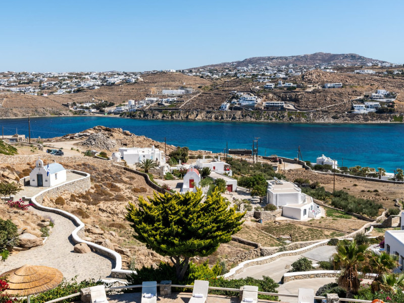 Yalos Mykonos private apartements is a complex of traditional Myconian furnished apartements including sea views and a shared swiming pool Located on Pouli hill next to the famous beach of Ornos
