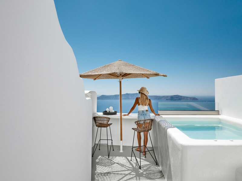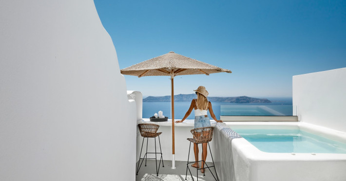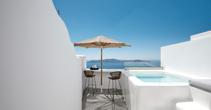 The perfect shelter for memorable vacations in Santorini. With direct, amazing views to the sunset and the caldera, our suites are exquisitely located in the scenic village of Firostefani.Heated Private plunge pools & jacuzzi and huge outdoor areas with modern furniture allow you to enjoy the setting and get carried away by the energy of the island.