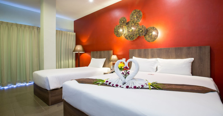 Located a short walk from Patong Beach and Jungceylon Shopping Center, YouDee Hotel Patong (formerly Meir Jarr Hotel) offers air-conditioned rooms with complimentary Wi-Fi. Rooms feature a flat-screen cable TV, refrigerator, safe, desk, electric kettle, and a private bathroom with shower, complimentary toiletries, and a hairdryer. Guests can enjoy a rooftop swimming pool with sun loungers and views of the Andaman Sea, as well as a poolside bar. The hotel also features a restaurant serving international and Thai cuisine, a bar/lounge, and offers room service during limited hours. Additional amenities include a 24-hour front desk, concierge services, a computer station, dry cleaning/laundry services, luggage storage, and tour desk. A beach shuttle is available. Buffet breakfasts are available daily for a fee. Airport shuttle services can be arranged for an additional cost. Free self-parking is available onsite. The YouDee Hotel Patong is a Tourist hotel. The nightlife/restaurants are easily accessible by taxi or bus from the hotel.