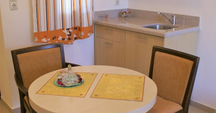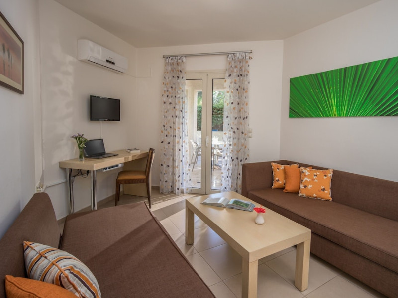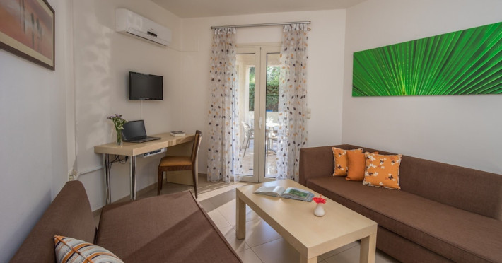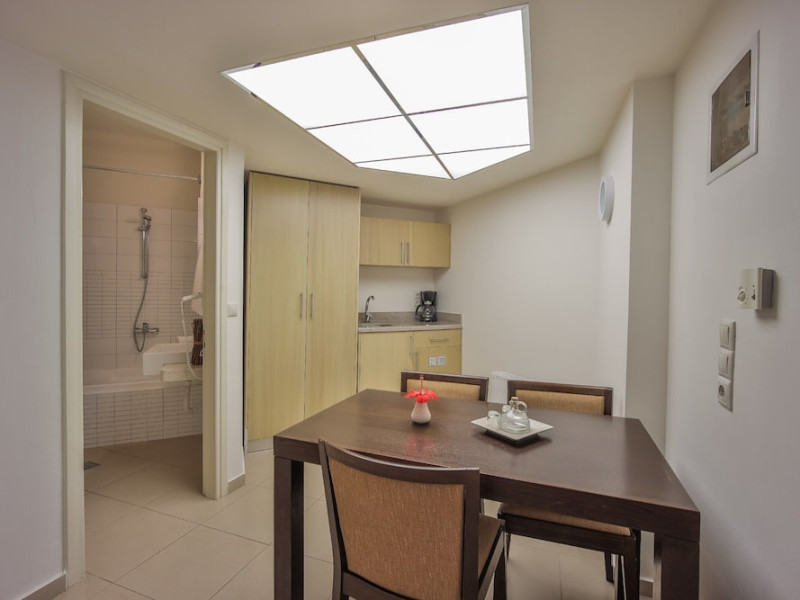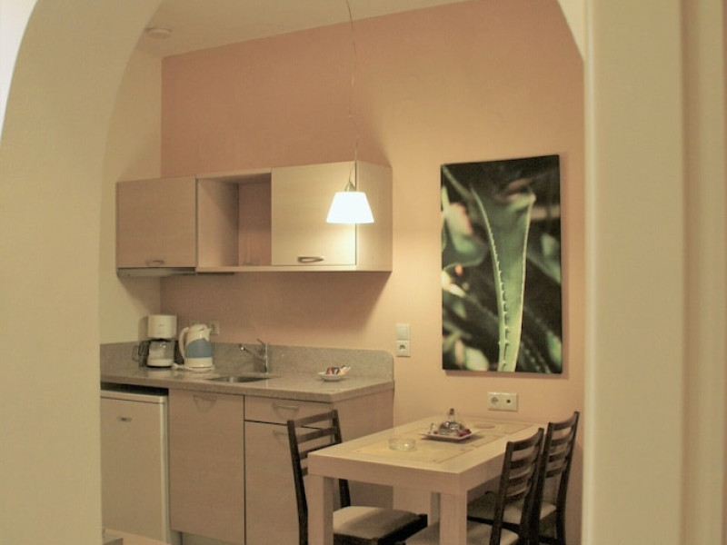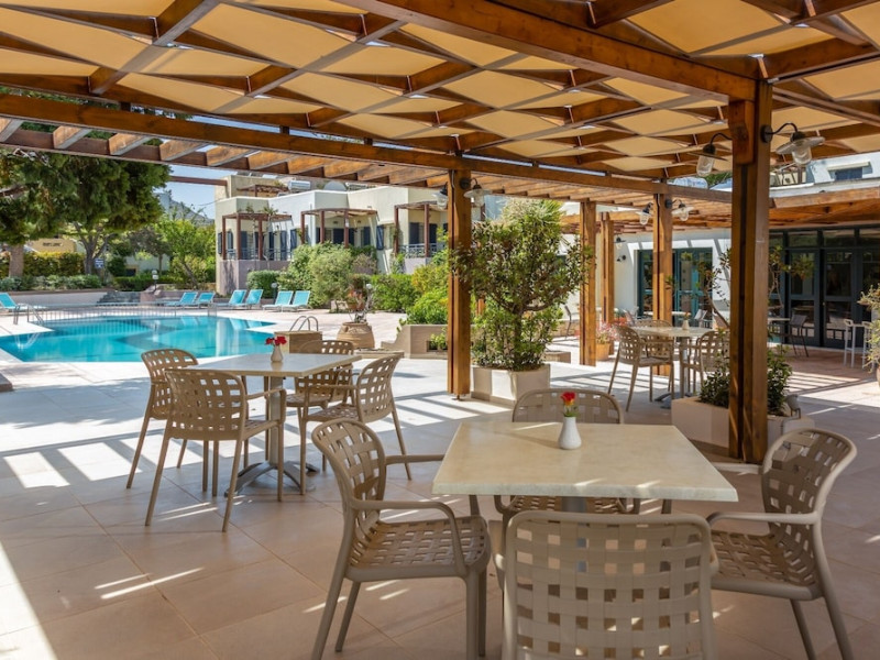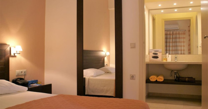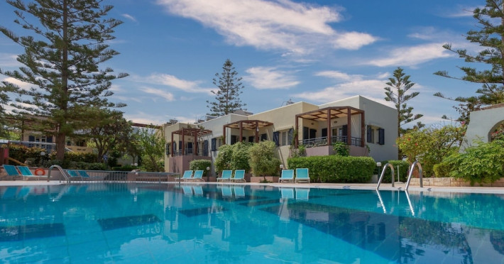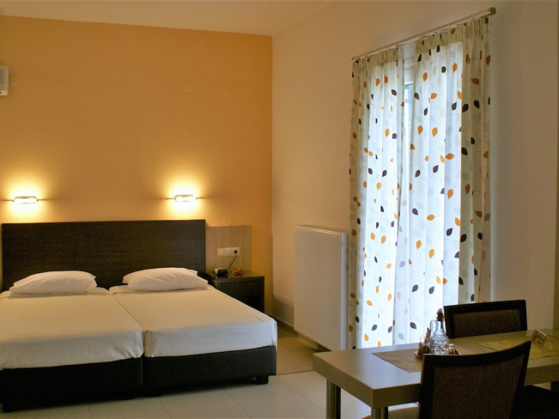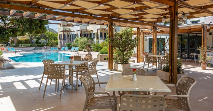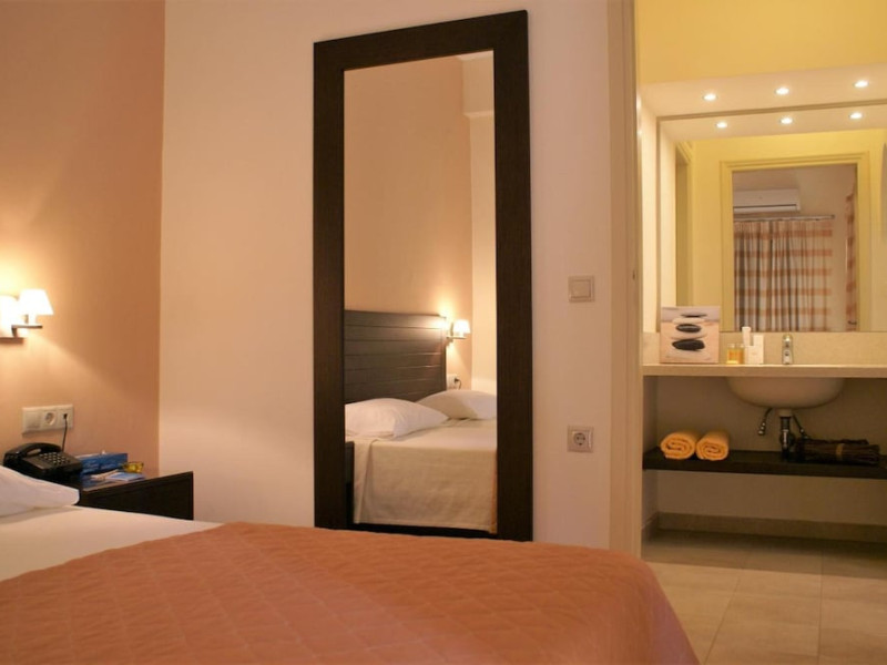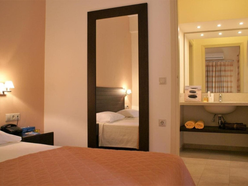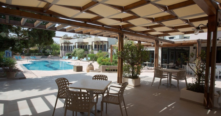 Hotel amenities include reception, TV room, internet corner, swimming pool, bar, restaurant and parking. All studios and apartments are equipped with A/C , safe, kitchenette with mini fridge, kettle and coffee maker, telephone, TV, WIFI and balcony or terrace.Address: Kato Gouves Pediados, 70014 Heraklion, Crete, Greece