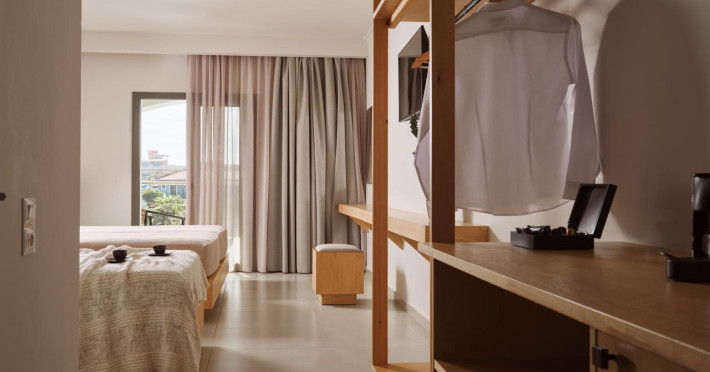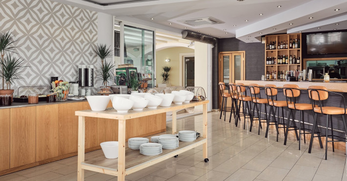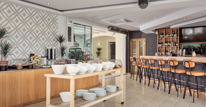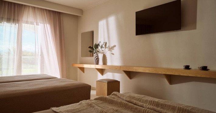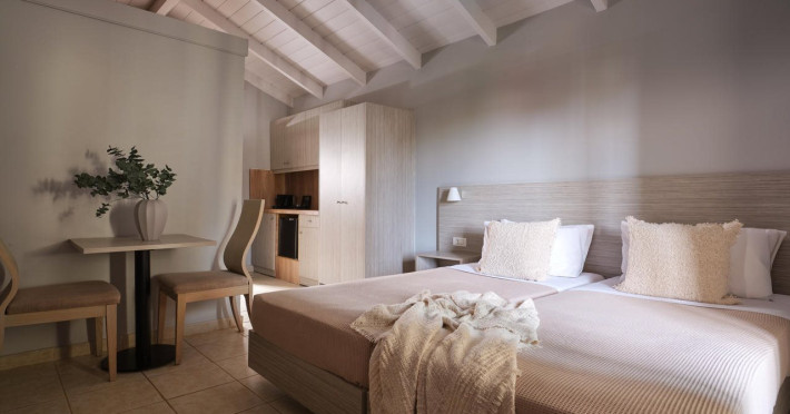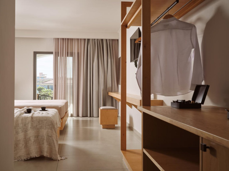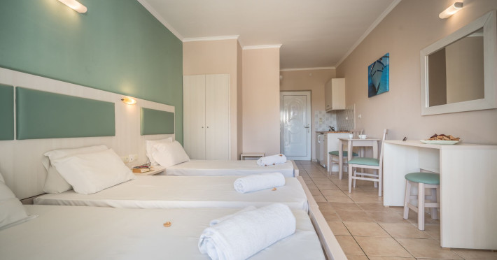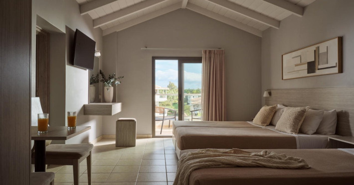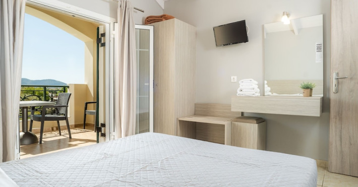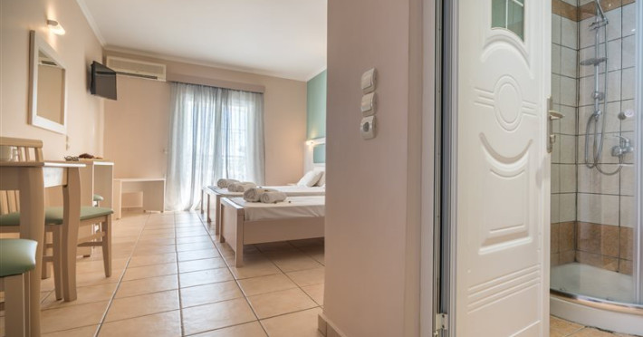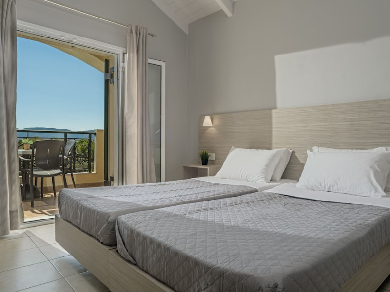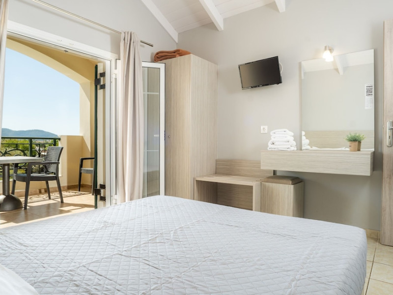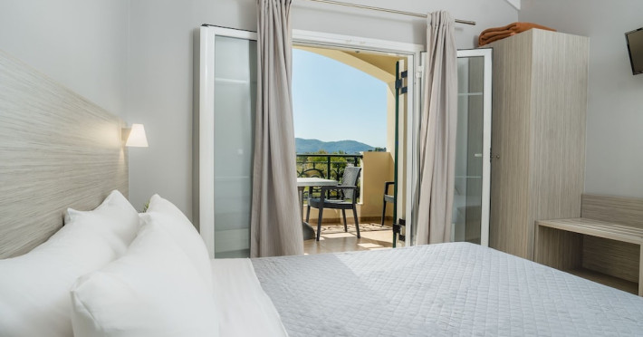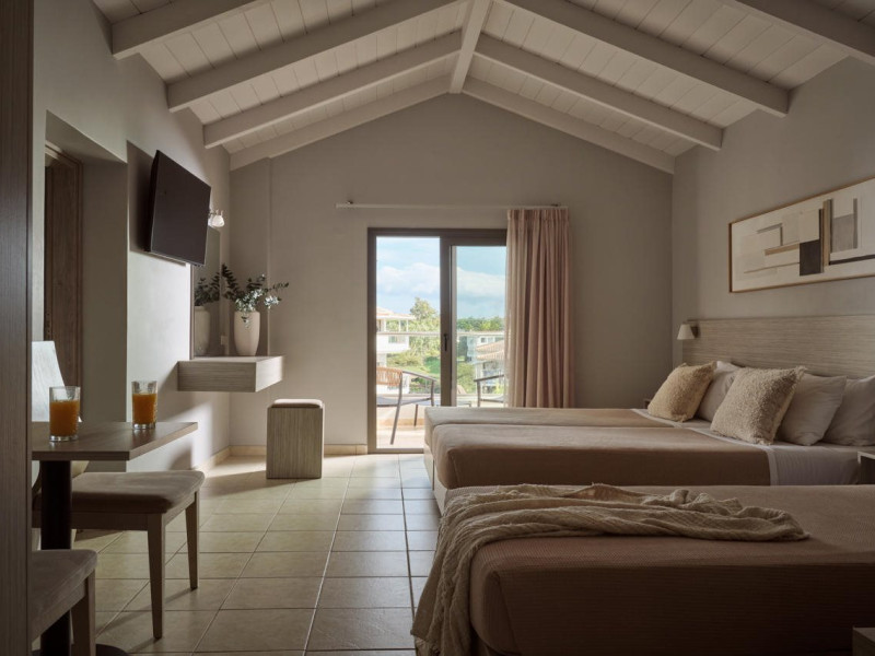 Hotel facilities and services include air conditioning, wireless internet access, car parking, restaurant, bar, swimming pool, elevator and room service (limited hours). Room facilities such as air conditioning, wireless internet access, cable/satellite TV, safe, fridge, coffee/tea maker, telephone and a bathroom with hairdryer. Address: Laganas, Zakynthos, 29092, Greece.