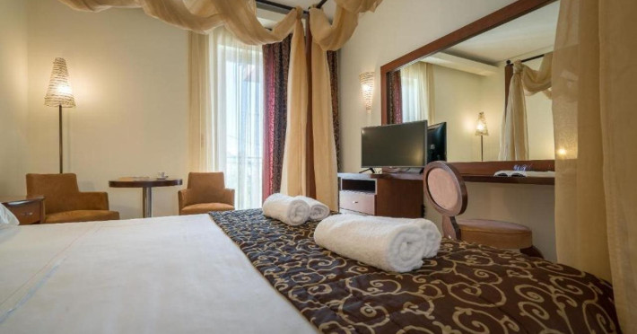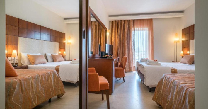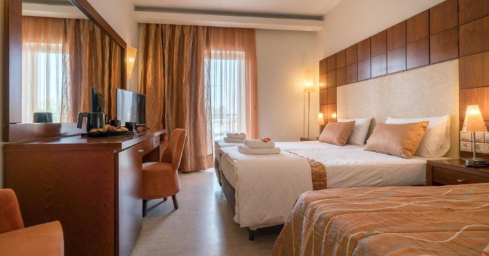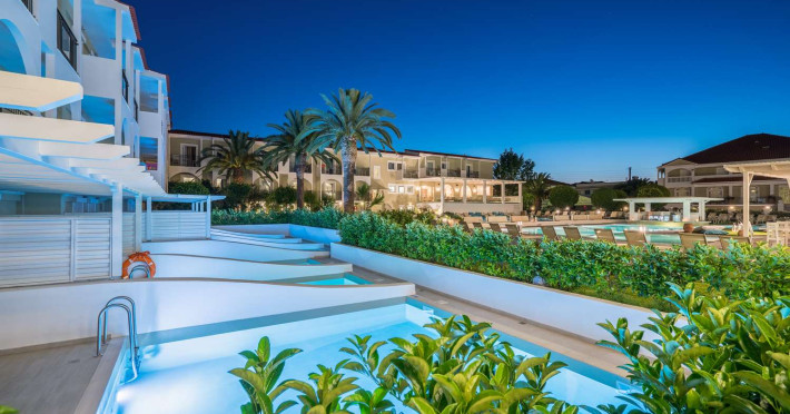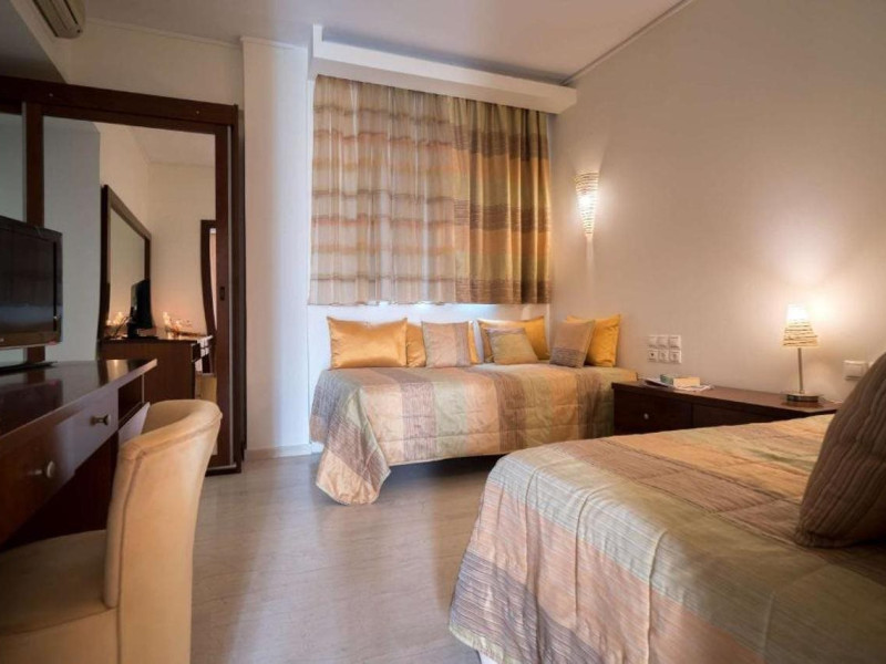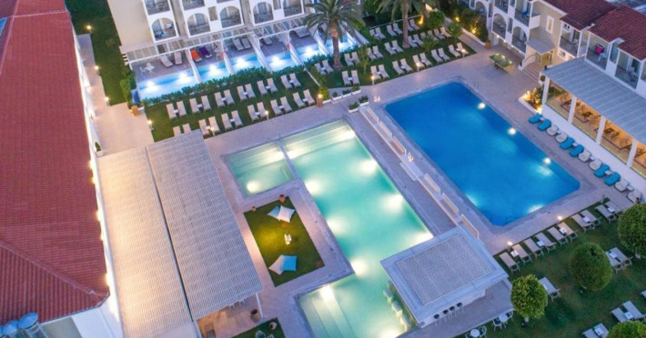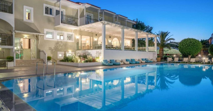 Facilities and services include pool, Wi-Fi, restaurant, spa, gym (extra charge), bar, sauna, restaurant, currency exchange, concierge, babysitting (extra charge), ironing service (extra charge), dry cleaning (extra charge), laundry service (extra charge), meeting facilities (extra charge), safe, elevator, air-conditioning, Rooms feature air conditioning, bath/shower combo, cable/satellite TV, coffee/tea making facilities, fridge, hairdryer, non-smoking rooms, telephone, television and wi-fi free.Address: Laganas, 29100 Zakynthos, Greece