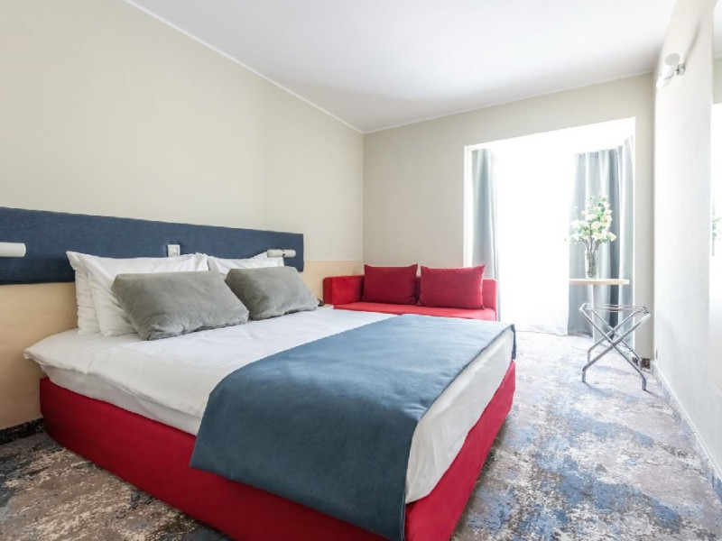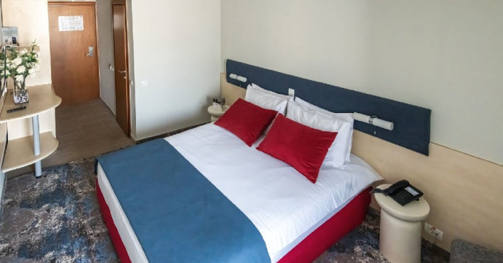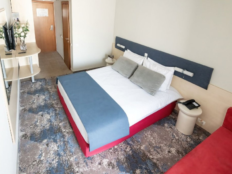 Camerele duble Jupiter/Junona - au suprafata totala de 21 mp (incluzand balcon si baie), au vedere spre statiune/parcare. Finisajele camerelor au fost refacute in 2025-2026 (mobilier, mocheta, draperii, renovare baie). Sunt dotate cu: balcon cu 2 scaune, pat matrimonial sau 2 paturi twin, bai cu cabina de dus si uscator de par, mocheta, mocheta pe hol si in baie, televizor, internet wireless, seif, 2 fotolii, masuta, minibar, aer conditionat, telefon, acces pe baza de card magnetic. Camerele duble Junior Jupiter/Junona - au in dotare in plus fata de cele standard, o canapea fixa, permitand cazarea a doi adulti si doi copii 0-6.99 ani. In acest tip de camere patul este matrimonial si nu au vedere la mare. Camerele au fost renovate intre 2019 si 2025. Sunt dotate cu baie cu cabina de dus, uscator de par si cosmetice hoteliere, papuci, mocheta, gresie in baie, balcon cu scaune si masa, televizor , internet wireless, masuta, minibar, aer conditionat, telefon, seif, acces pe baza de card magnetic. Camerele duble family Jupiter - cuprind un pat matrimonial si doua paturi suprapuse pentru copii, nu au vedere la mare si sunt pozitionate doar in corpul Jupiter. Paturile suprapuse sunt din lemn. Suprafata totala a camerei este de 21 mp, dintre care spatiu functional de 14 mp, hol de 3 mp, baie de 3 mp, balcon de 1 mp. Sunt dotate cu bai cu cabina de dus, uscator de par si cosmetice hoteliere, papuci, mocheta, gresie pe hol si in baie, balcon cu 2 scaune, televizor , internet wireless, seif, 2 fotolii, masuta, minibar, aer conditionat, telefon, acces pe baza de card magnetic. Camerele duble Jupiter/Junona cu vedere partiala la mare - au o suprafata totala de 21 mp (incluzand balcon si baie), au vedere partiala la mare. Dispun de balcon mare echipat cu doua scaune. Sunt dotate cu: pat matrimonial sau 2 paturi twin, bai cu cabina de dus, uscator de par si cosmetice hoteliere, papuci, mocheta, gresie pe hol si in baie, televizor , internet wireless, seif, 2 fotolii, masuta, minibar, aer conditionat, telefon, acces pe baza de card magnetic. Camerele duble Junior cu vedere partiala la mare Jupiter/Junona - au in dotare pat matrimonial, o canapea fixa, au vedere partiala la mare. Sunt dotate cu: bai cu cabina de dus, uscator de par si cosmetice hoteliere, papuci, mocheta, gresie pe hol si in baie, balcon cu 2 scaune, televizor , internet wireless, seif, masuta, minibar, aer conditionat, telefon, acces pe baza de card magnetic. Camerele duble cu vedere frontala la mare Junona au o suprafata totala de 21 mp (incluzand balcon si baie), au vedere la mare. Dispun de balcon mare echipat cu doua scaune. Sunt dotate cu: pat matrimonial sau 2 paturi twin, bai cu cabina de dus, uscator de par si cosmetice hoteliere, papuci, mocheta, gresie pe hol si in baie, televizor internet wireless, seif, 2 fotolii, masuta, minibar, aer conditionat, telefon, acces pe baza de card magnetic. Camerele duble Junior cu vedere frontala la mare Junona - au in dotare pat matrimonial, o canapea fixa, au vedere la mare. Sunt dotate cu bai cu cabina de dus, uscator de par si cosmetice hoteliere, papuci, mocheta, gresie pe hol si in baie, balcon cu 2 scaune, televizor , internet wireless, seif, 2 fotolii, masuta, minibar, aer conditionat, telefon, acces pe baza de card magnetic. Apartamentele superior cu vedere frontala la mare Junona - au o suprafata de 40 mp, distribuiti intr-un dormitor de 12 mp cu pat matrimonial, living de 11 mp cu canapea extensibila, o baie cu cada, o baie de serviciu, hol si balcon. Au TV atat in dormitor cat si in living. Se pot caza 3 adulti si un copil maxim 12 ani, sau doi adulti cu doi copii de 0-17.99 ani, ori 4 adulti. Sunt situate in corpul Junona, la etajul 4, oferind o panorama deosebita a imprejurimilor. Oaspetii care achizitioneaza acest tip de camera beneficiaza de gratuitate la salina si sauna in centrul SPA.