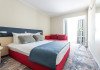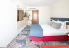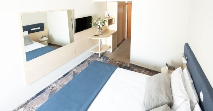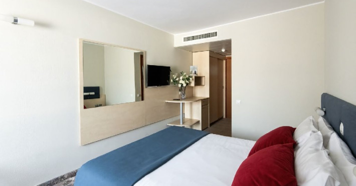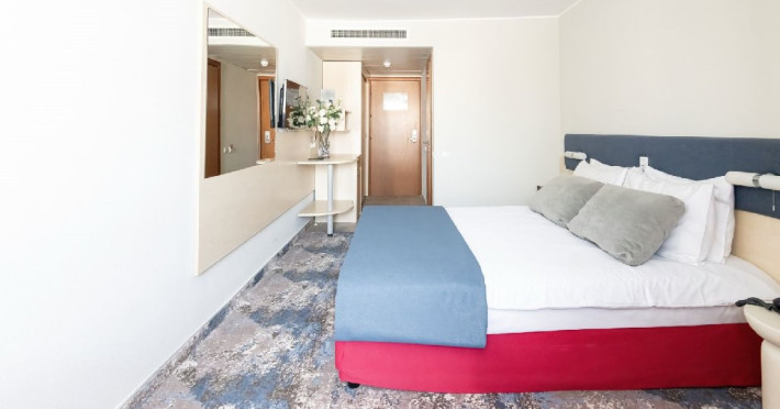 Camerele duble Jupiter/Junona - au suprafata totala de 21 mp (incluzand balcon si baie), au vedere spre statiune/parcare. Finisajele camerelor au fost refacute in 2025-2026 (mobilier, mocheta, draperii, renovare baie). Sunt dotate cu: balcon cu 2 scaune, pat matrimonial sau 2 paturi twin, bai cu cabina de dus si uscator de par, mocheta, mocheta pe hol, televizor , internet wireless, seif, 2 fotolii, masuta, minibar, aer conditionat, telefon, acces pe baza de card magnetic. Camerele duble Junior Jupiter/Junona - au in dotare in plus fata de cele standard, o canapea fixa, permitand cazarea a doi adulti si doi copii 0-6.99 ani. In acest tip de camere patul este matrimonial si nu au vedere la mare. Camerele au fost renovate intre 2019 si 2025. Sunt dotate cu baie cu cabina de dus, uscator de par si cosmetice hoteliere, papuci, mocheta, gresie in baie, balcon cu scaune si masa, televizor , internet wireless, masuta, minibar, aer conditionat, telefon, seif, acces pe baza de card magnetic. Camerele duble family Jupiter - cuprind un pat matrimonial si doua paturi suprapuse pentru copii, nu au vedere la mare si sunt pozitionate doar in corpul Jupiter. Paturile suprapuse sunt din lemn. Suprafata totala a camerei este de 21 mp, dintre care spatiu functional de 14 mp, hol de 3 mp, baie de 3 mp, balcon de 1 mp. Sunt dotate cu bai cu cabina de dus, uscator de par si cosmetice hoteliere, papuci, mocheta, gresie pe hol si in baie, balcon cu 2 scaune, televizor, internet wireless, seif, 2 fotolii, masuta, minibar, aer conditionat, telefon, acces pe baza de card magnetic. Camerele duble Jupiter/Junona cu vedere partiala la mare - au o suprafata totala de 21 mp (incluzand balcon si baie), au vedere partiala la mare. Dispun de balcon mare echipat cu doua scaune. Sunt dotate cu: pat matrimonial sau 2 paturi twin, bai cu cabina de dus, uscator de par si cosmetice hoteliere, papuci, mocheta, gresie pe hol si in baie, televizor , internet wireless, seif, 2 fotolii, masuta, minibar, aer conditionat, telefon, acces pe baza de card magnetic. Camerele duble Junior cu vedere partiala la mare Jupiter/Junona - au in dotare pat matrimonial, o canapea fixa, au vedere partiala la mare. Sunt dotate cu: bai cu cabina de dus, uscator de par si cosmetice hoteliere, papuci, mocheta, gresie pe hol si in baie, balcon cu 2 scaune, televizor , internet wireless, seif, masuta, minibar, aer conditionat, telefon, acces pe baza de card magnetic. Camerele duble cu vedere frontala la mare Junona au o suprafata totala de 21 mp (incluzand balcon si baie), au vedere la mare. Dispun de balcon mare echipat cu doua scaune. Sunt dotate cu: pat matrimonial sau 2 paturi twin, bai cu cabina de dus, uscator de par si cosmetice hoteliere, papuci, mocheta, gresie pe hol si in baie, televizor , internet wireless, seif, 2 fotolii, masuta, minibar, aer conditionat, telefon, acces pe baza de card magnetic. Camerele duble Junior cu vedere frontala la mare Junona - au in dotare pat matrimonial, o canapea fixa, au vedere la mare. Sunt dotate cu bai cu cabina de dus, uscator de par si cosmetice hoteliere, papuci, mocheta, gresie pe hol si in baie, balcon cu 2 scaune, televizor, internet wireless, seif, 2 fotolii, masuta, minibar, aer conditionat, telefon, acces pe baza de card magnetic. Apartamentele superior cu vedere frontala la mare Junona - au o suprafata de 40 mp, distribuiti intr-un dormitor de 12 mp cu pat matrimonial, living de 11 mp cu canapea extensibila, o baie cu cada, o baie de serviciu, hol si balcon. Au TV atat in dormitor cat si in living. Se pot caza 3 adulti si un copil maxim 12 ani, sau doi adulti cu doi copii de 0-17.99 ani, ori 4 adulti. Sunt situate in corpul Junona, la etajul 4, oferind o panorama deosebita a imprejurimilor. Oaspetii care achizitioneaza acest tip de camera beneficiaza de gratuitate la salina si sauna in centrul SPA.