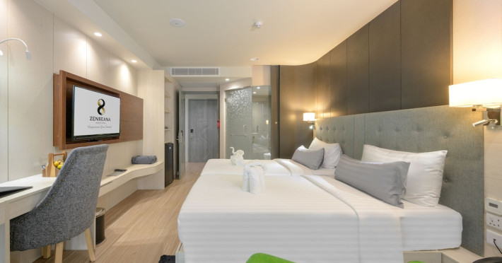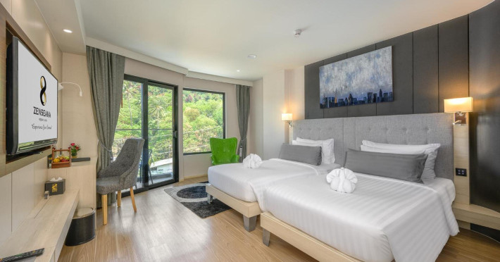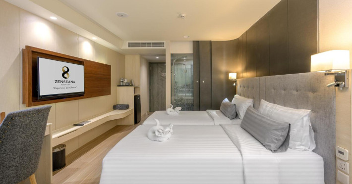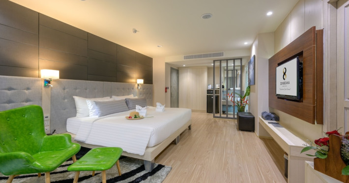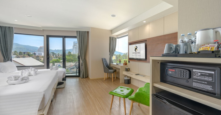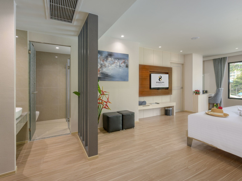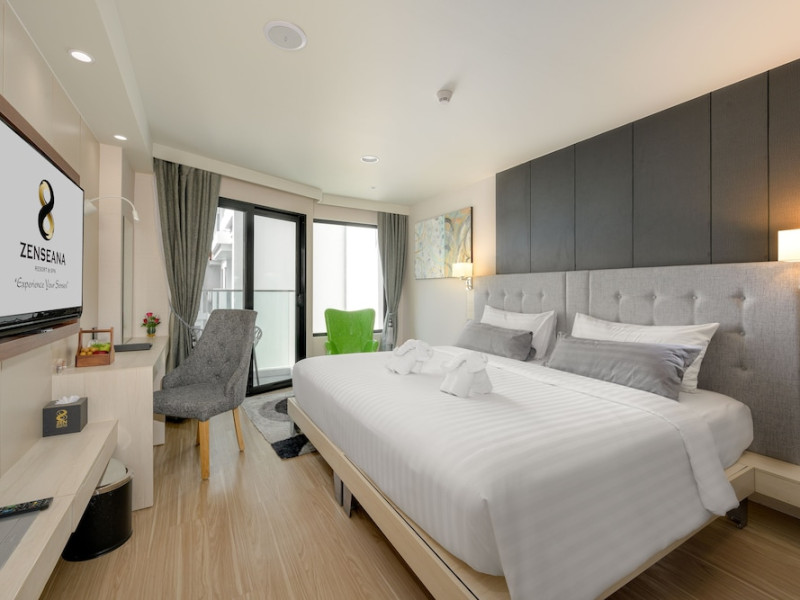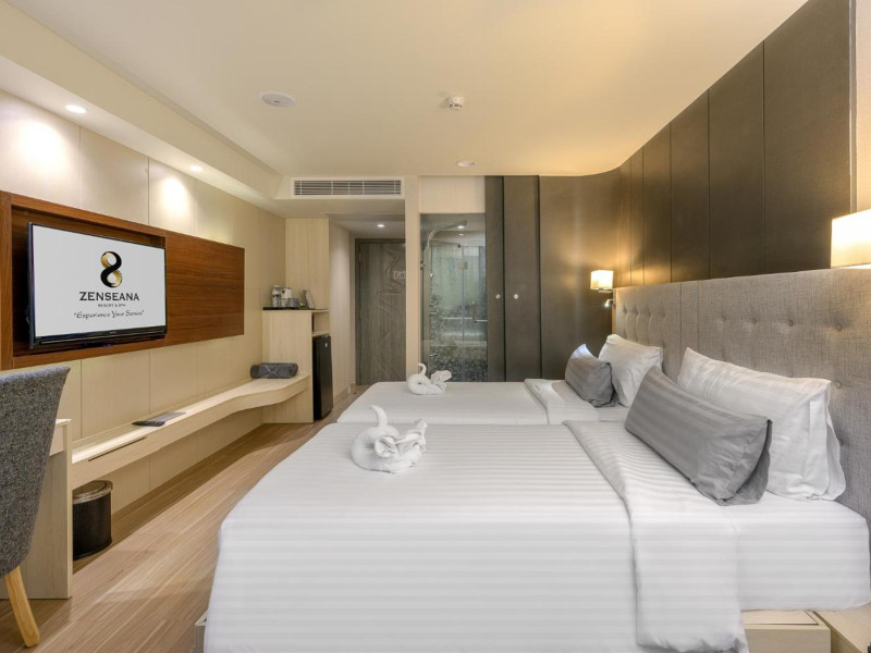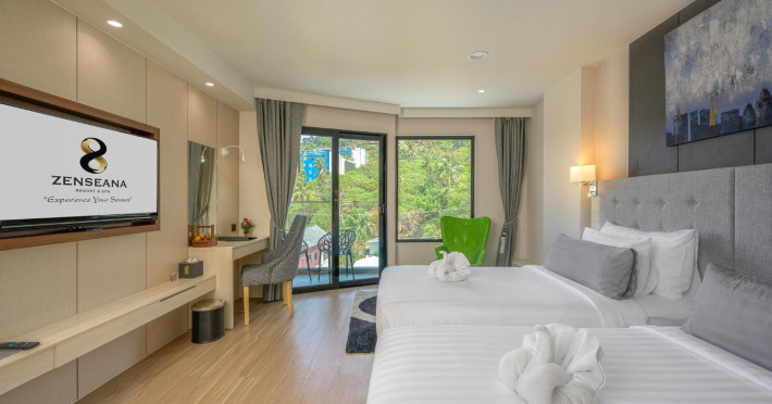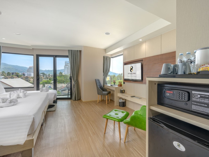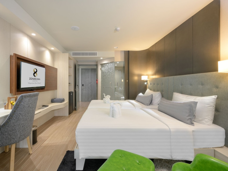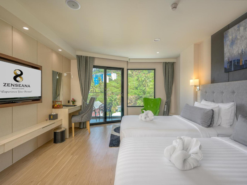 ZENSEANA Resort & Spa, located in Patong Beach near Nurul Islam Mosque and Patong Beach, offers accommodation with authentic Thai hospitality. It is within walking distance of Patong Beach and a short drive from Bangla Road and Jungceylon Shopping Center. Phuket International Airport is easily accessible. The hotel features air-conditioned rooms with free WiFi, flat-screen TVs, refrigerators, minibars, and private bathrooms with complimentary toiletries and bidets. Guests can enjoy amenities including an outdoor swimming pool with a jacuzzi and kids' pool, a fitness center, a kids' club, and a full-service spa. Dining options include a restaurant serving Asian and international cuisine, a café, a lobby lounge, a pool bar, and a rooftop sky bar. The hotel provides 24-hour room service, concierge services, a business center, and laundry services. Airport shuttle service is available for a surcharge, and free parking is provided. The hotel is currently undergoing renovations in the spa area from September 21, 2023, to December 31, 2025, with efforts to minimize disturbance. The Zenseana Resort & Spa is a hotel.