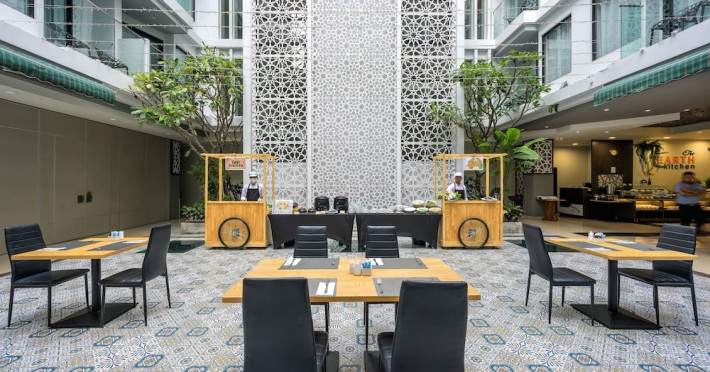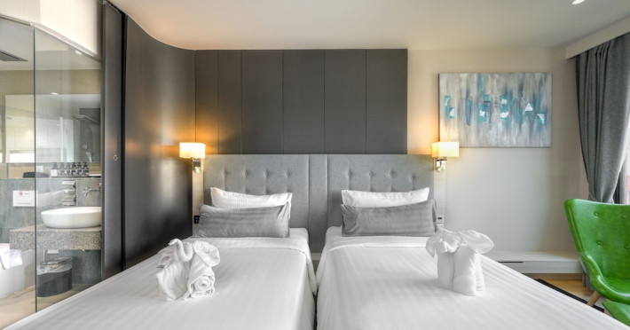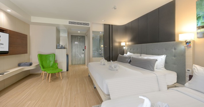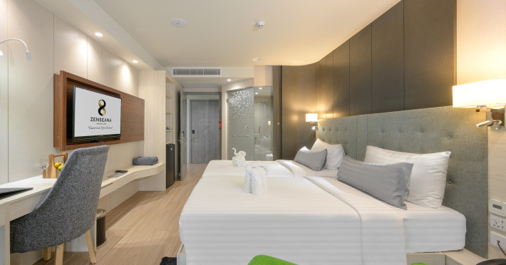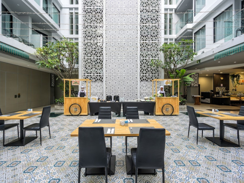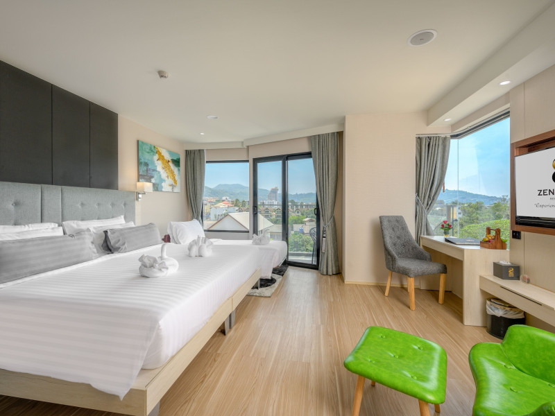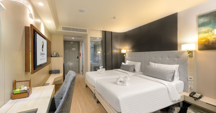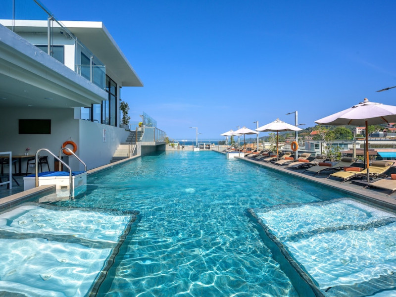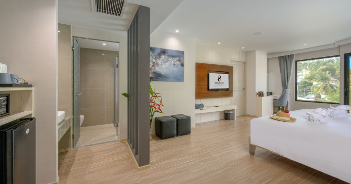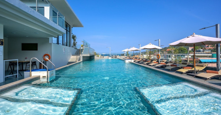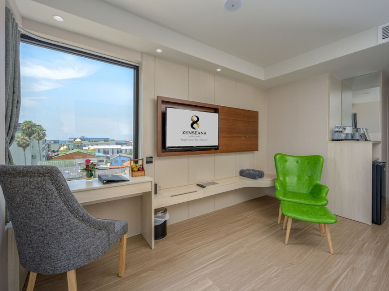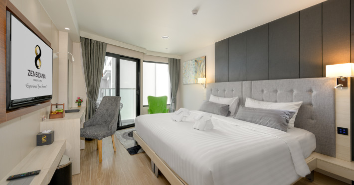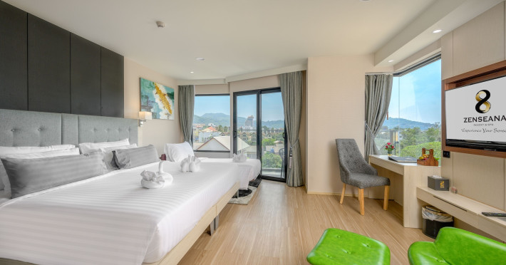 ZENSEANA Resort & Spa, located in Patong Beach near Nurul Islam Mosque and Patong Beach, offers accommodation with authentic Thai hospitality. It is within walking distance of Patong Beach and a short drive from Bangla Road and Jungceylon Shopping Center. Phuket International Airport is easily accessible. The hotel features air-conditioned rooms with free WiFi, flat-screen TVs, refrigerators, minibars, and private bathrooms with complimentary toiletries and bidets. Guests can enjoy amenities including an outdoor swimming pool with a jacuzzi and kids' pool, a fitness center, a kids' club, and a full-service spa. Dining options include a restaurant serving Asian and international cuisine, a café, a lobby lounge, a pool bar, and a rooftop sky bar. The hotel provides 24-hour room service, concierge services, a business center, and laundry services. Airport shuttle service is available for a surcharge, and free parking is provided. The hotel is currently undergoing renovations in the spa area from September 21, 2023, to December 31, 2025, with efforts to minimize disturbance. The Zenseana Resort & Spa is a hotel.