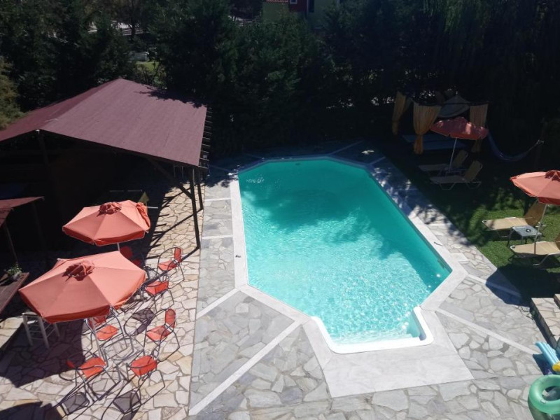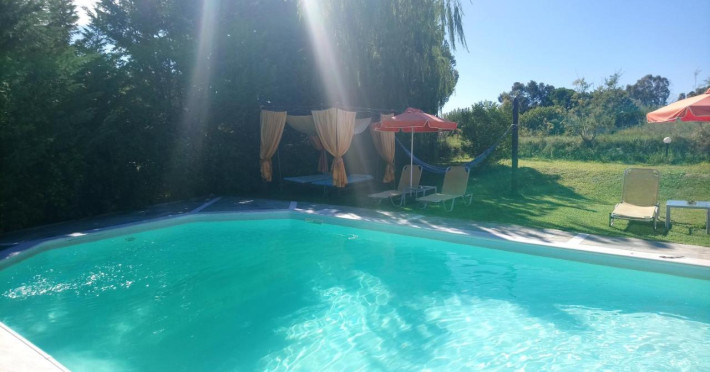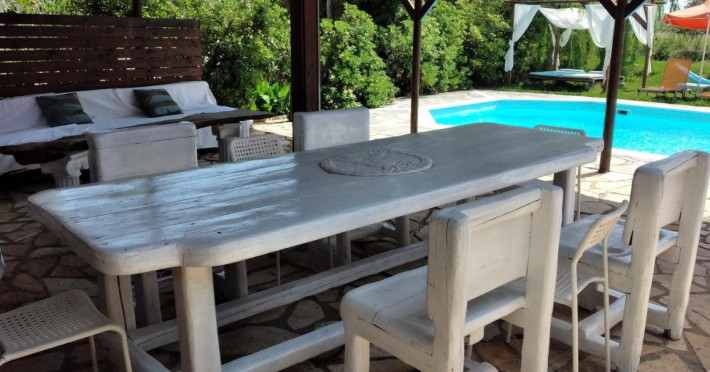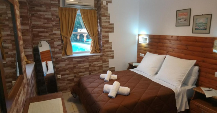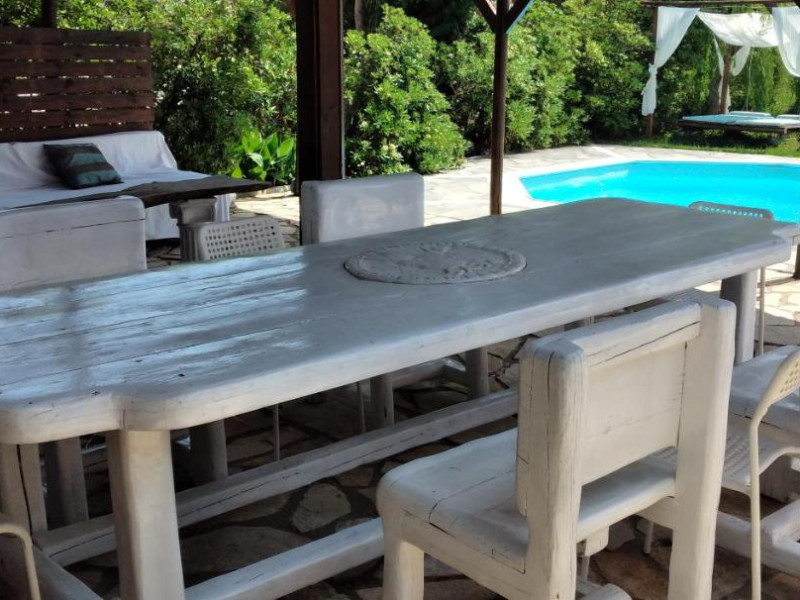Sun beds and umbrellas are dispensed around the pools for sunbathing and smoothly relaxing. A corner providing barbecuefacilities and a dining space is there for those willing to prepare authentic Greek dishes.